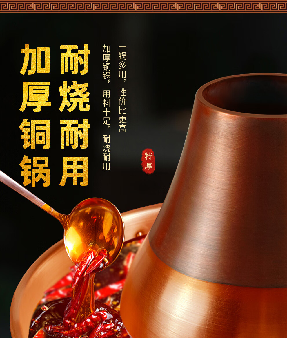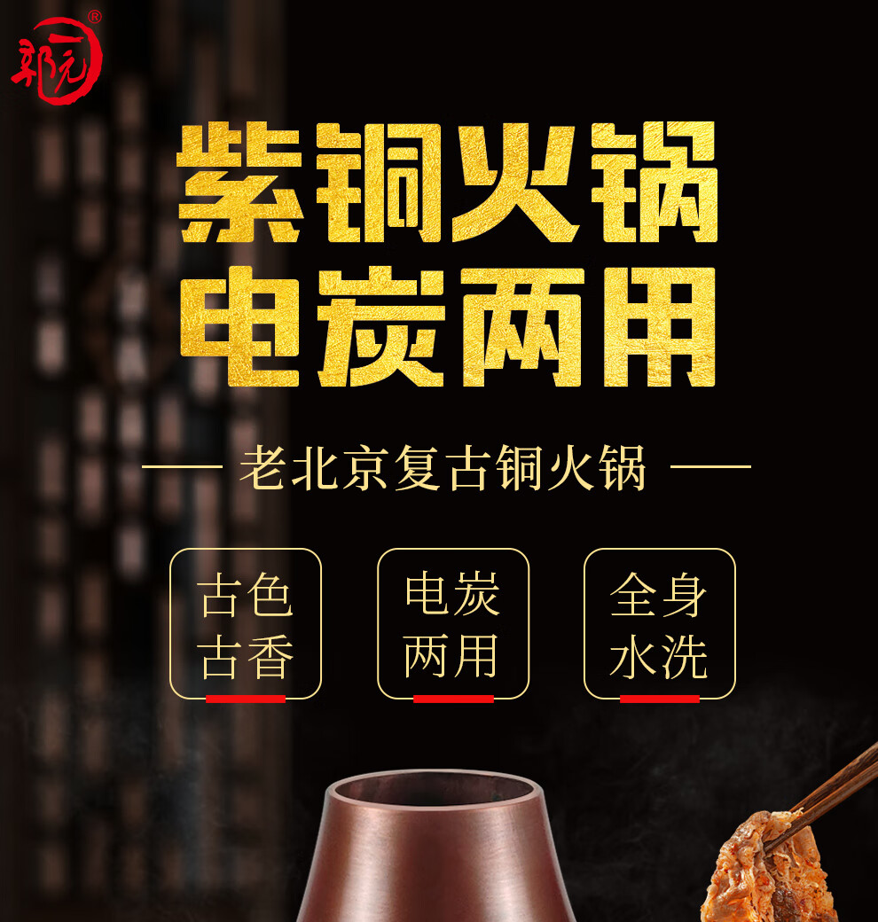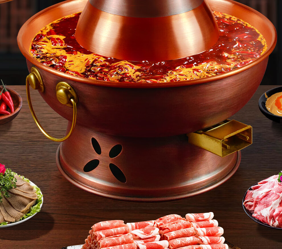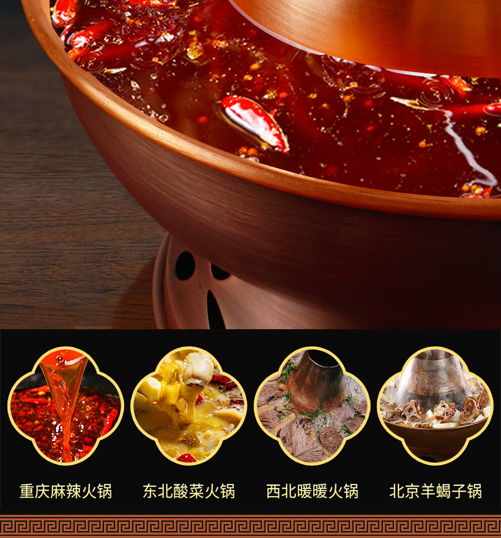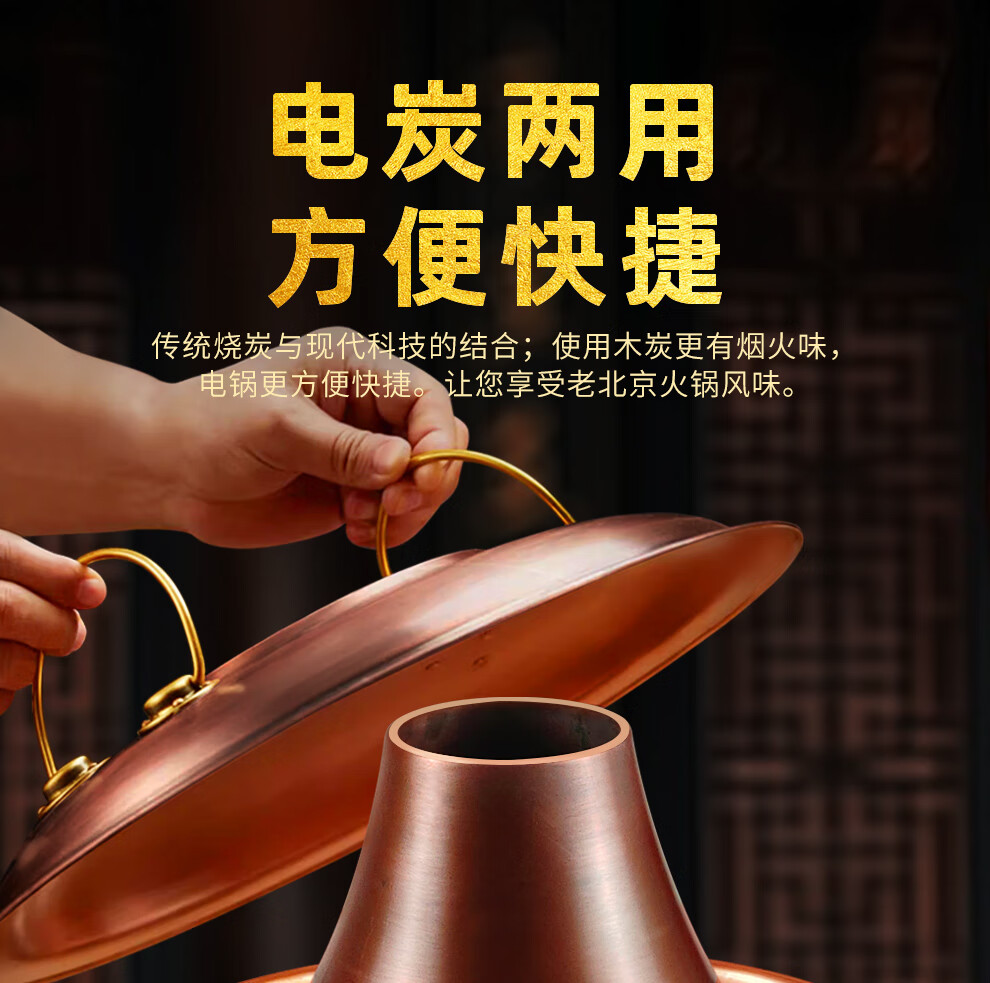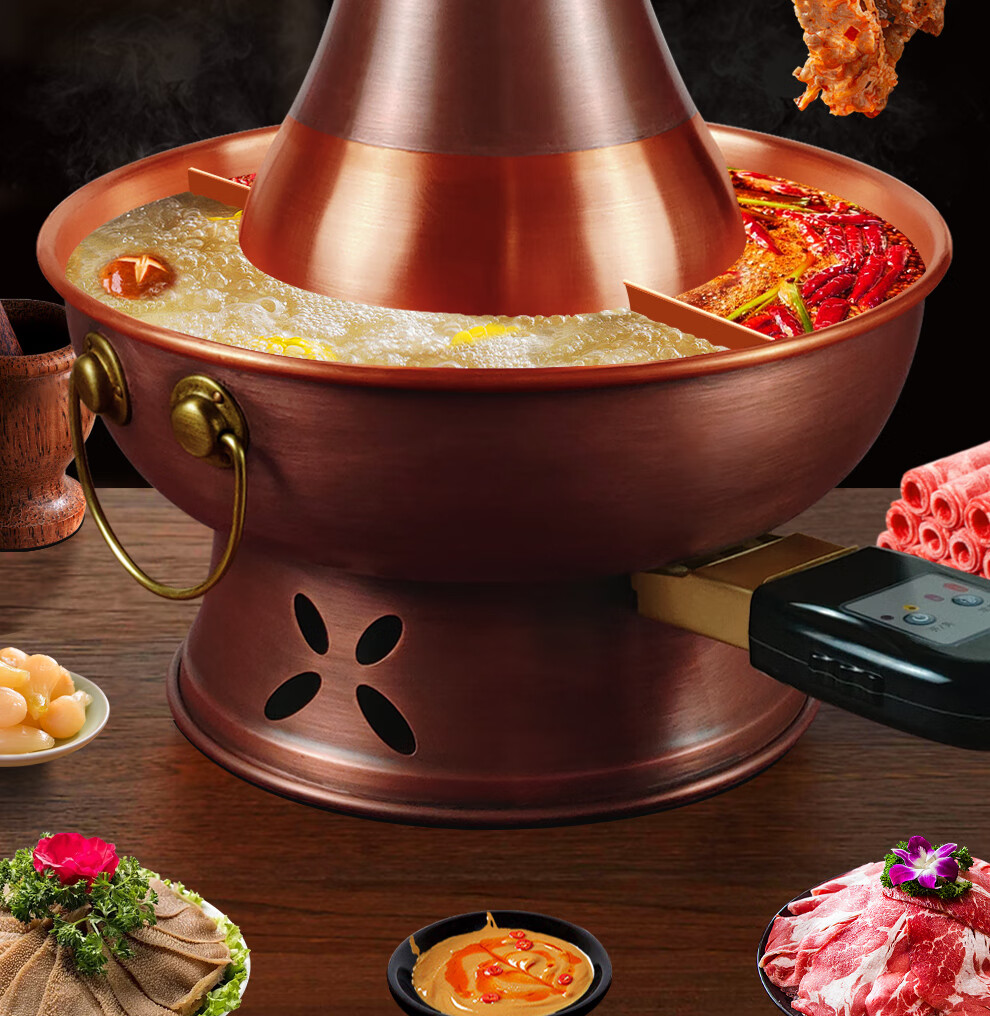 Guo Yiyuan copper hot pot pure copper electric charcoal dual-purpose plug-in wood charcoal copper hot pot thickened hot pot old Beijing mutton-shabu copper pot hot pot 34cm mandarin duck pot electric charcoal dual-use 6-8 people 34cm