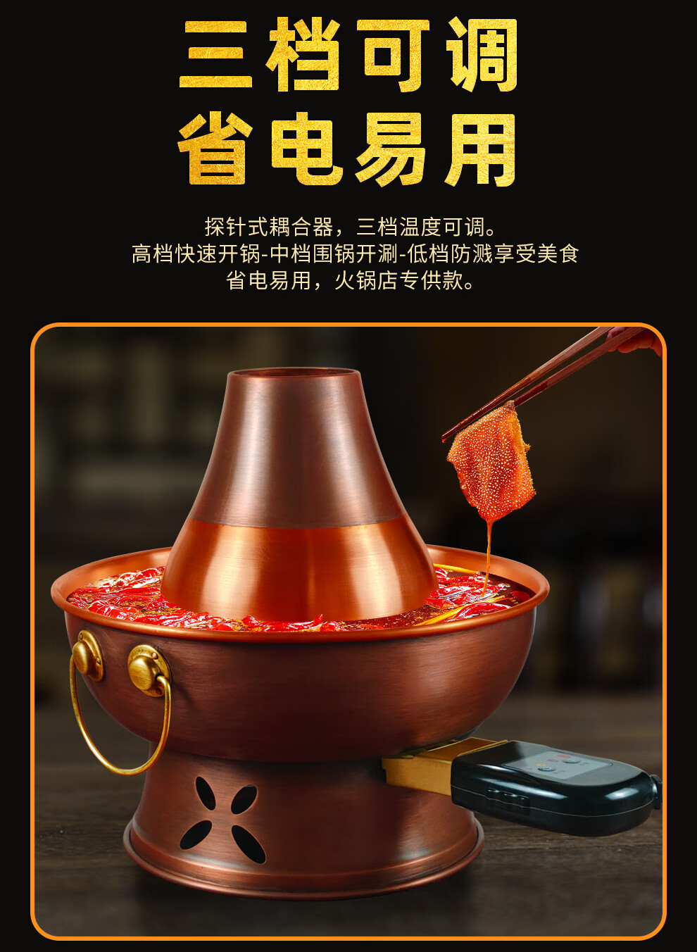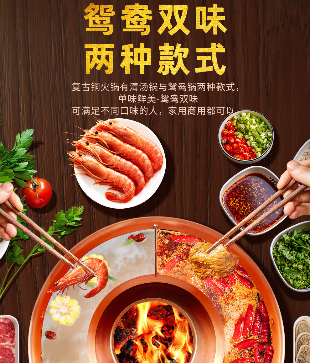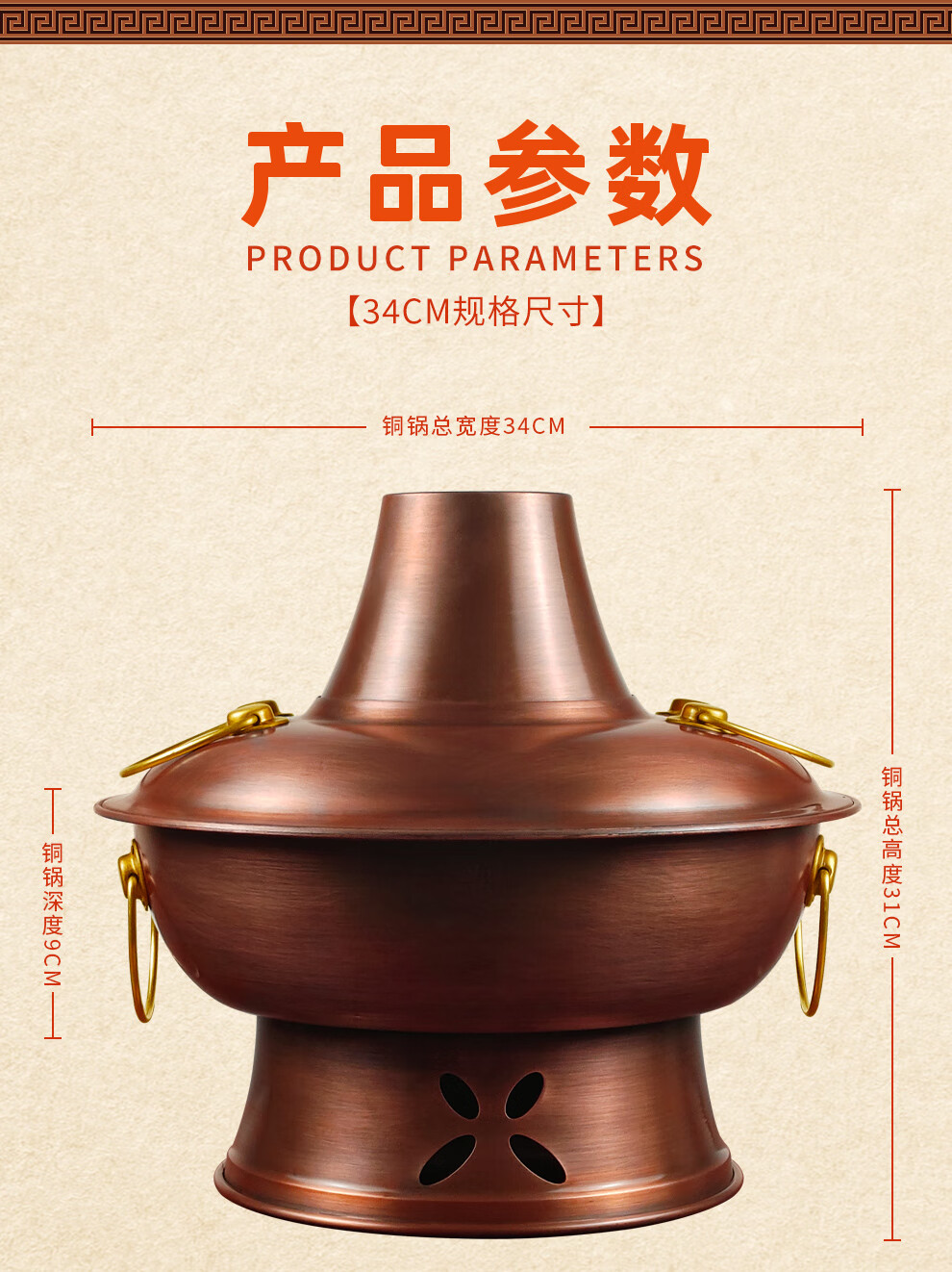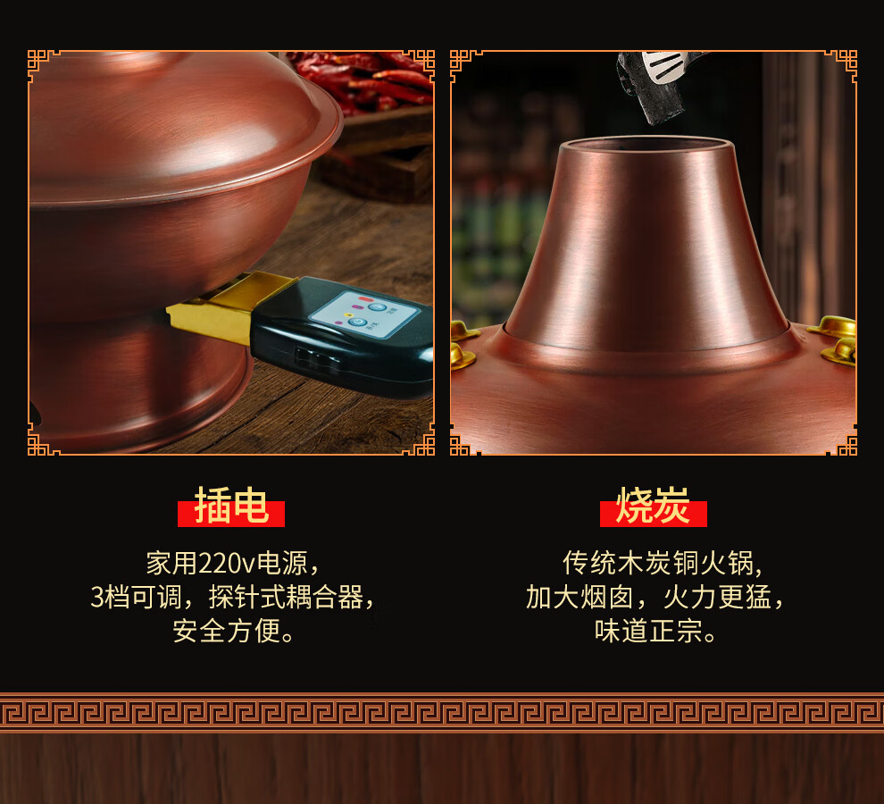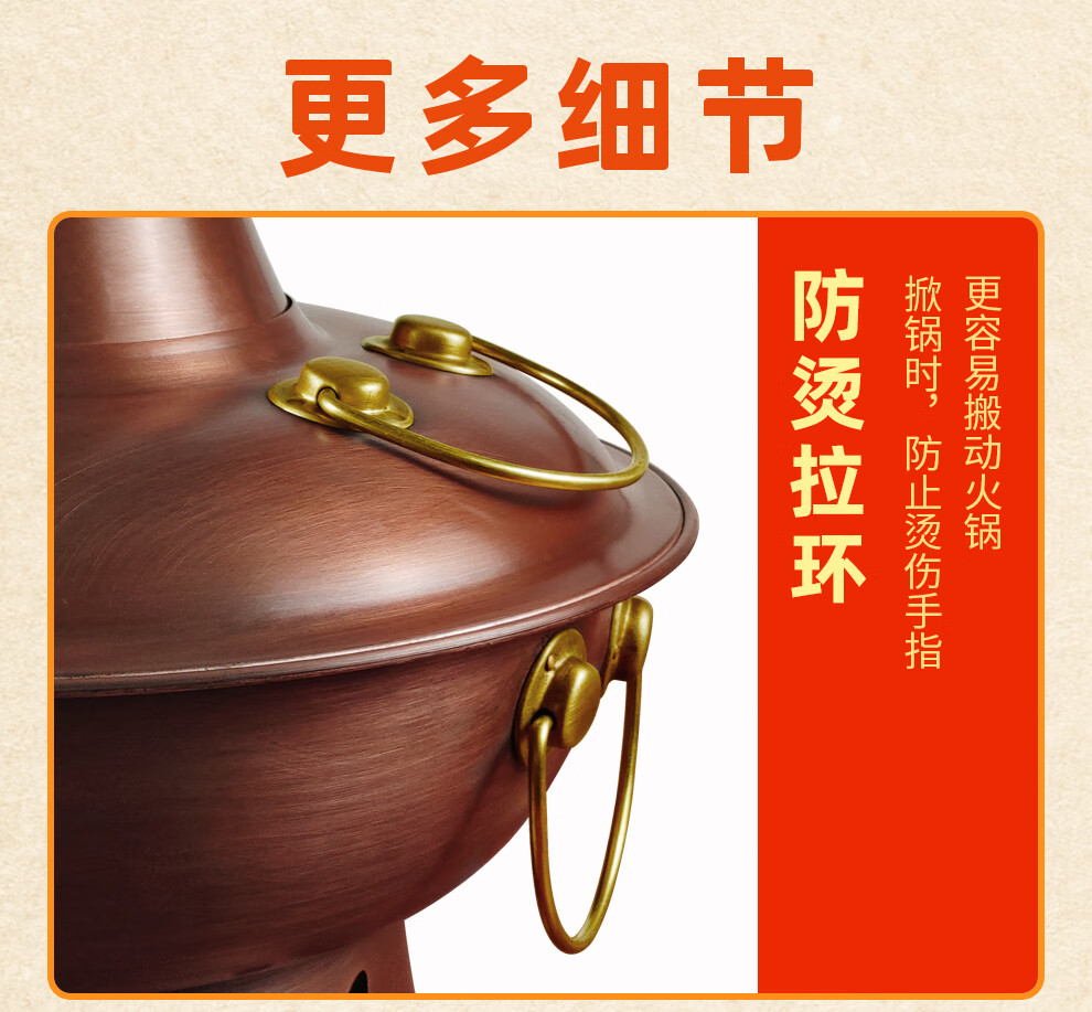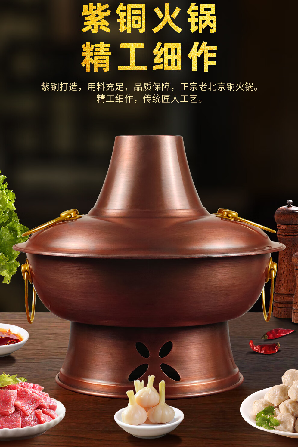 Guo Yiyuan copper hot pot pure copper electric charcoal dual-purpose plug-in wood charcoal copper hot pot thickened hot pot old Beijing mutton-shabu copper pot hot pot 34cm mandarin duck pot electric charcoal dual-use 6-8 people 34cm