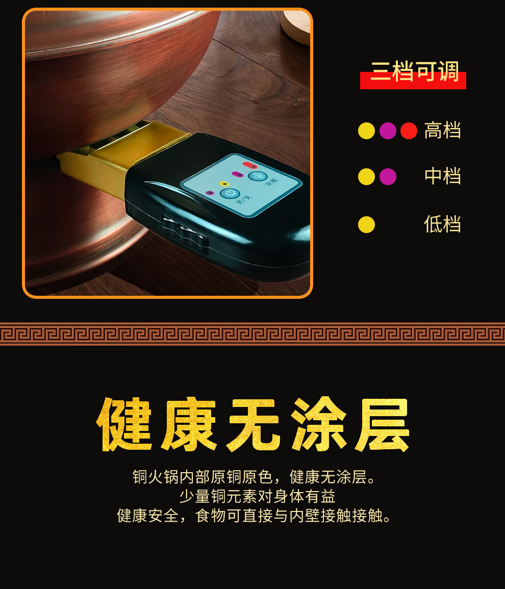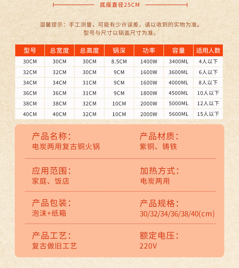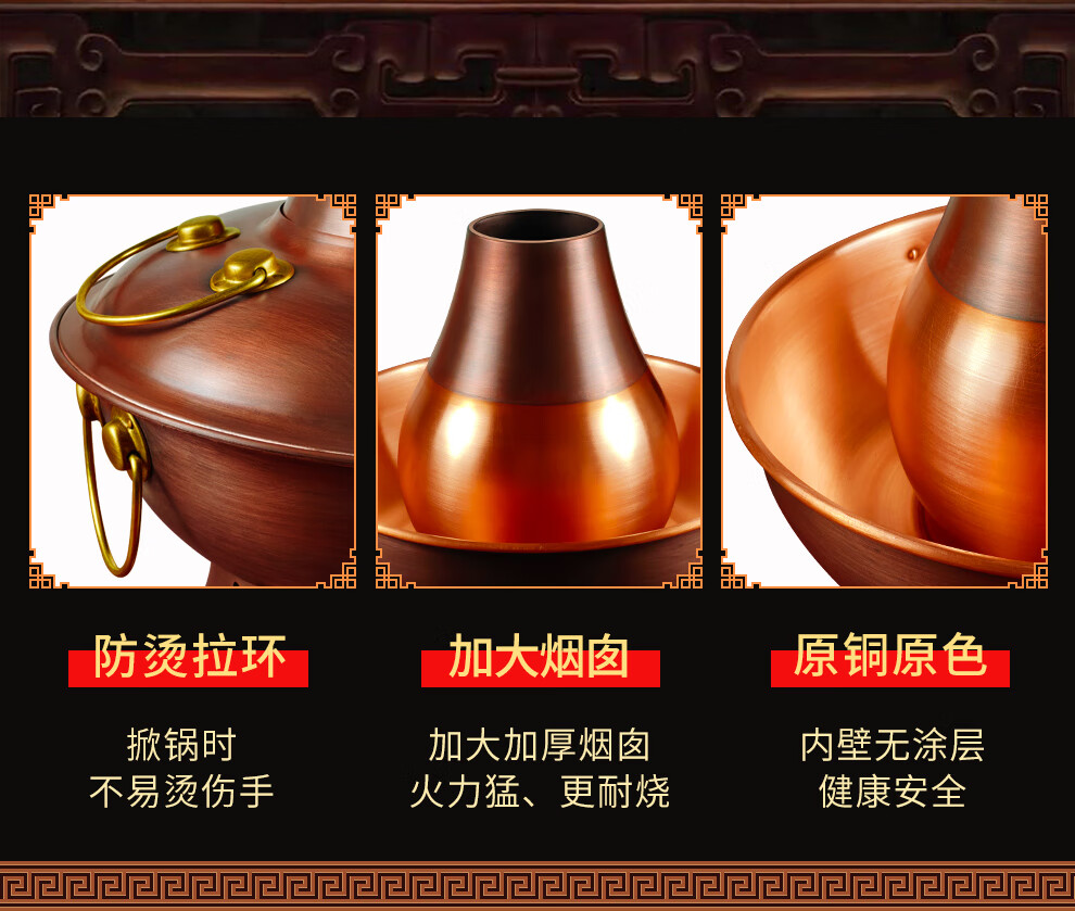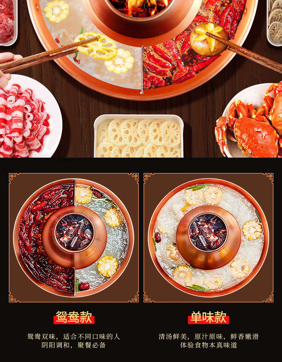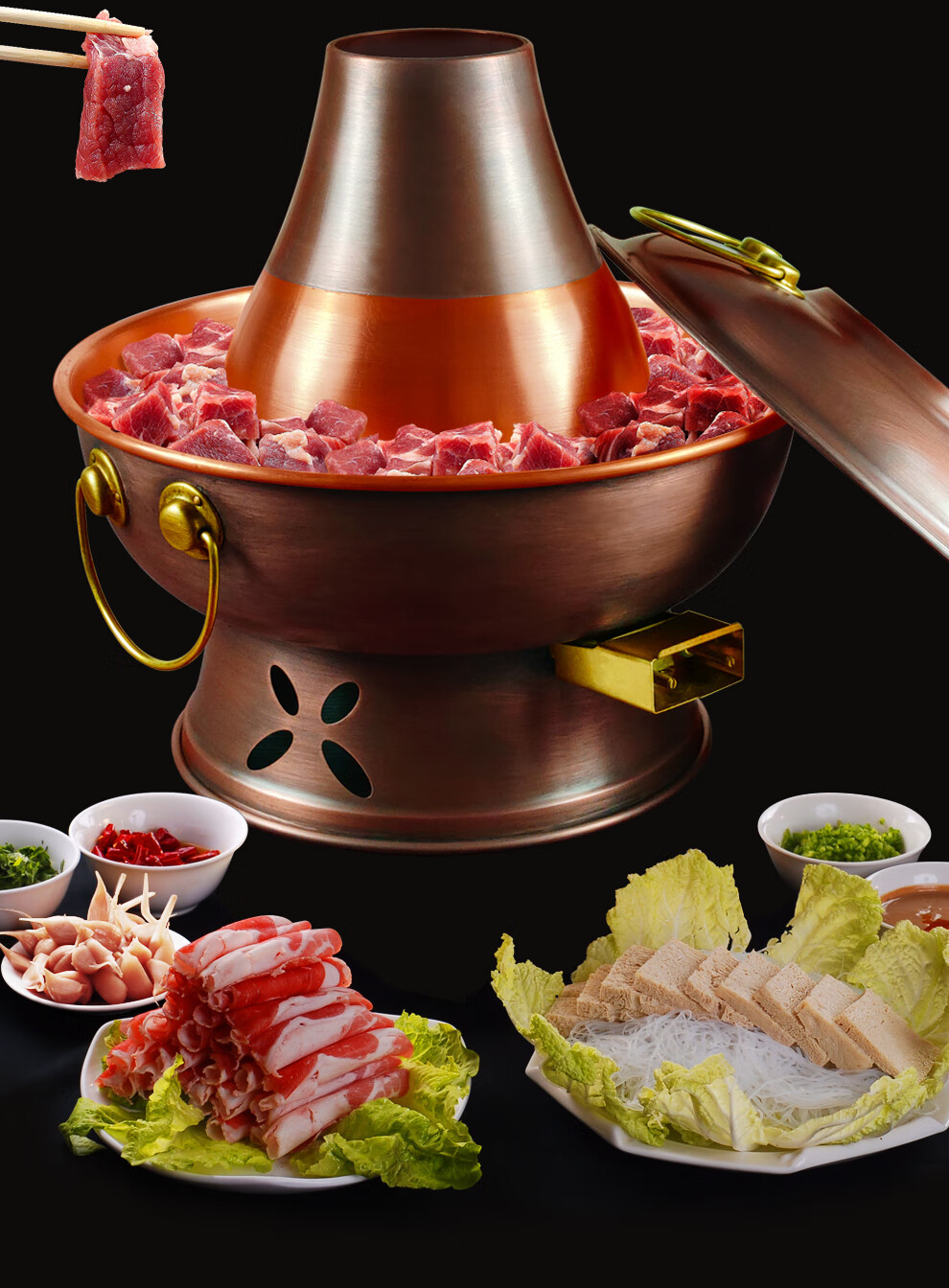 Guo Yiyuan copper hot pot pure copper electric charcoal dual-purpose plug-in wood charcoal copper hot pot thickened hot pot old Beijing mutton-shabu copper pot hot pot 34cm mandarin duck pot electric charcoal dual-use 6-8 people 34cm