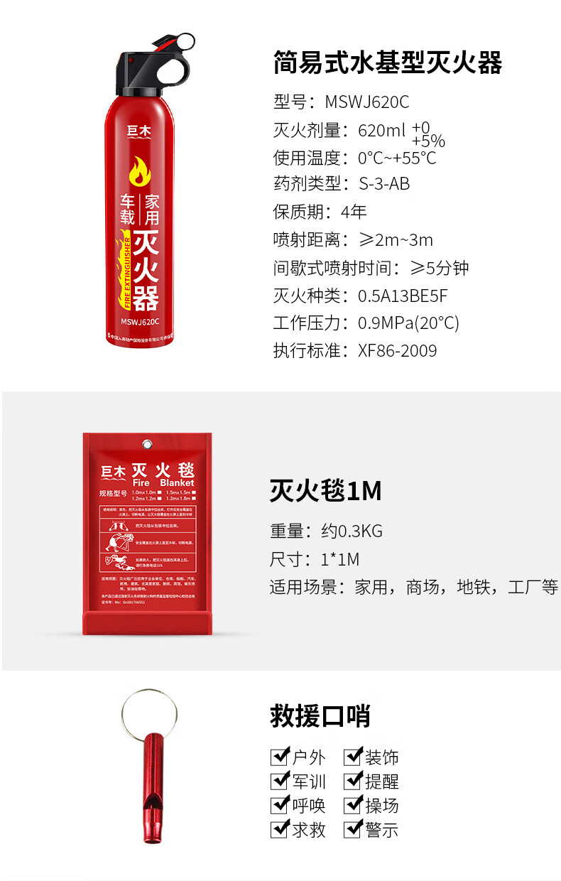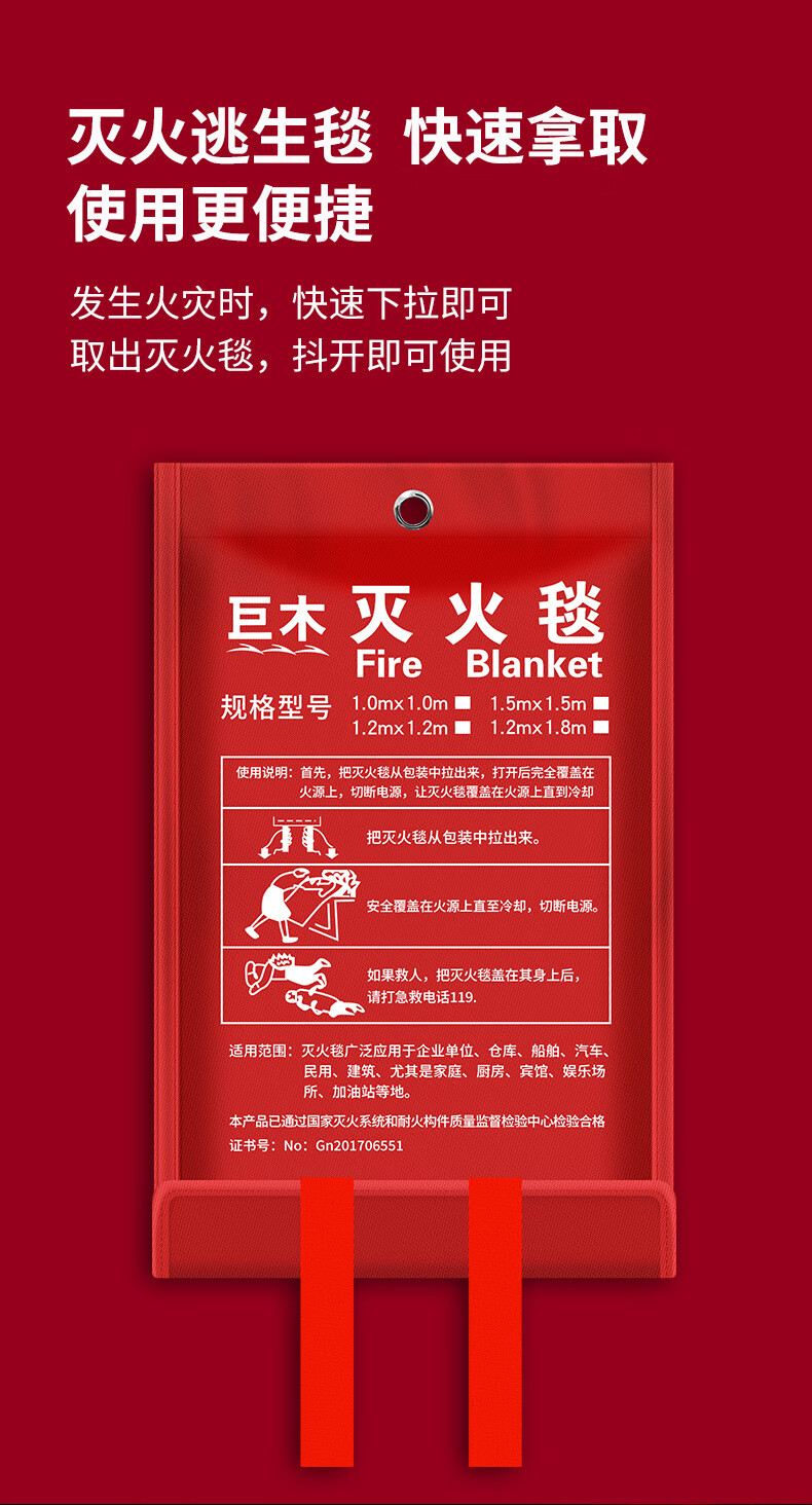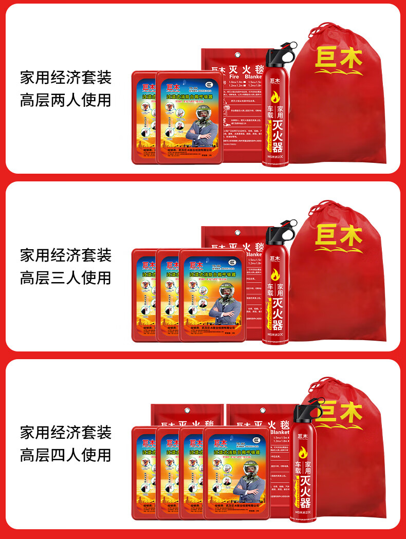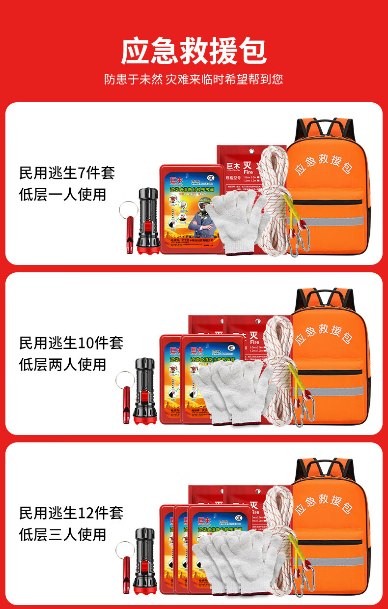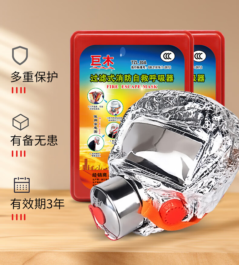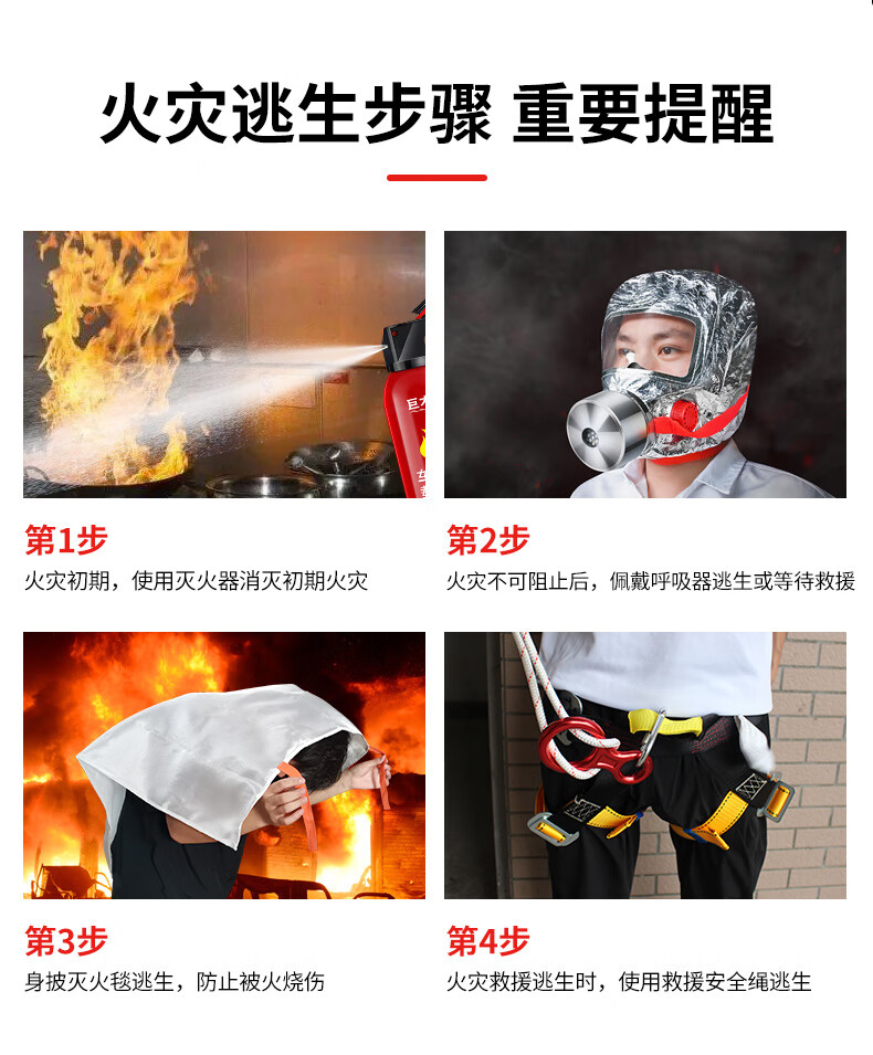Giant wood emergency rescue kit, gas mask, fire extinguishing blanket, flashlight, escape, self-rescue, firefighting equipment, civil defense and combat readiness material set, civil defense emergency kit (4-piece set)
