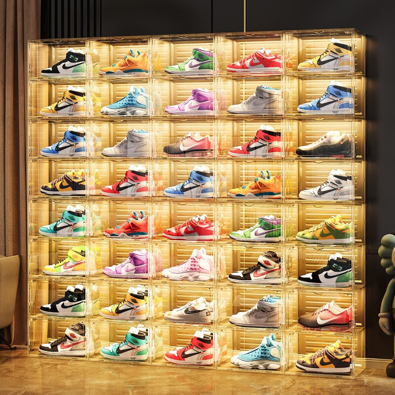 Storage expert shoe box transparent aj shoe storage box can be stacked in the dormitory simple plastic large size shoe cabinet shoe box thickened double magnetic door buckle high definition fully transparent 16 pieces
