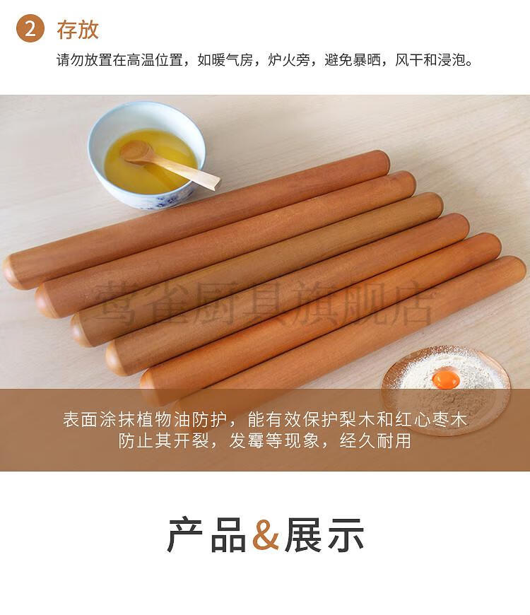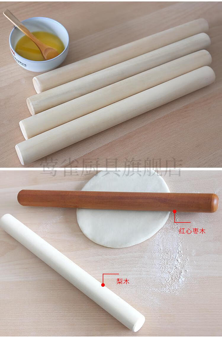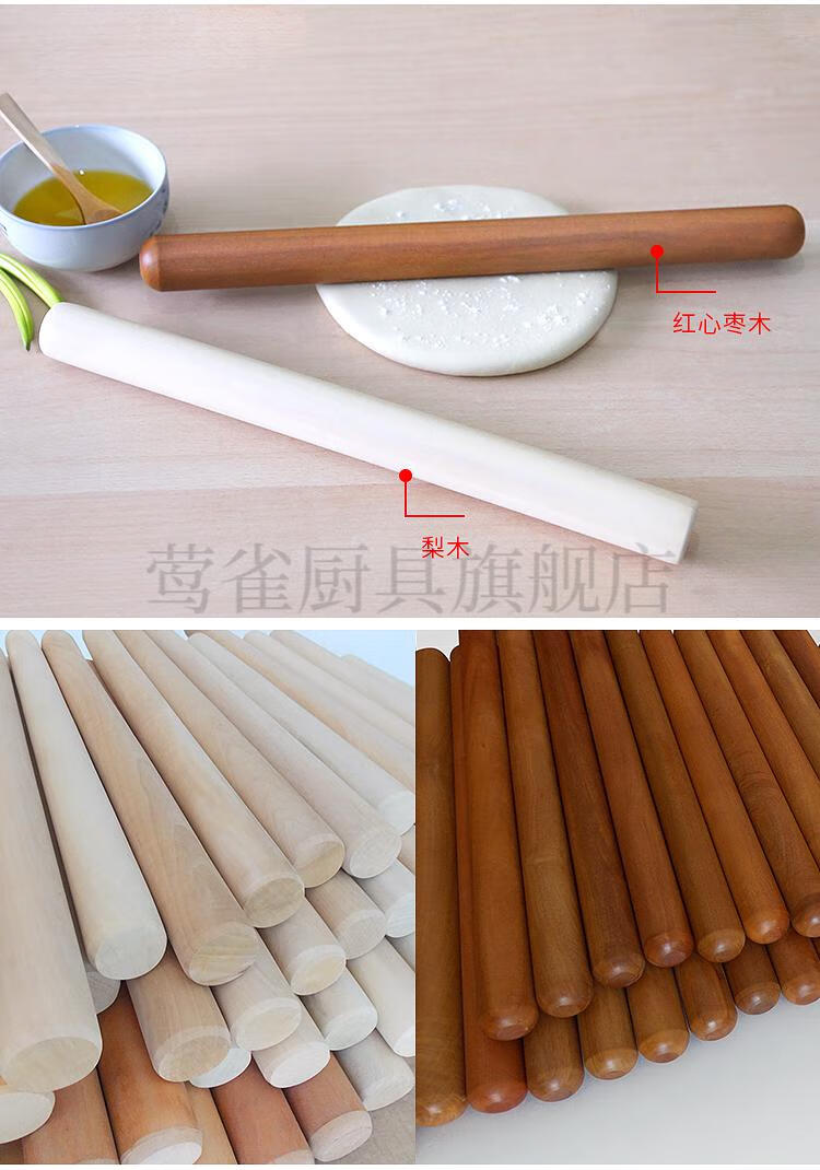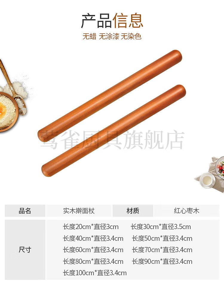 Yahaoying solid wood rolling pin, red heart jujube wood, pear wood noodle stick, small dumpling wrapper, large noodle baking tool, red heart jujube wood, 80 cm long, 3.5 cm thick