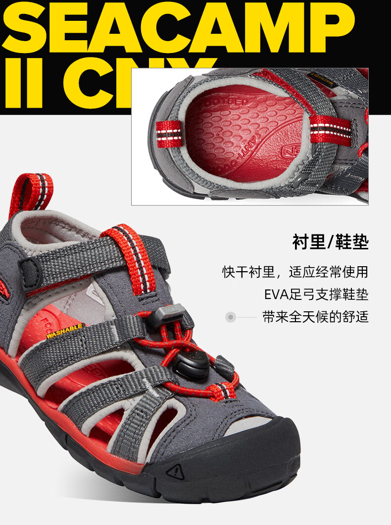 KEEN official SEACAMP II CNX children's protective toe sandals, river shoes, magnet gray/smoky rain color-1022970 31, take half a size up/one size up
