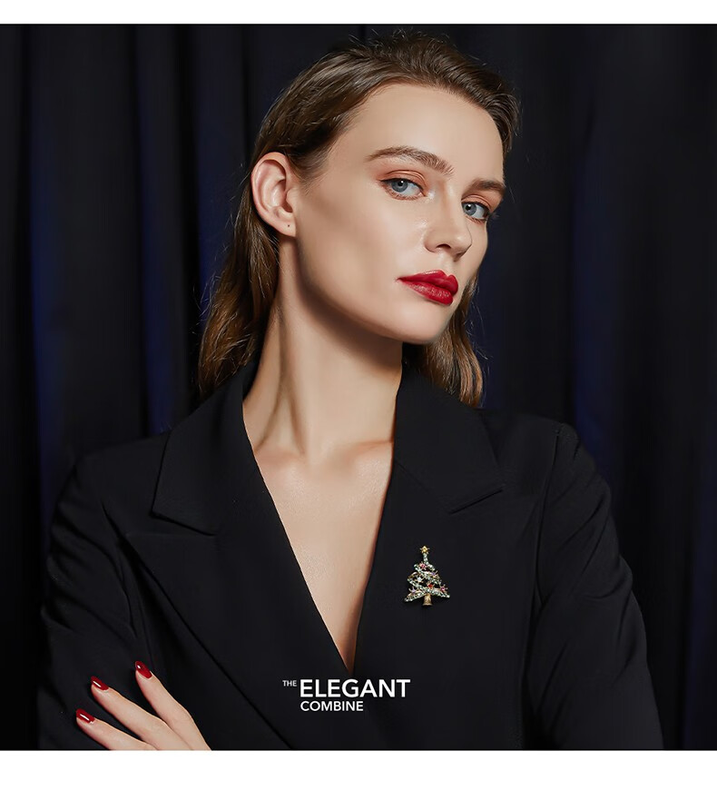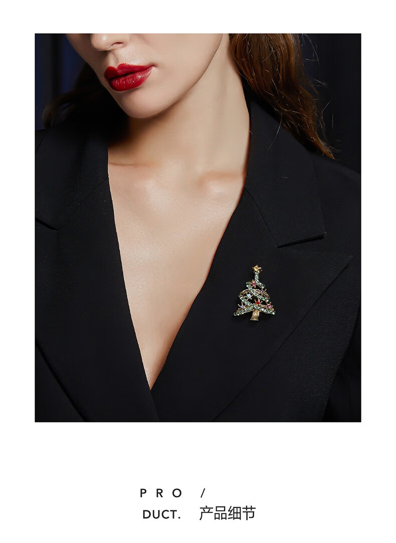 Jay New Christmas Tree Brooch Women's Christmas Pin Coat Accessories Gift for Girlfriend Gold