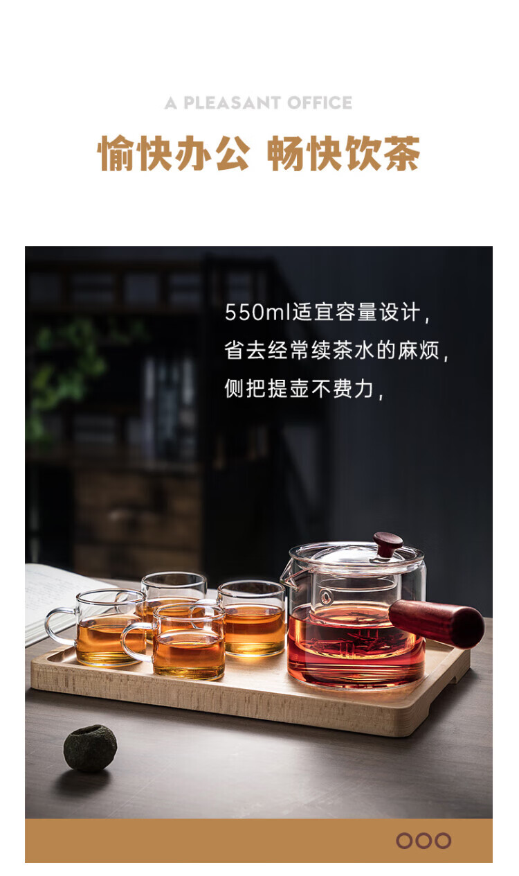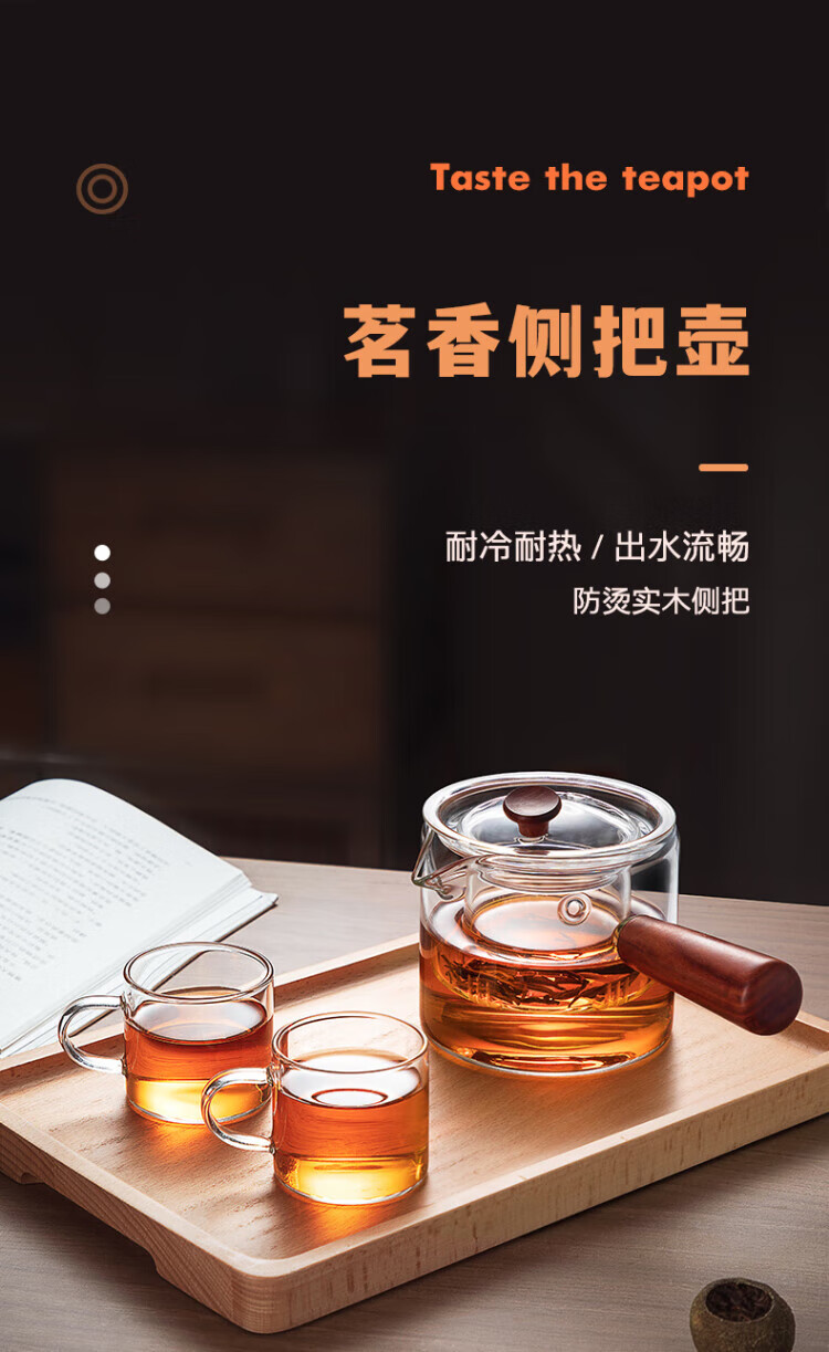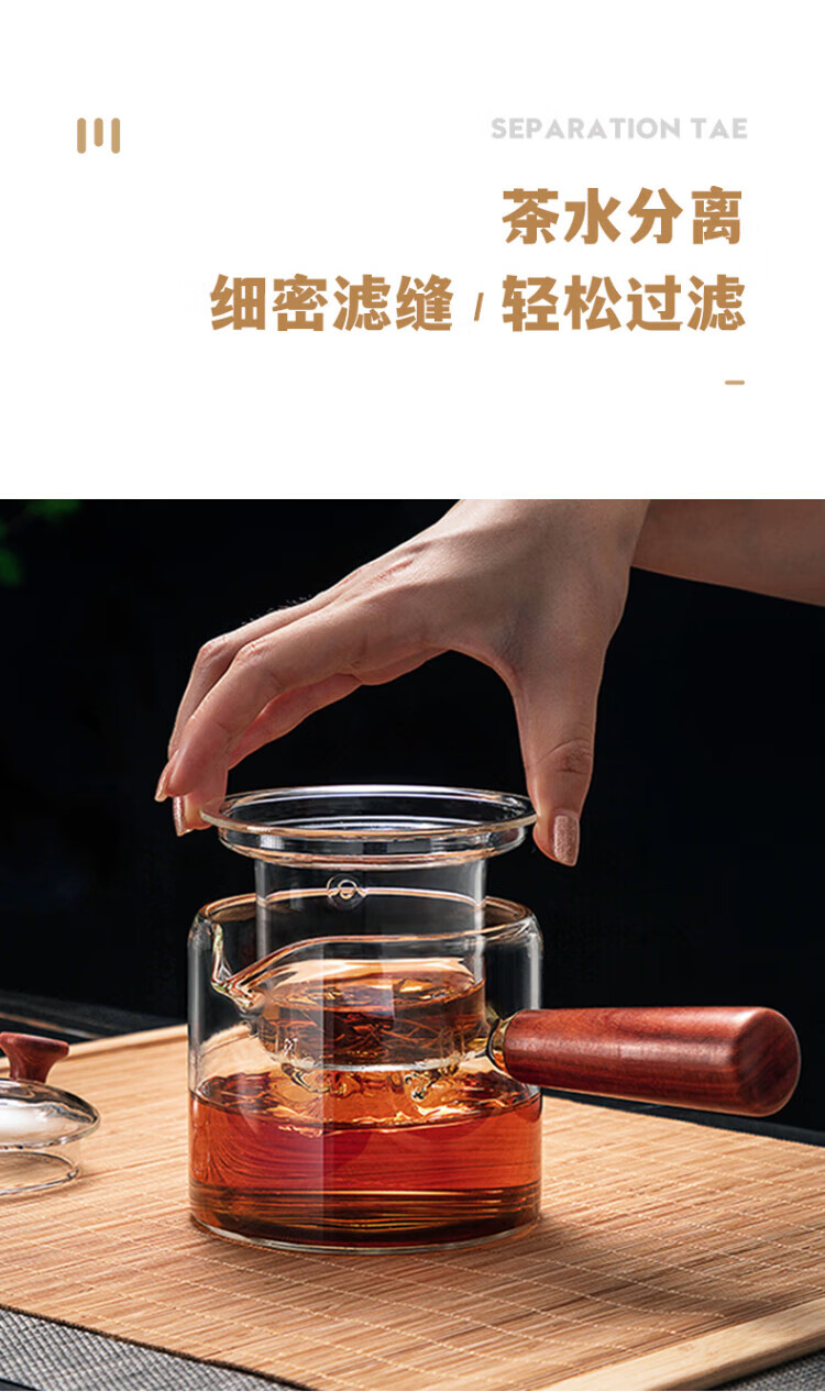 Nan Ruoying side handle glass teapot high temperature resistant teapot single pot filter kungfu tea set side handle solid wood teapot 550ml