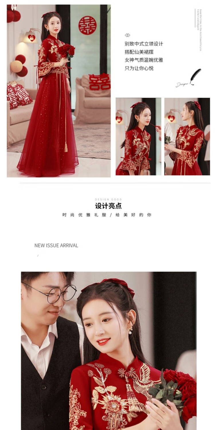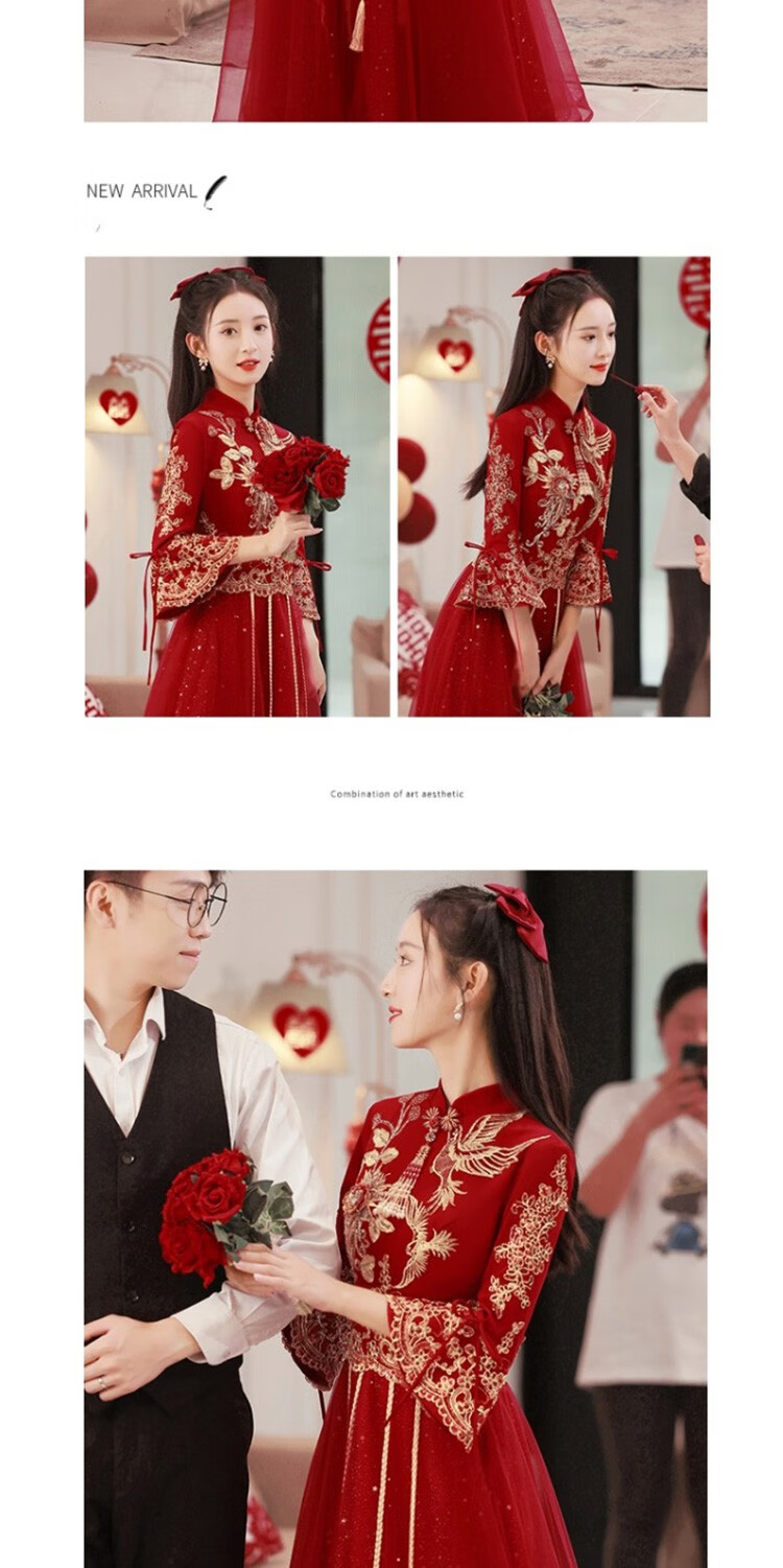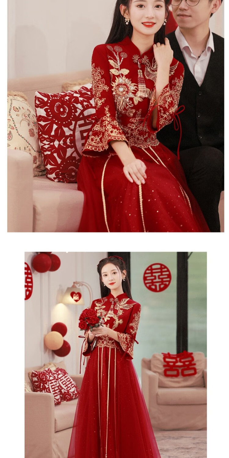 Seidler New Chinese Bridal Toast Wear Cheongsam 2025 New Evening Dress Winter Long Dress Engagement Burgundy Long L (Recommended 106-115 Jin Jin equals 0.5 kg)