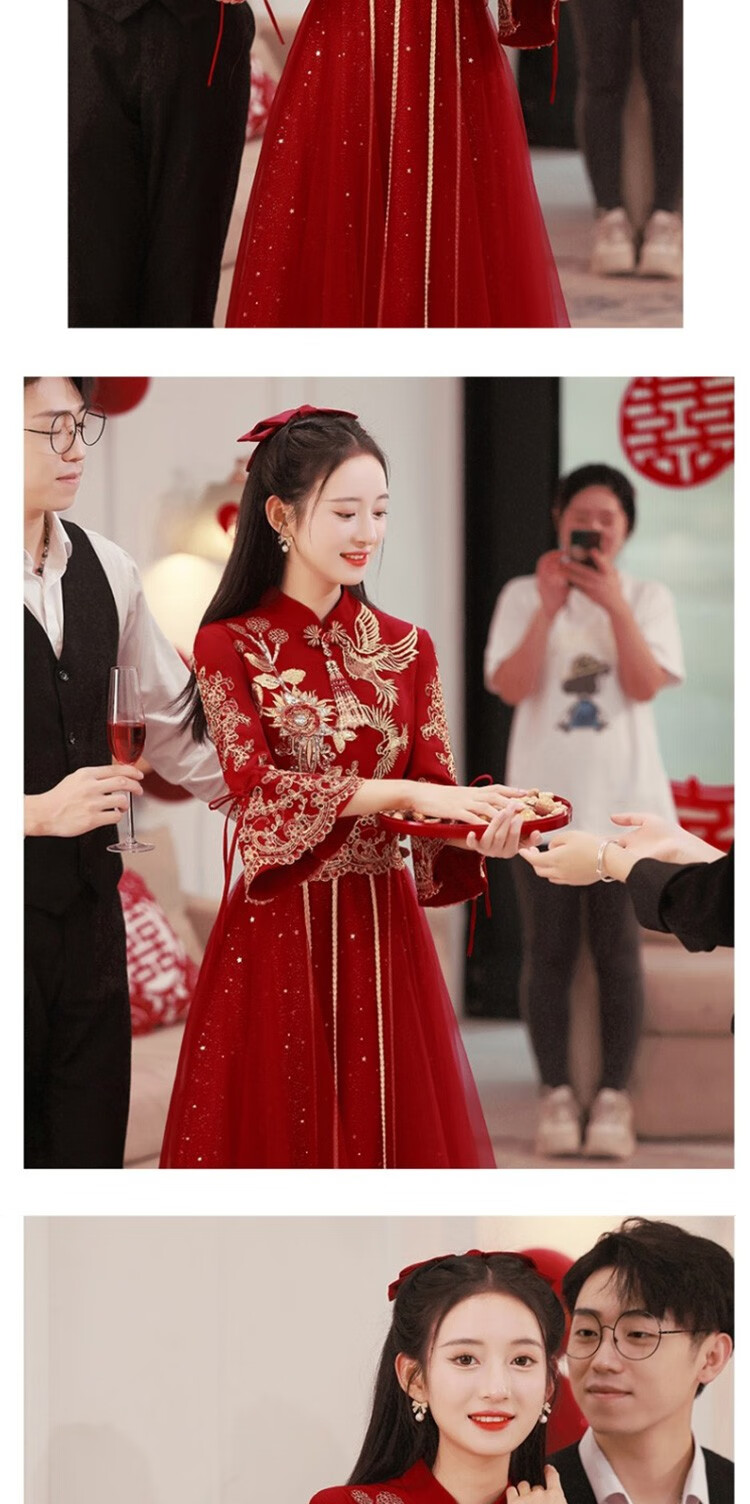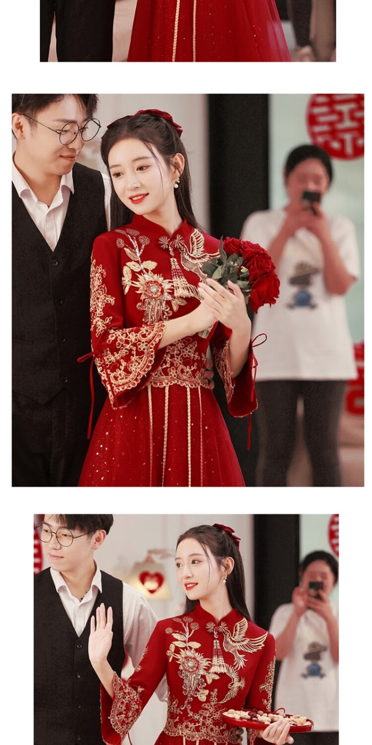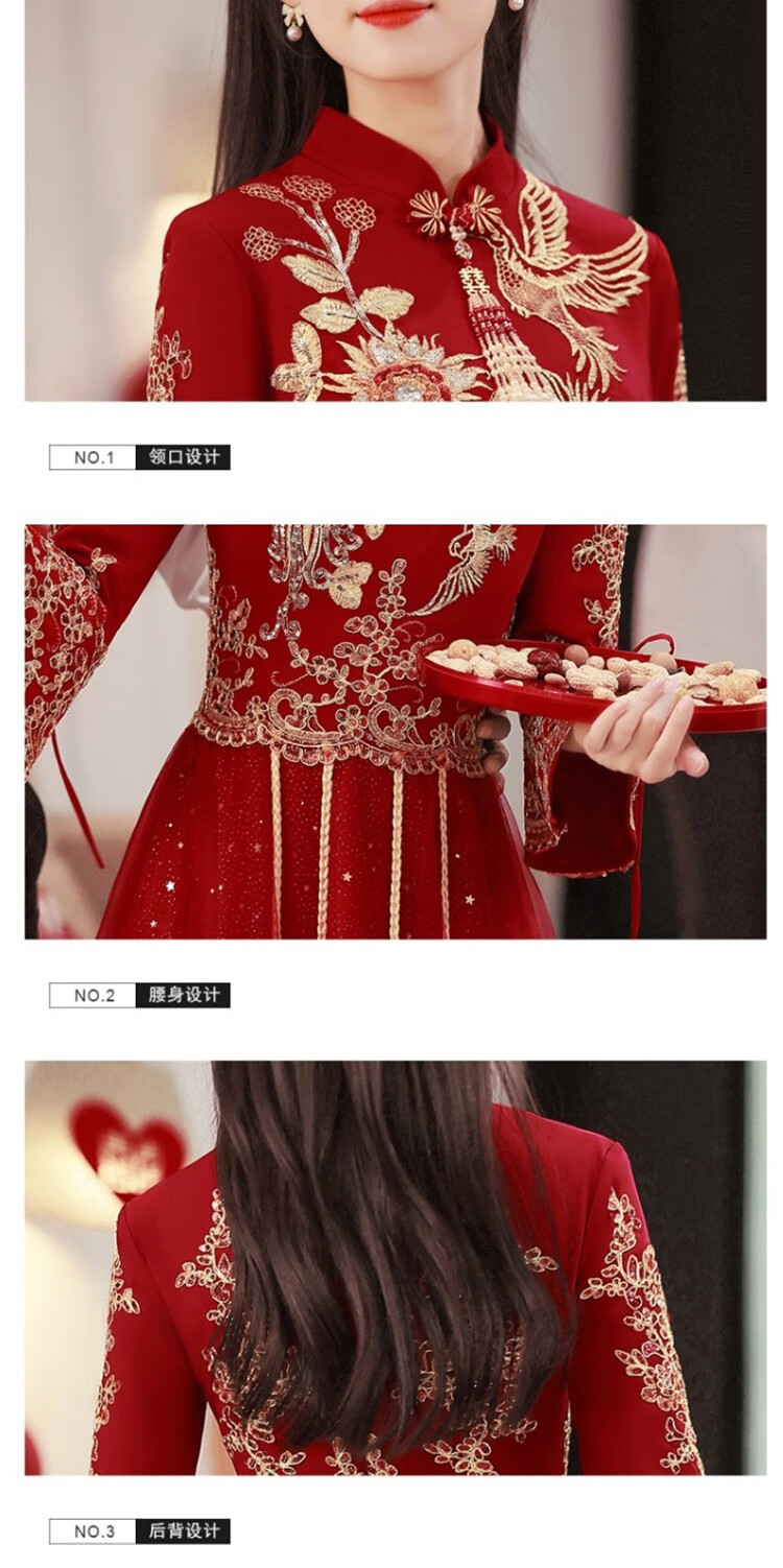 Seidler New Chinese Bridal Toast Wear Cheongsam 2025 New Evening Dress Winter Long Dress Engagement Burgundy Long L (Recommended 106-115 Jin Jin equals 0.5 kg)
