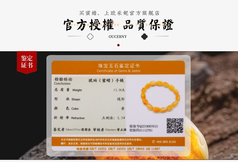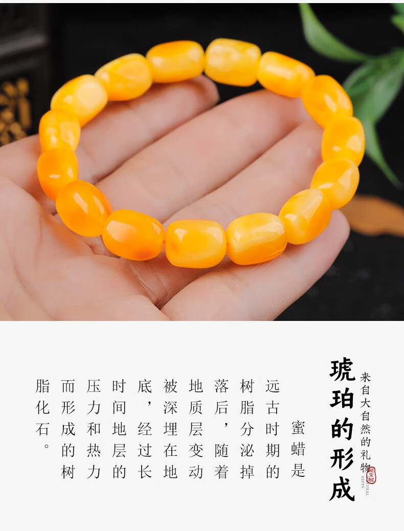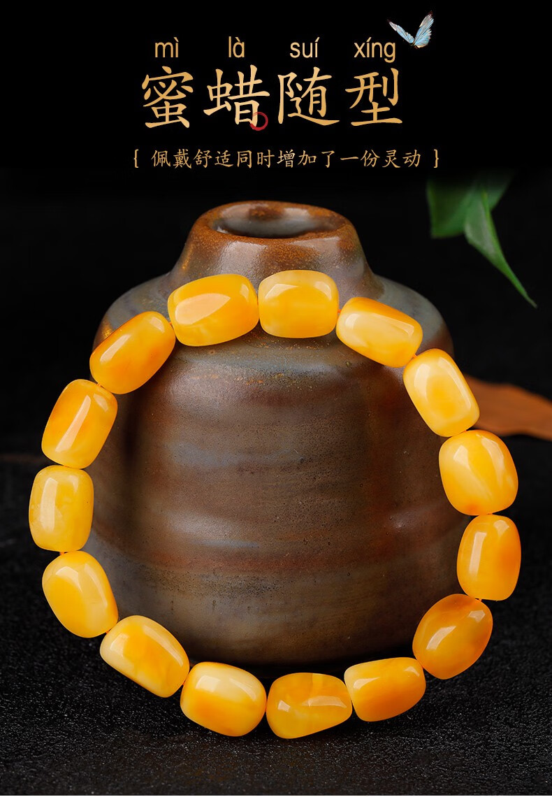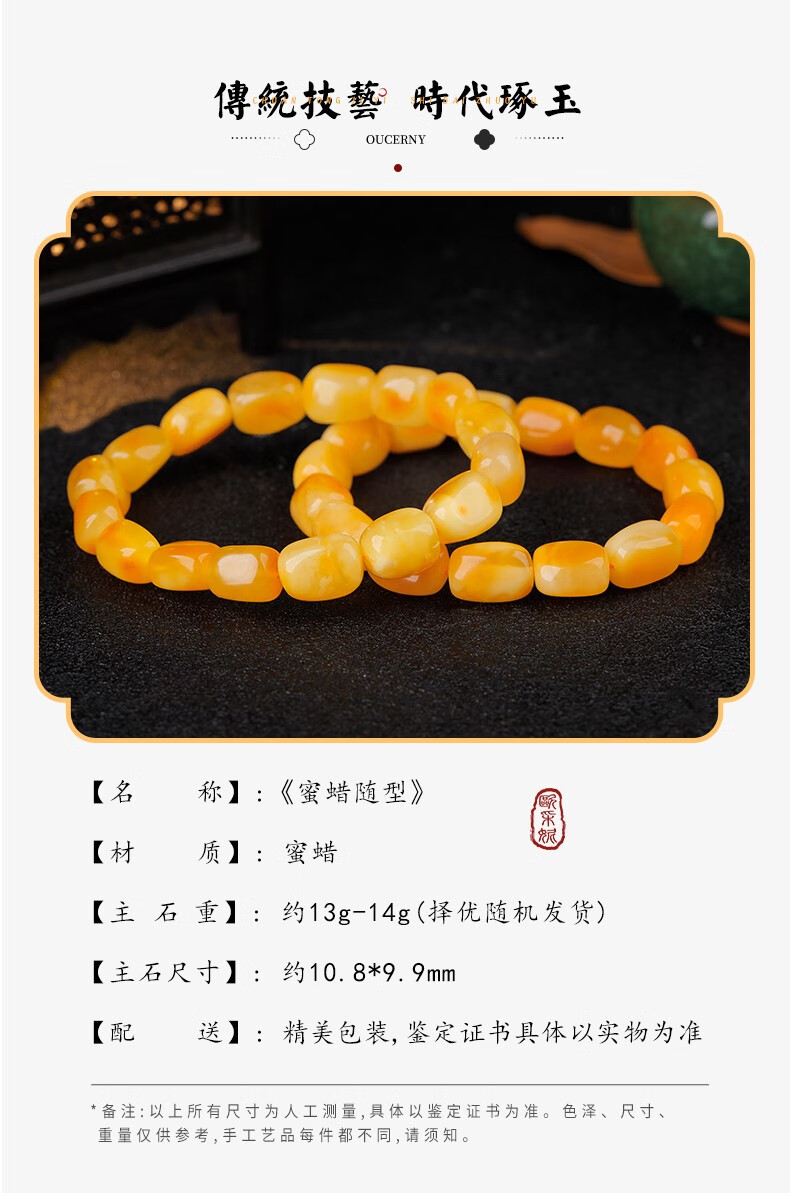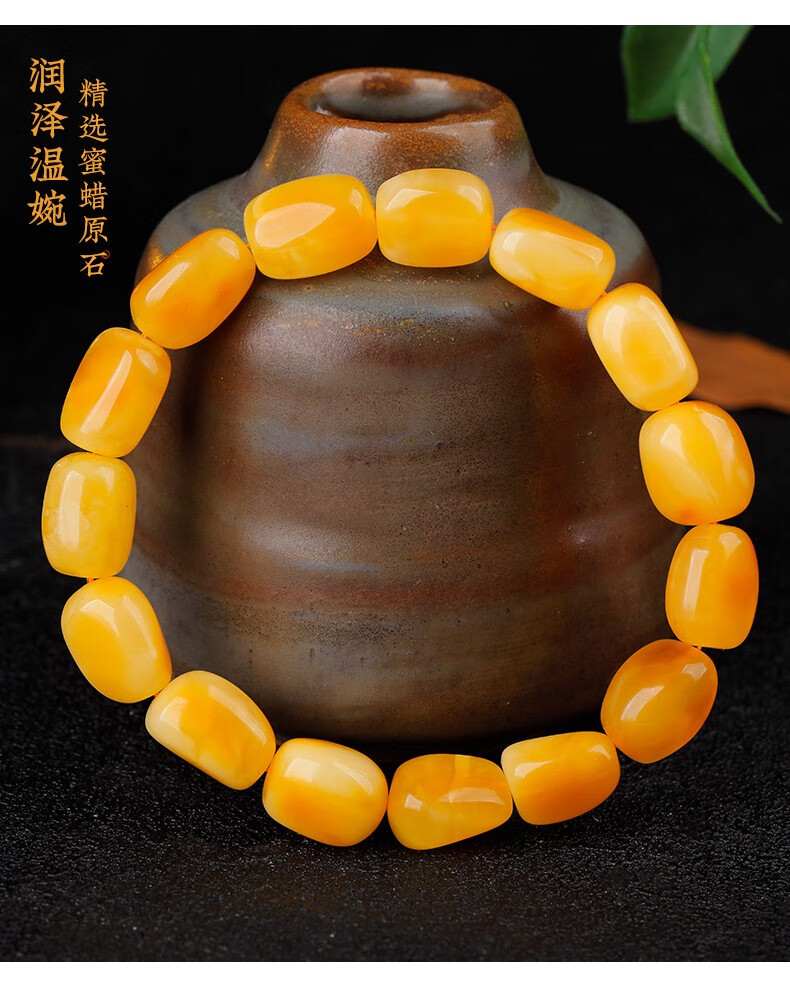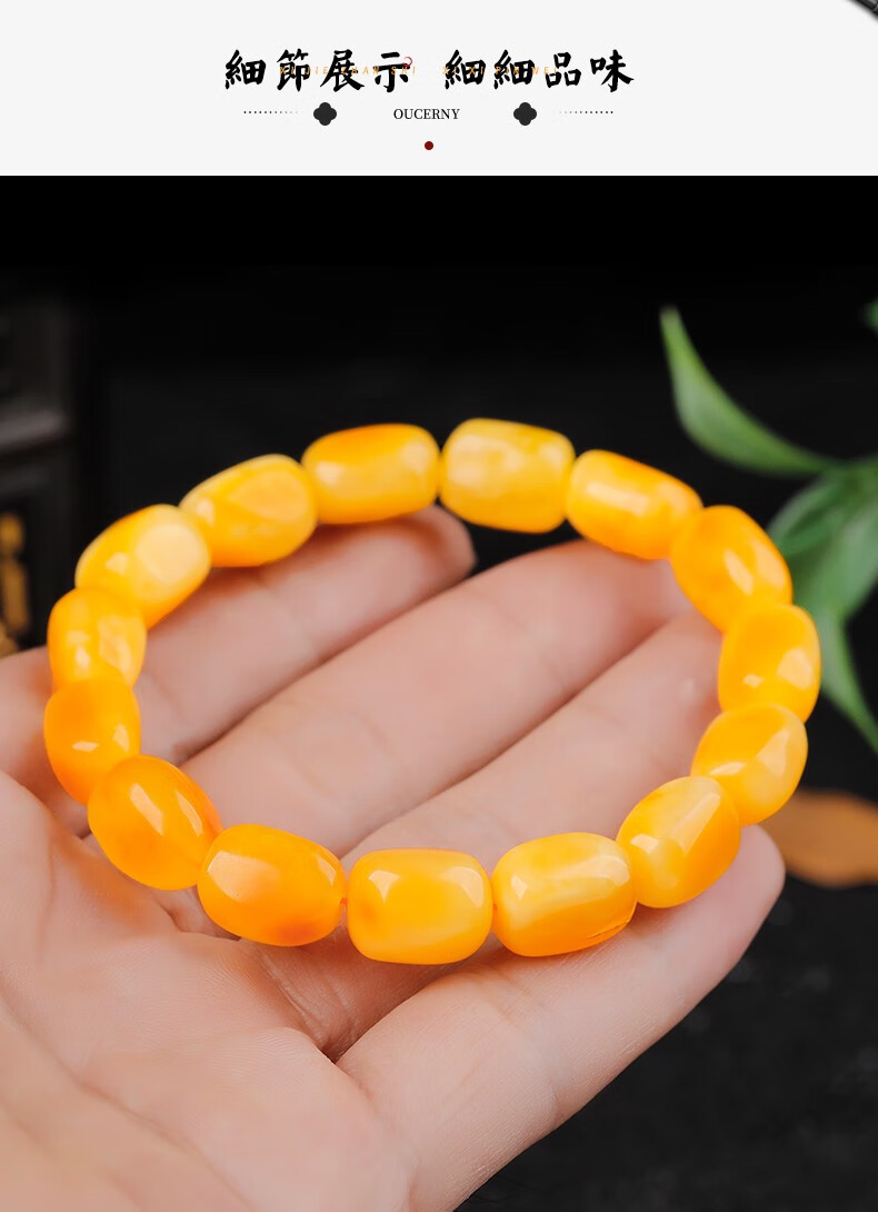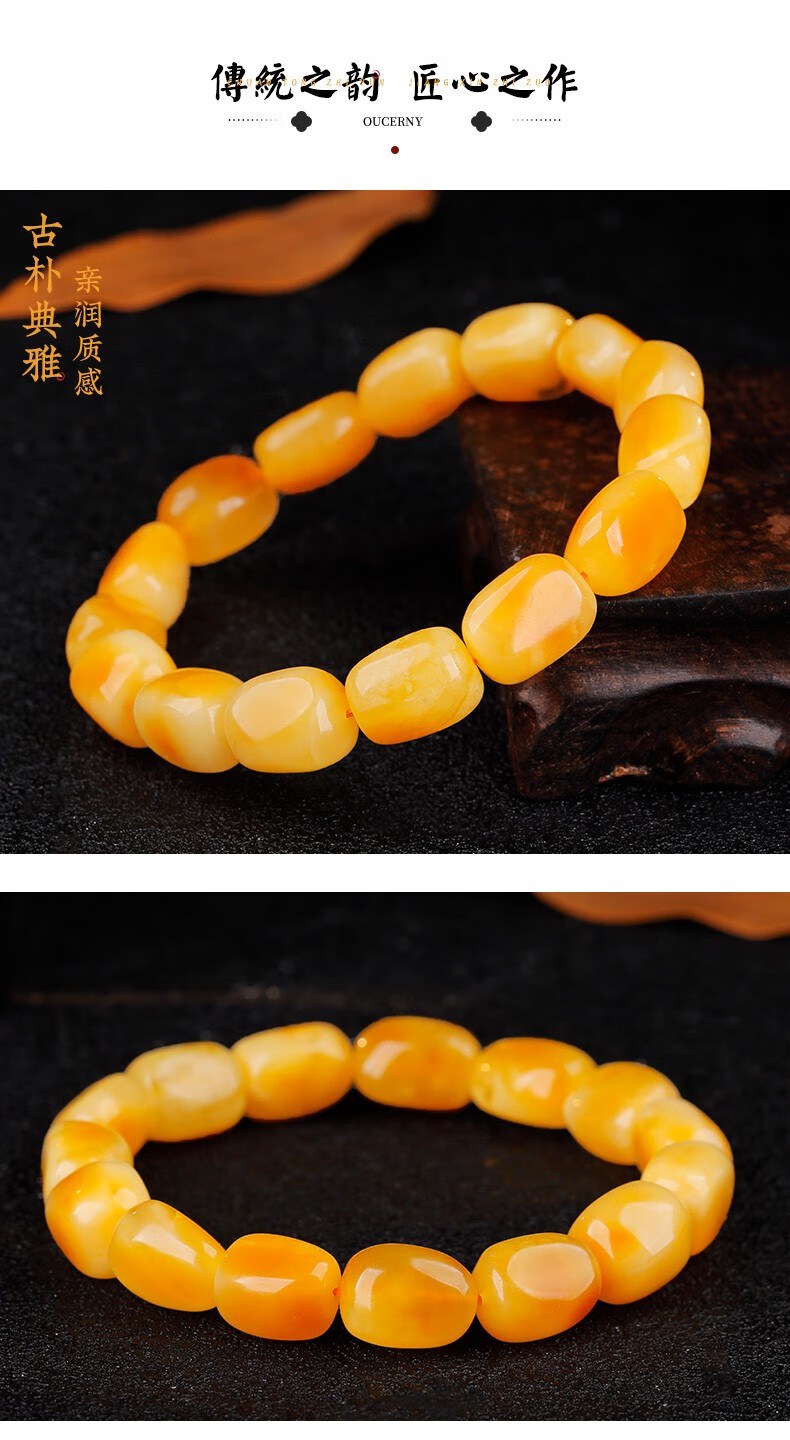 Ouchini Beeswax Style Bracelet Natural Raw Stone Amber Bracelet Chicken Oil Yellow Single Ring Russian Material Chinese Valentine's Day Gift 13-14g One item, one certificate, supports re-inspection