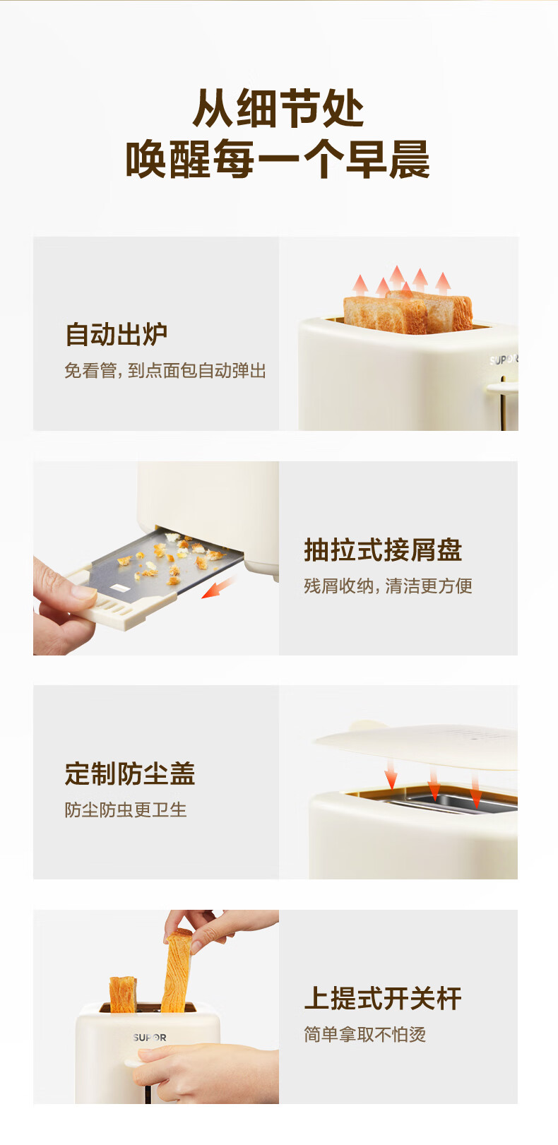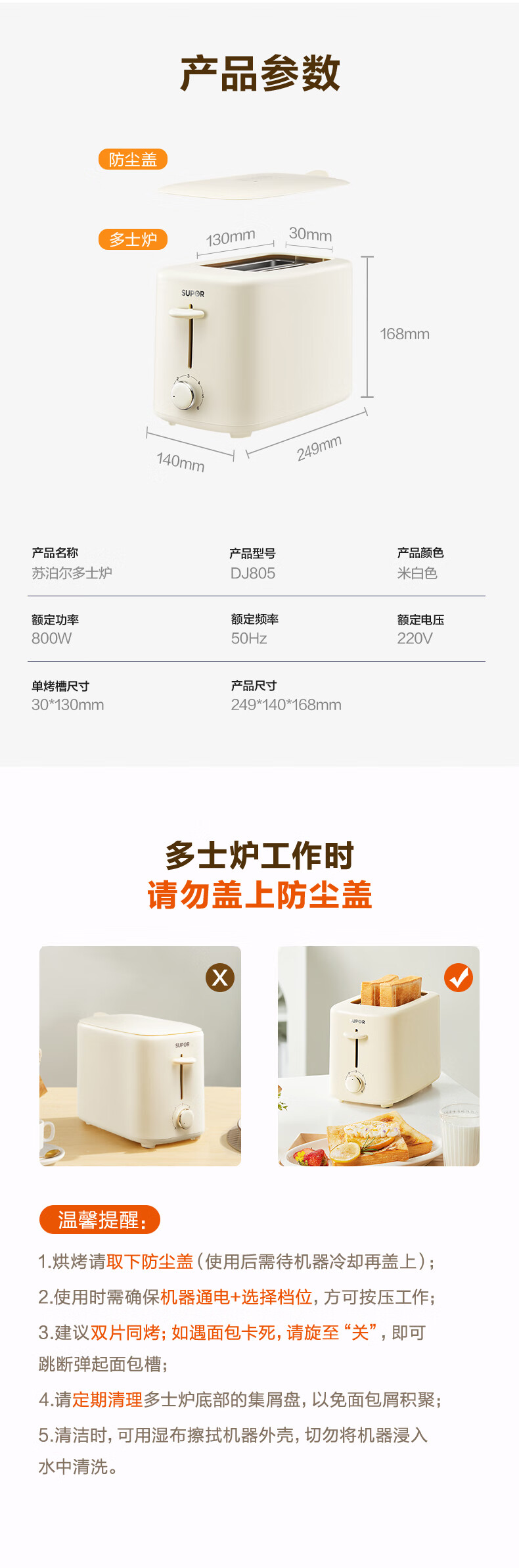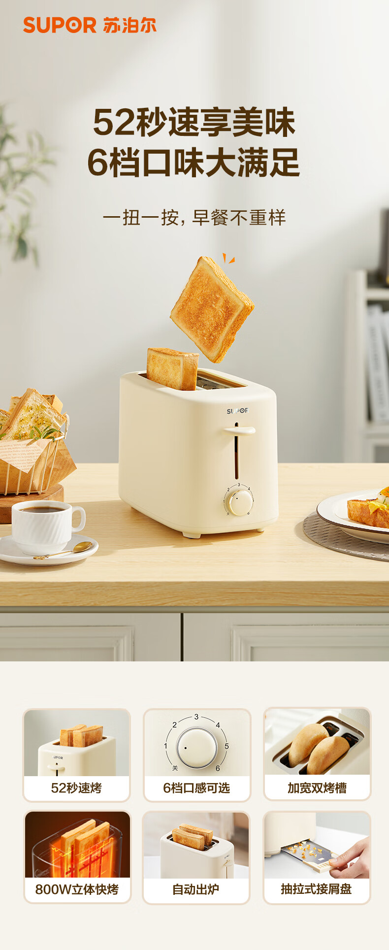 SUPOR SUPOR bread machine household small multi-functional fully automatic toaster toasted bread breakfast sandwich toaster double-sided heating bread DJ805