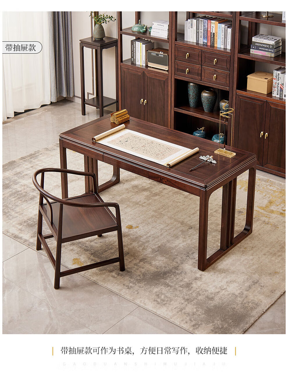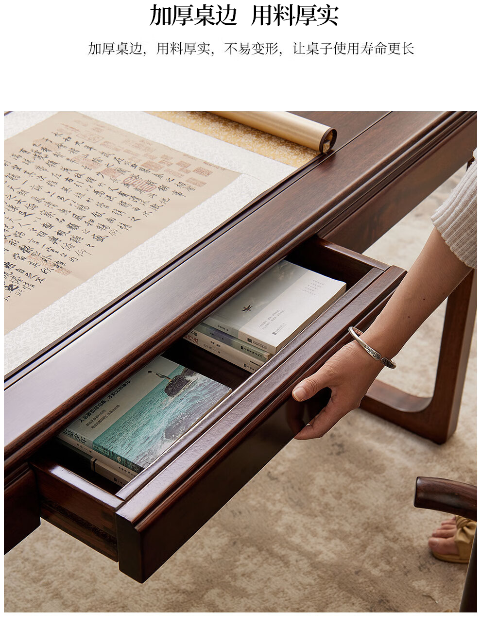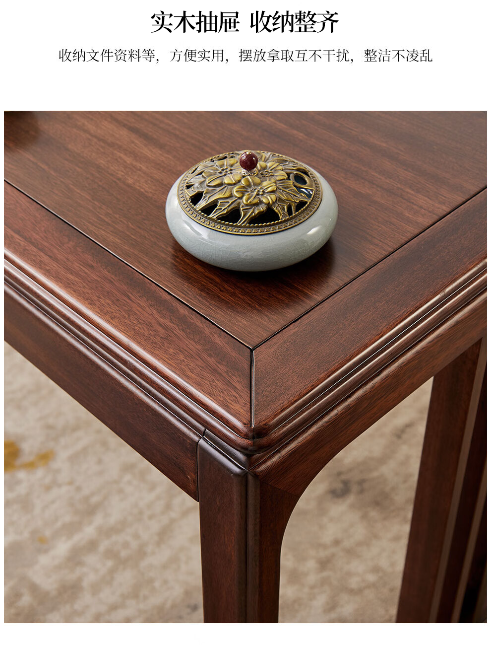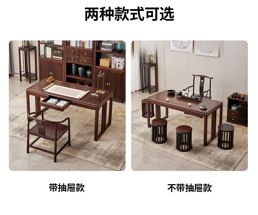 Sure enough, new Chinese style ebony solid wood desk, simple calligraphy table, home writing desk, rectangular desk, Fu Rudonghai desk 1.4 meters (with drawer)
