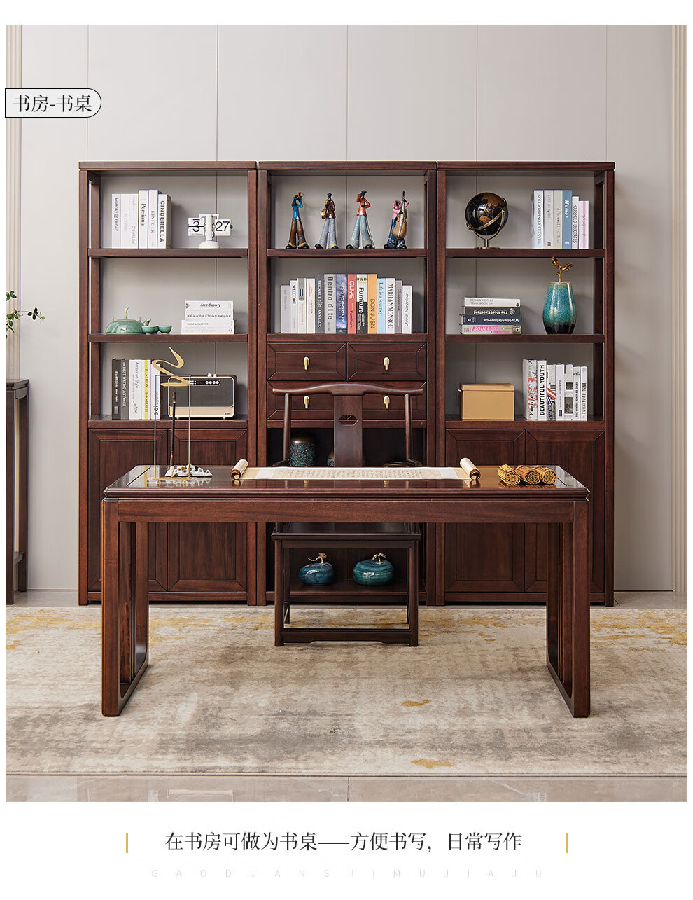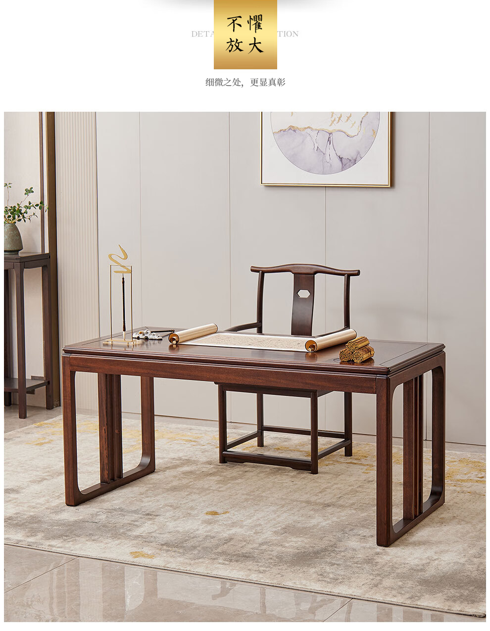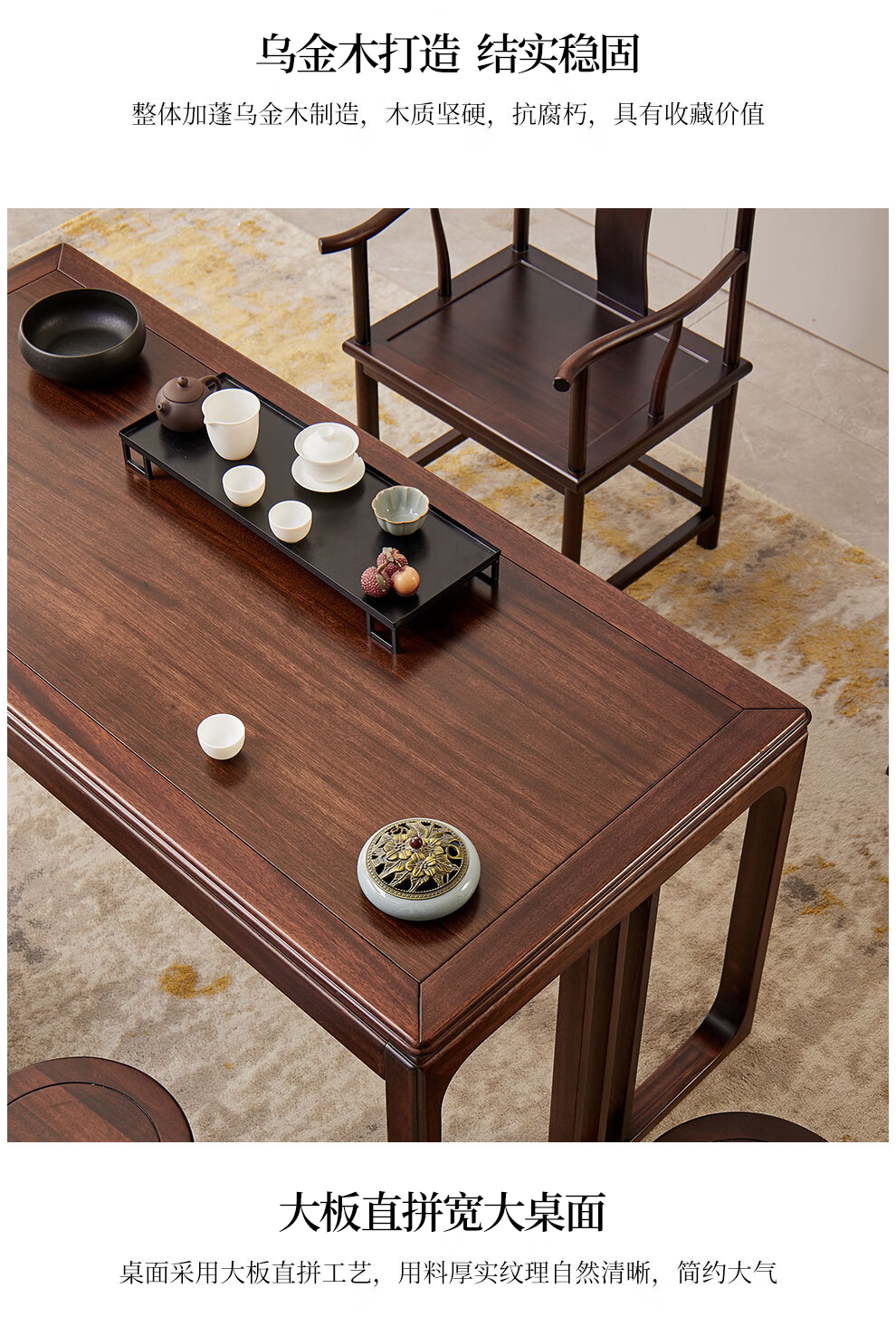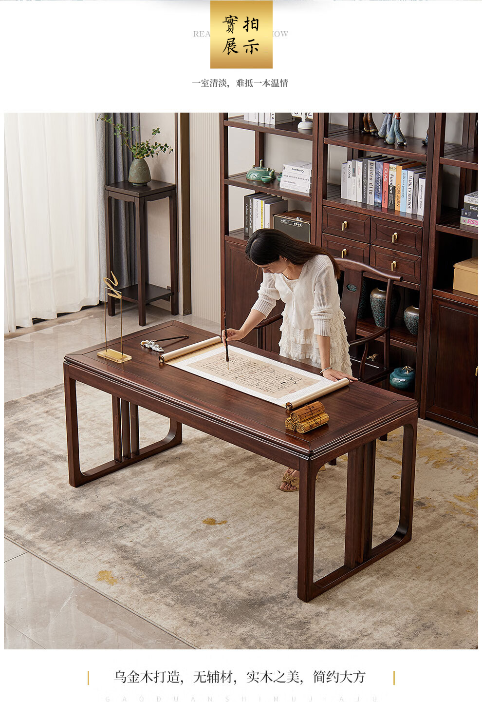 Sure enough, new Chinese style ebony solid wood desk, simple calligraphy table, home writing desk, rectangular desk, Fu Rudonghai desk 1.4 meters (with drawer)