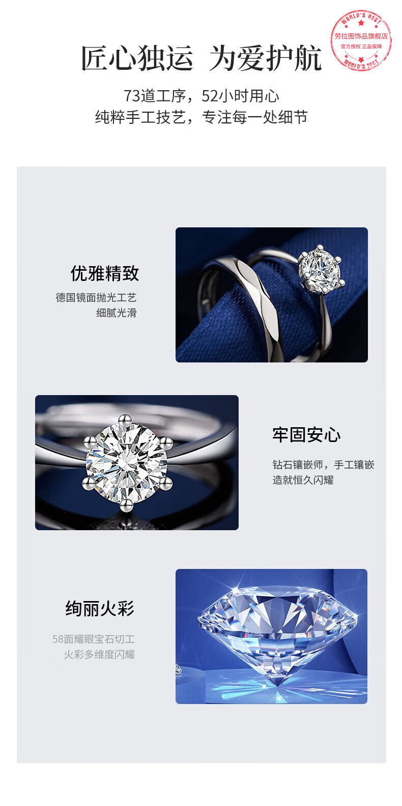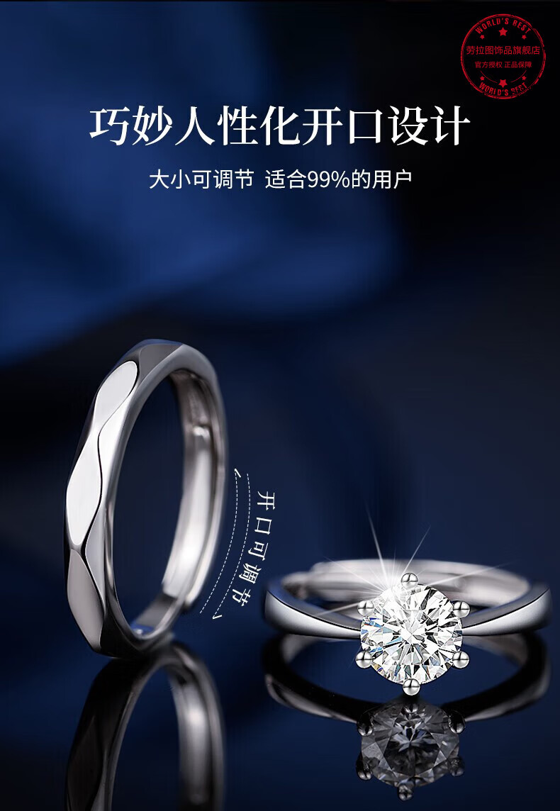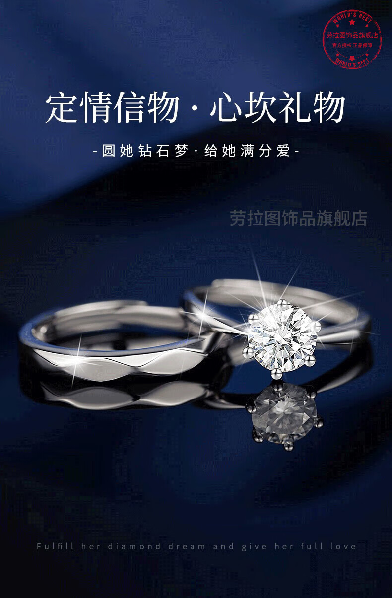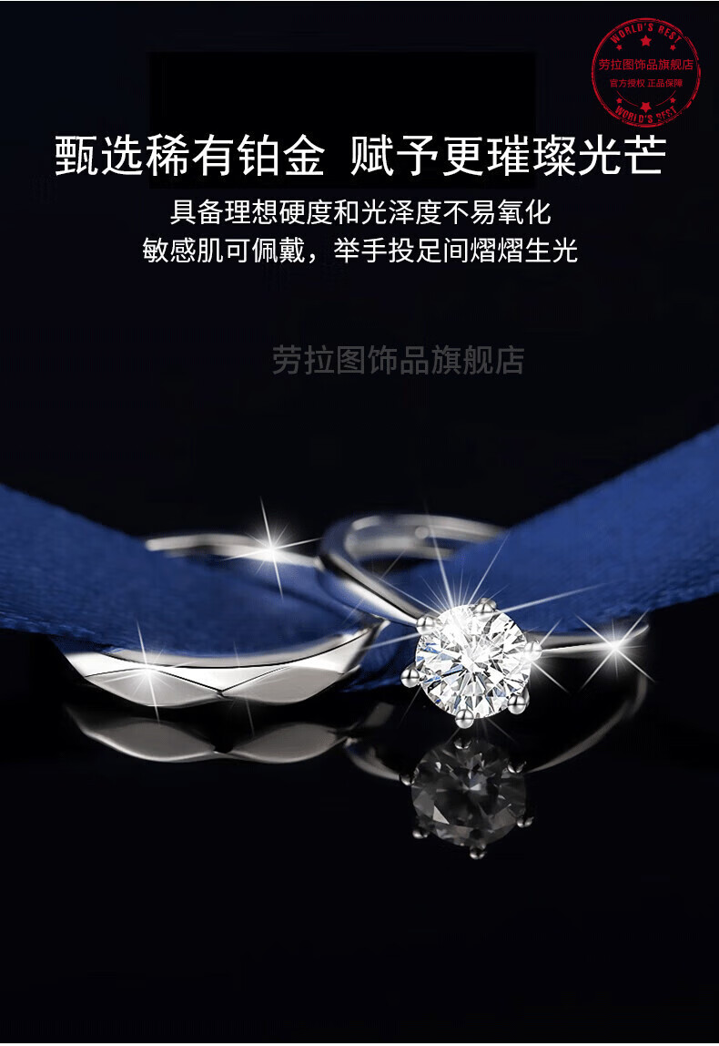 LAOLATU platinum ring for women PT950 platinum couple ring proposal engagement ring opening Chinese Valentine's Day gift for girlfriend and wife pt950 platinum ring adjustable mouth