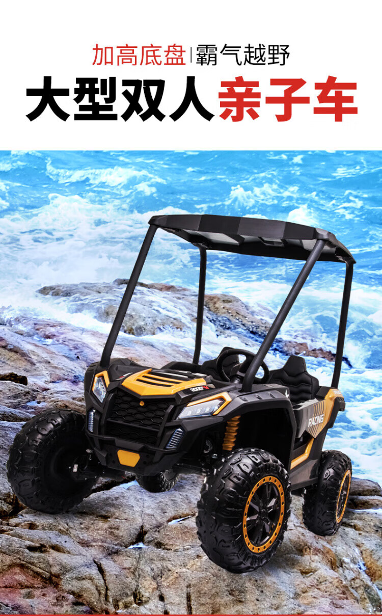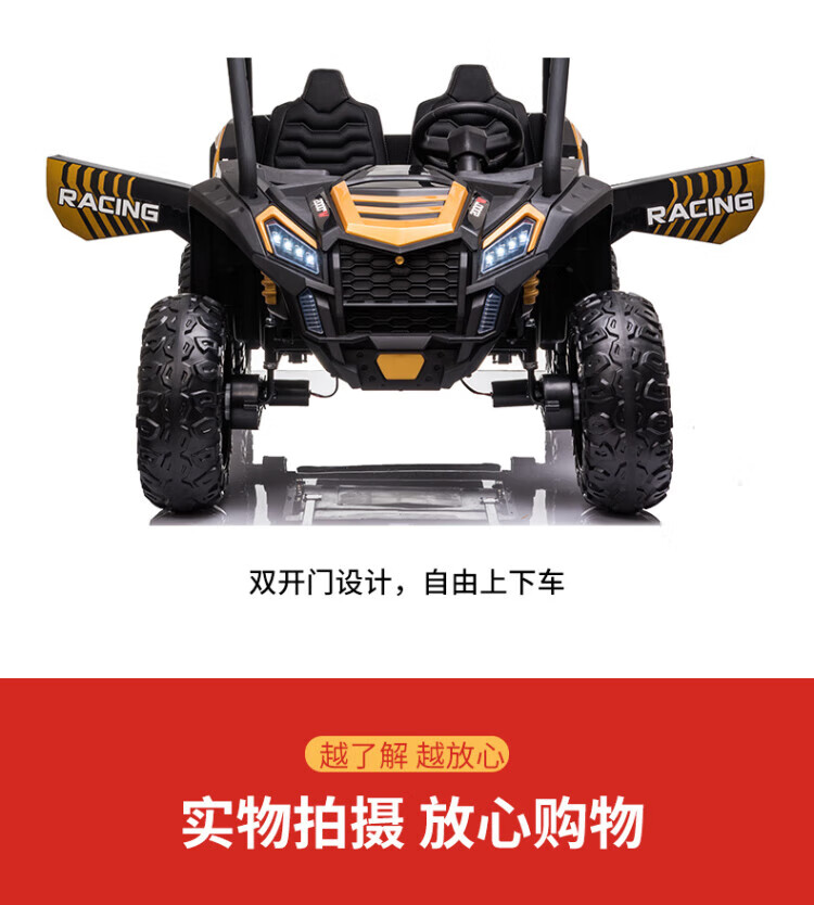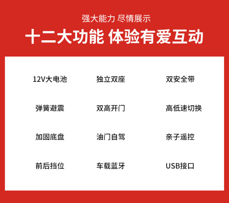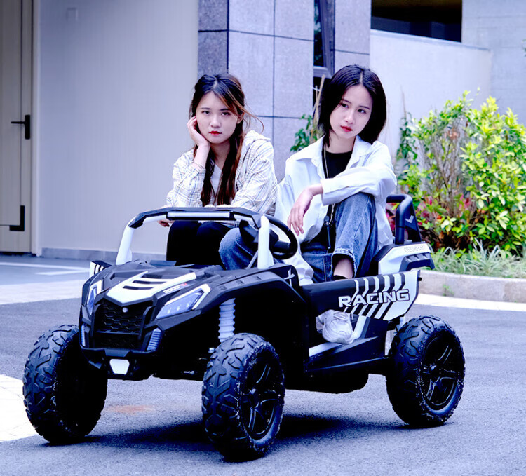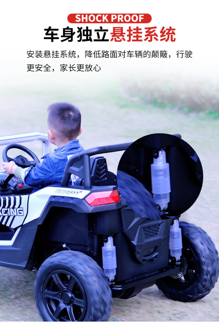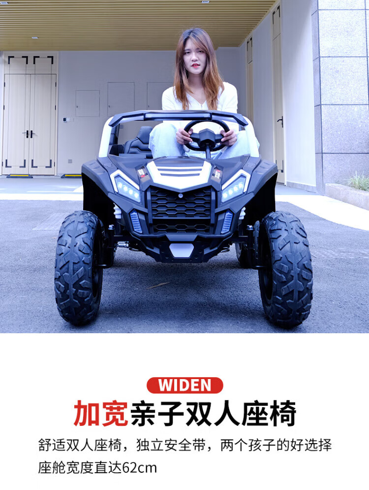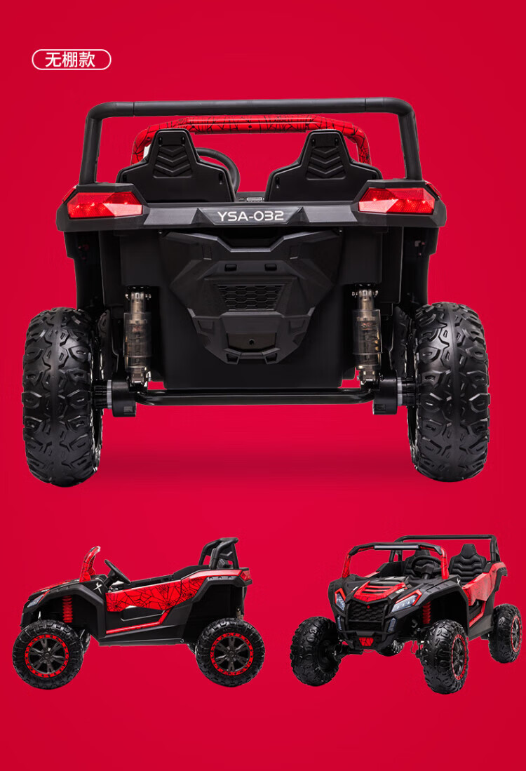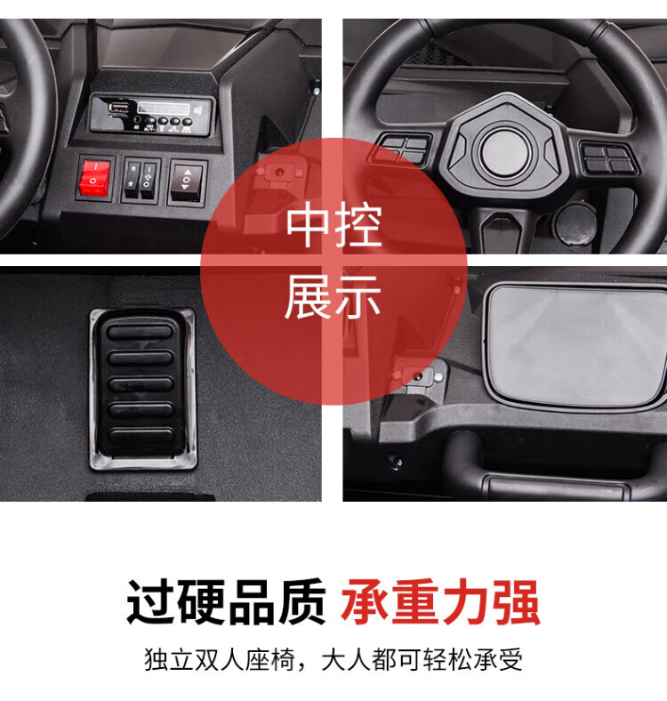 Vieruodis double children's electric car can seat adults four-wheel four-wheel drive remote control off-road baby and child 24V 4WD red + anti-1 explosion soft wheels + leather seat 24V10AH battery sub-power