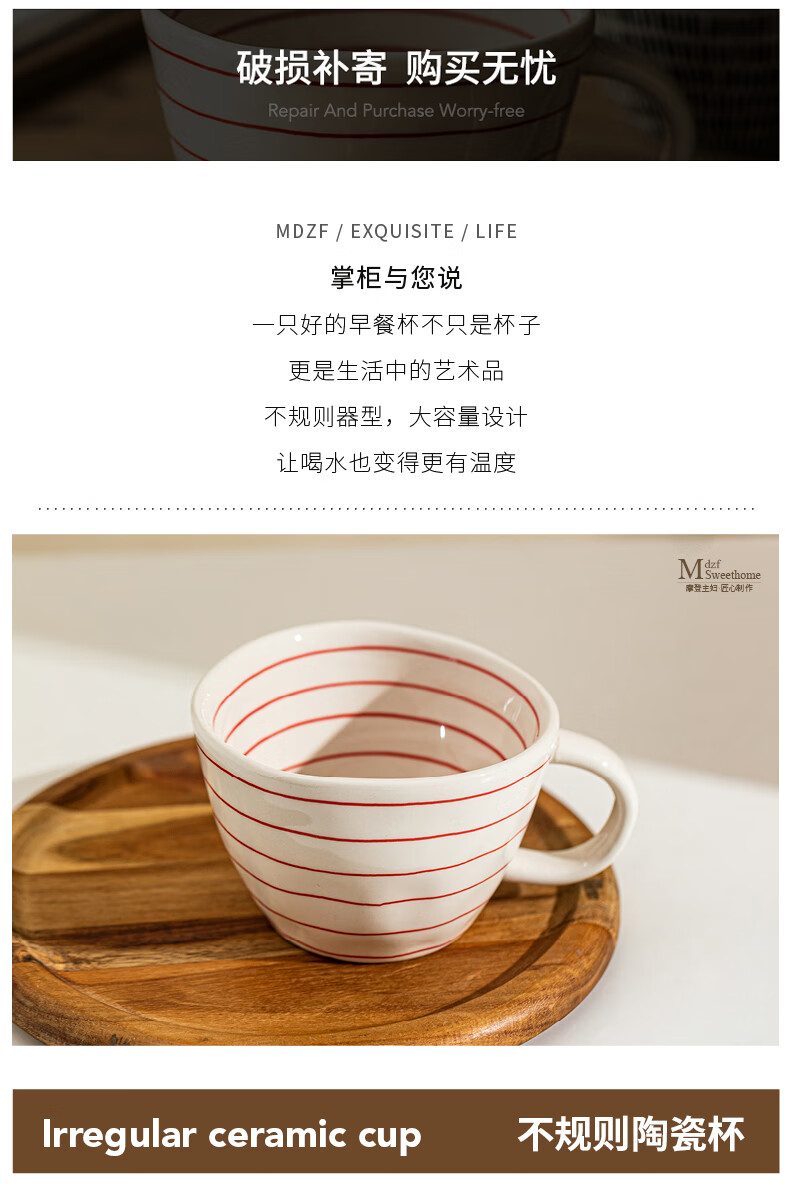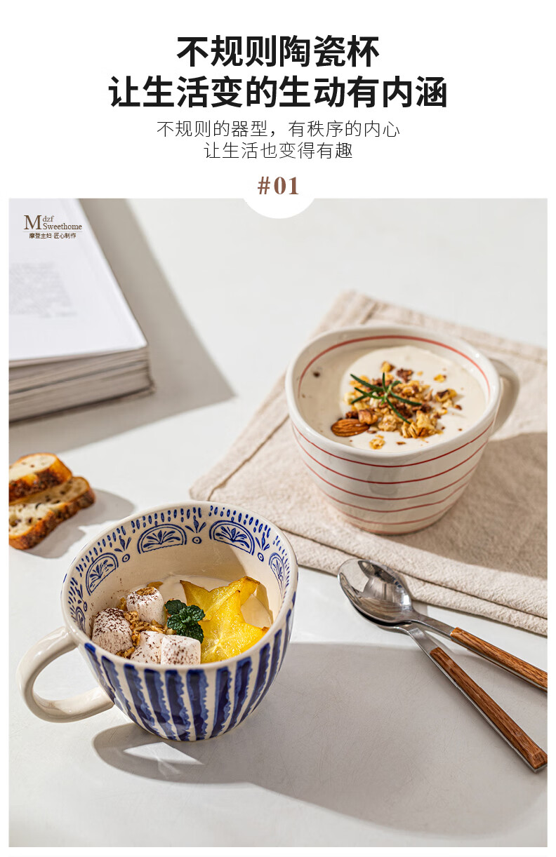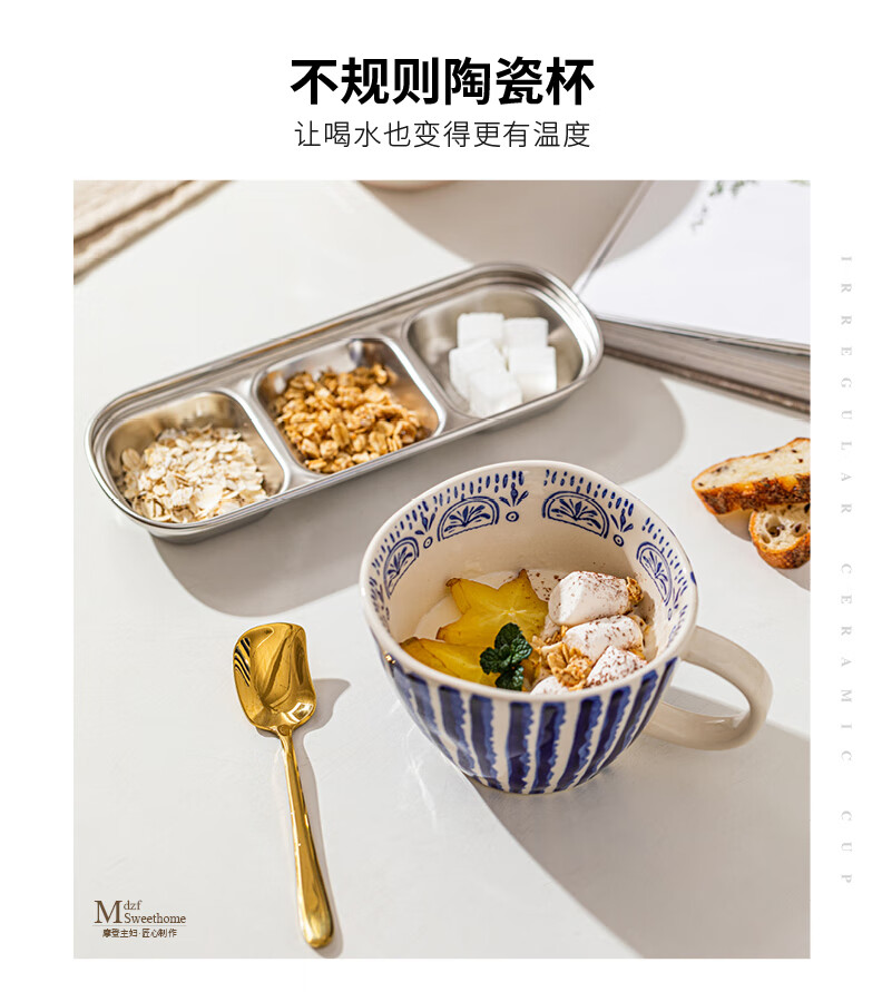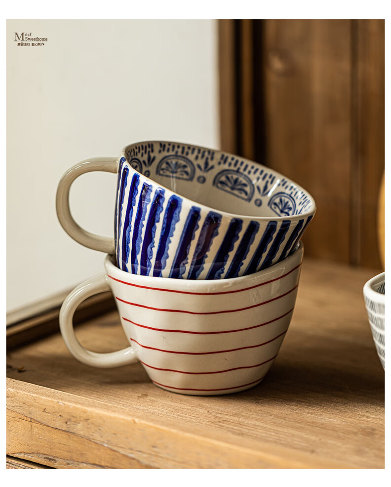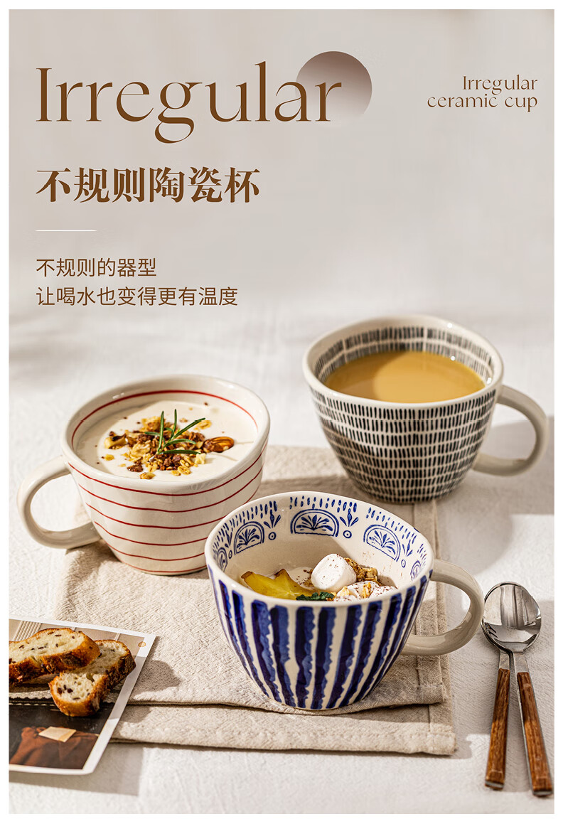 Modern Housewife Mug Ceramic Water Cup Home Office Breakfast Cup Girls High-Looking Coffee Cup Hand-painted Irregular Cup Blue Specifications See Figure 2 for details