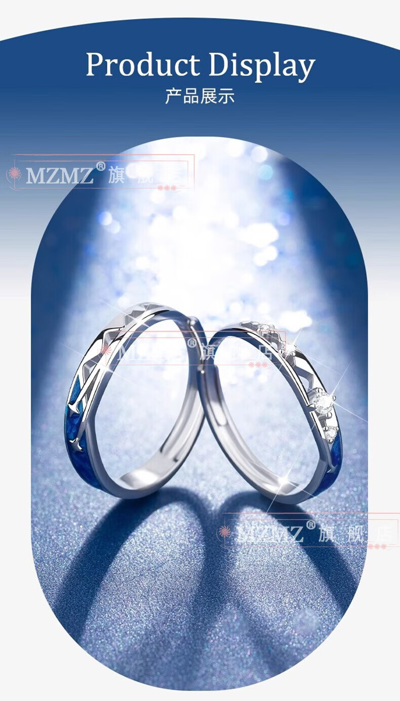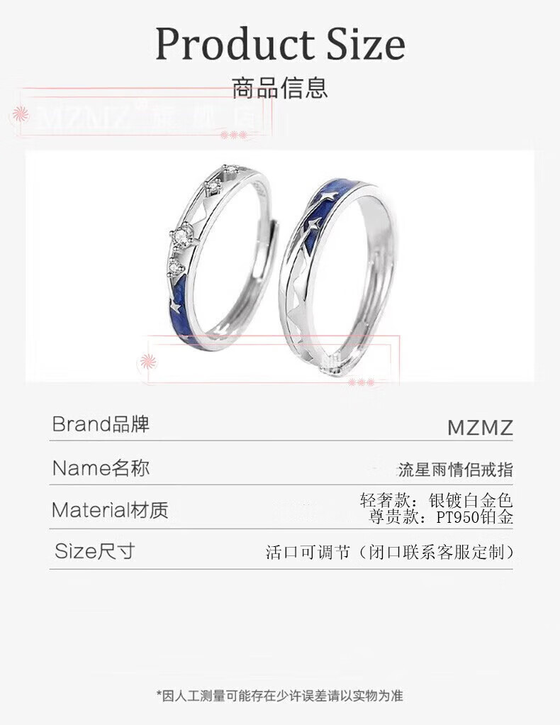 MZMZ Meteor Shower Couple Ring PT950 platinum open-ended adjustable pair of rings for engagement and Valentine's Day gift for girlfriend, light luxury model - live pair of rings available in local warehouse/next day delivery