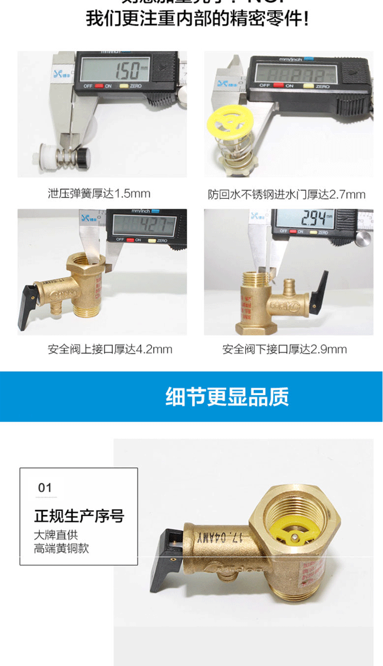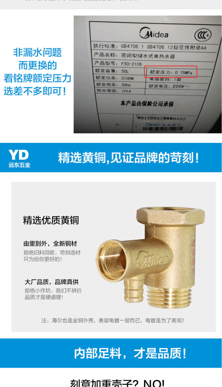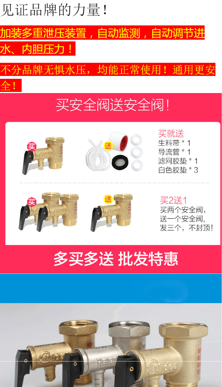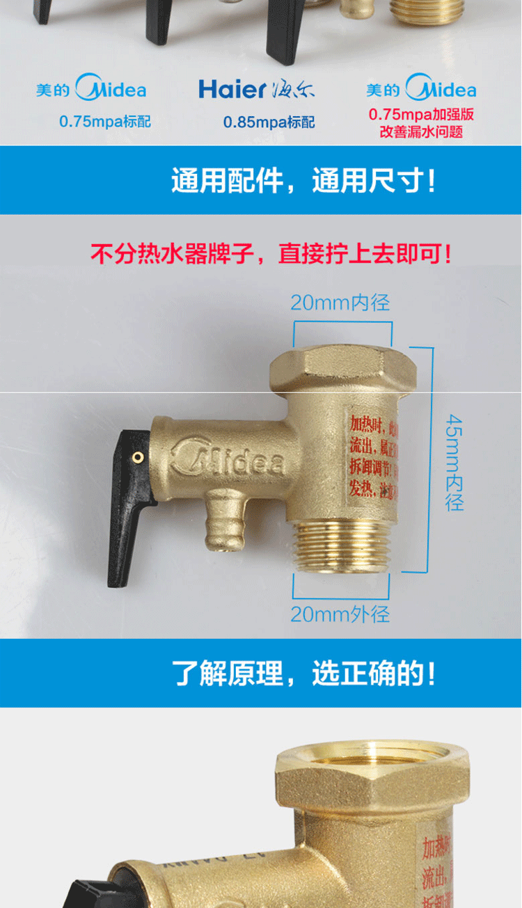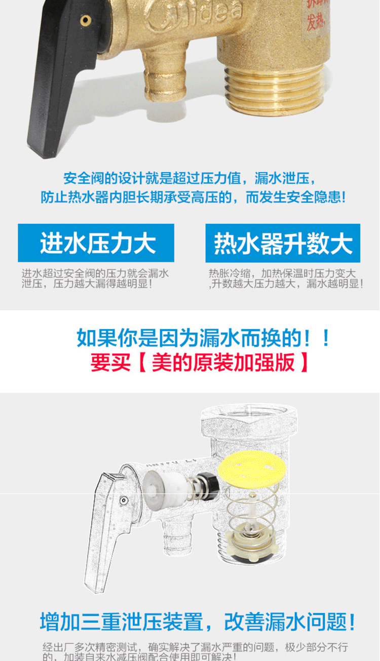 It is suitable for Midea/Midea original all-copper safety valve pressure relief valve one-way 0.75M electric water heater universal accessories Midea enhanced version (optional for water leakage)