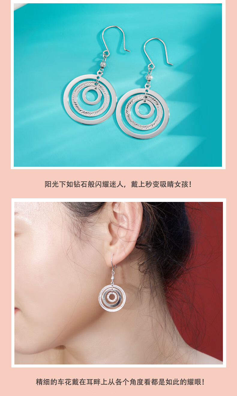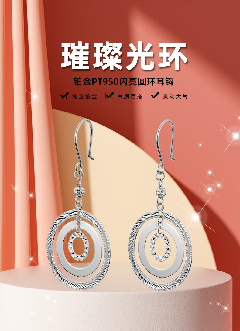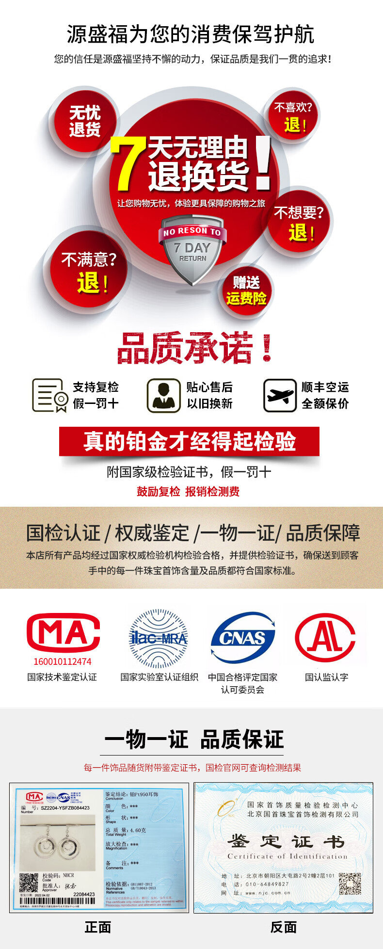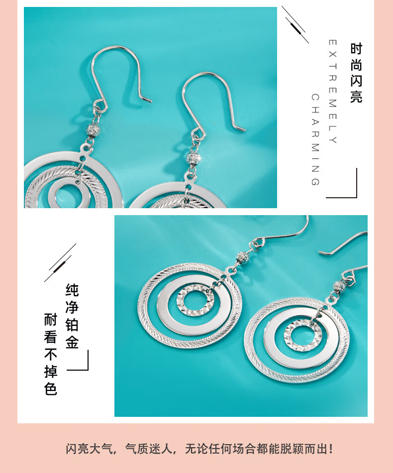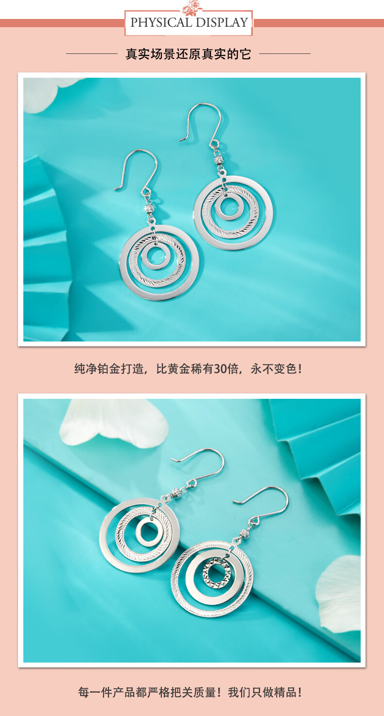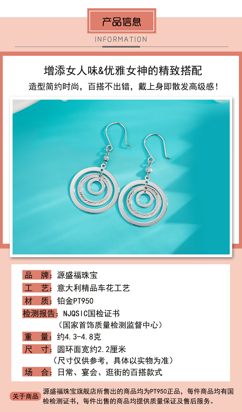 Yuan Shengfu's new PT950 boutique fashion ring platinum ear hooks shiny versatile platinum round earrings 5.00g
