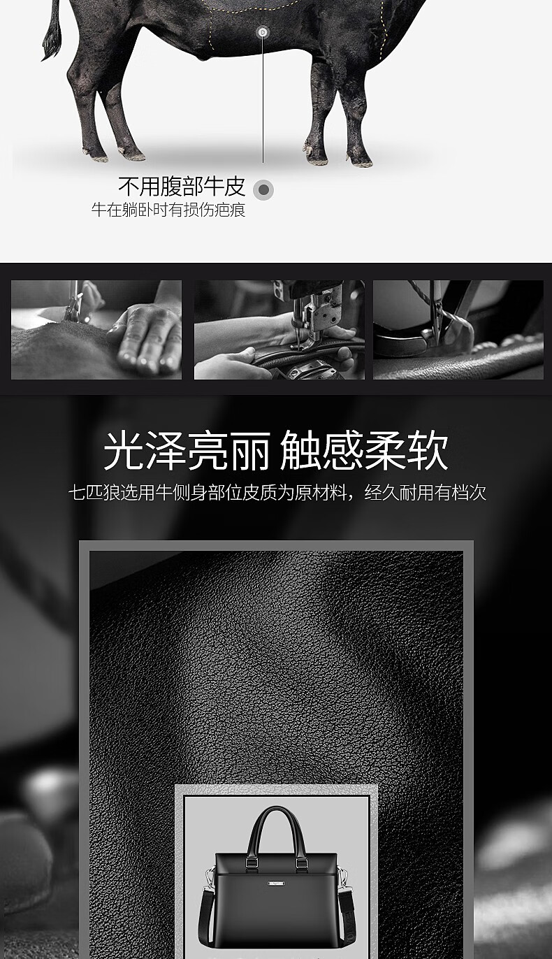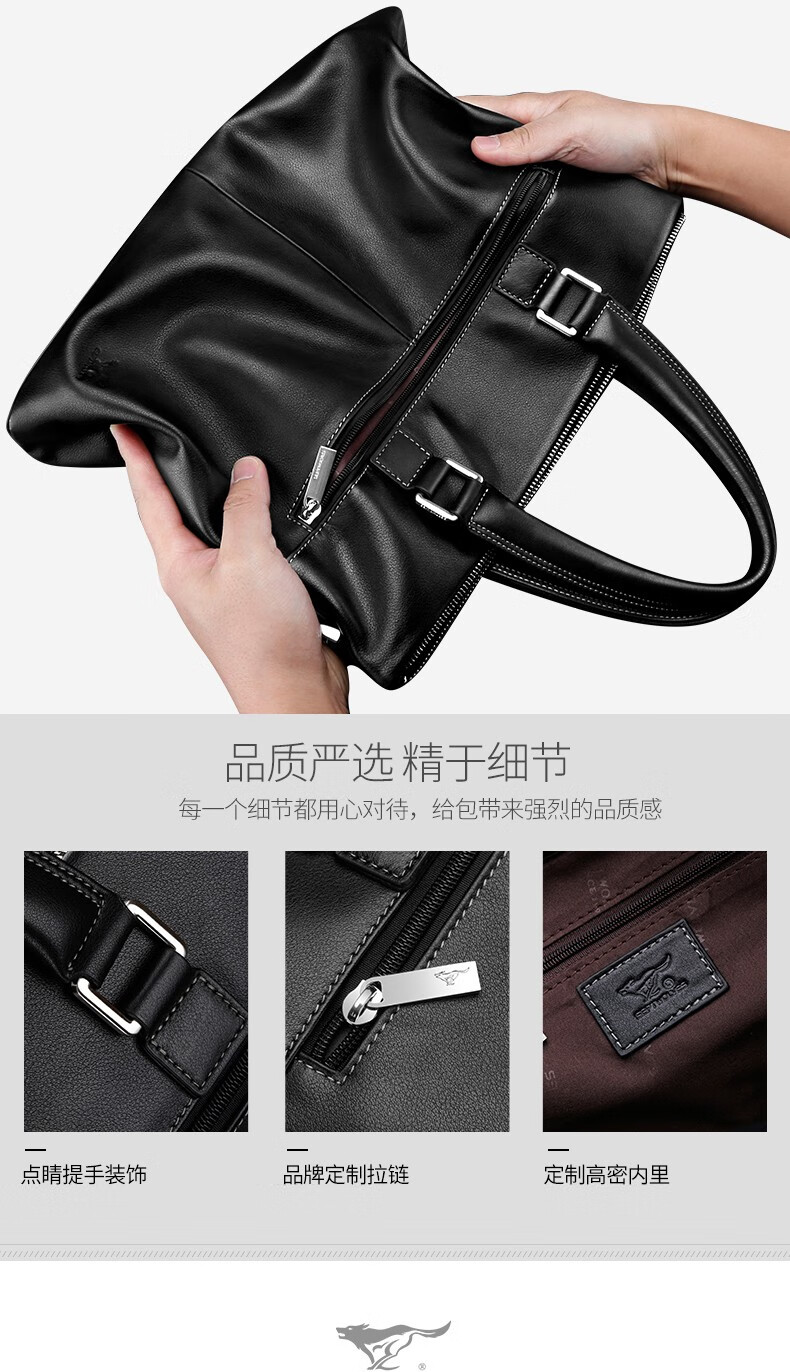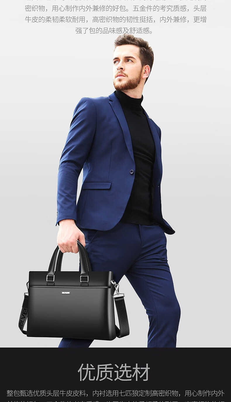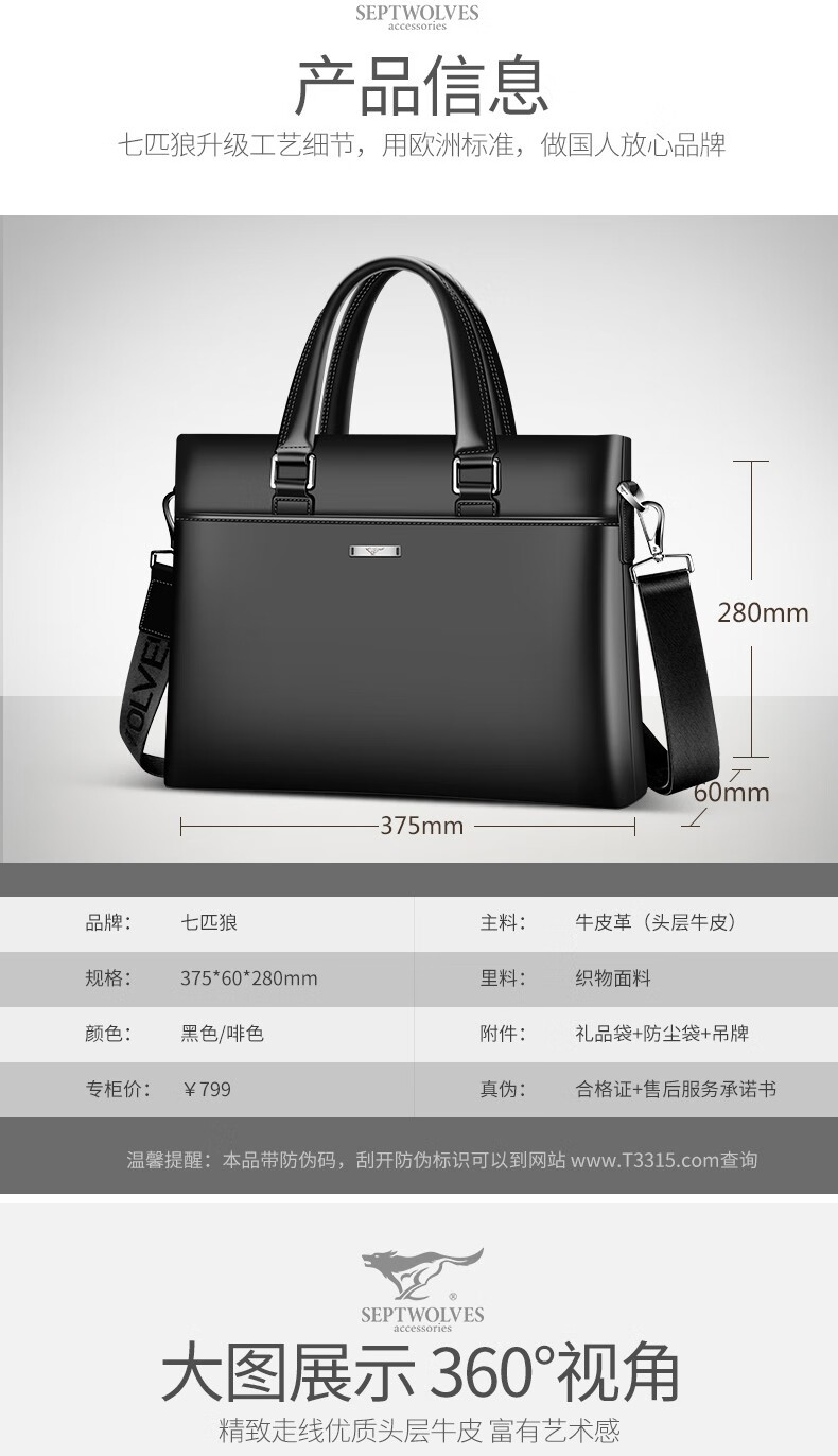 Septwolves Briefcase Men's Genuine Leather Handbag Business Casual First Layer Cowhide Crossbody Bag Chinese Valentine's Day Gift for Boyfriend Black