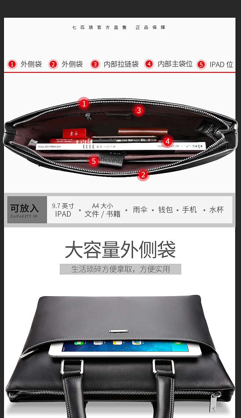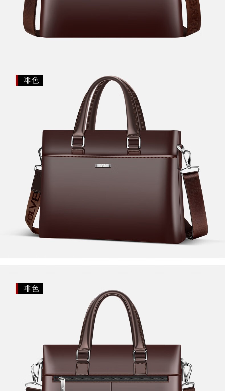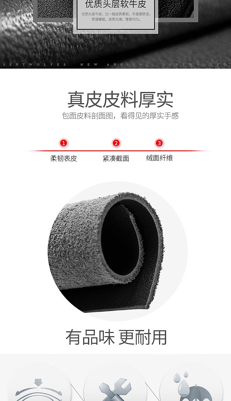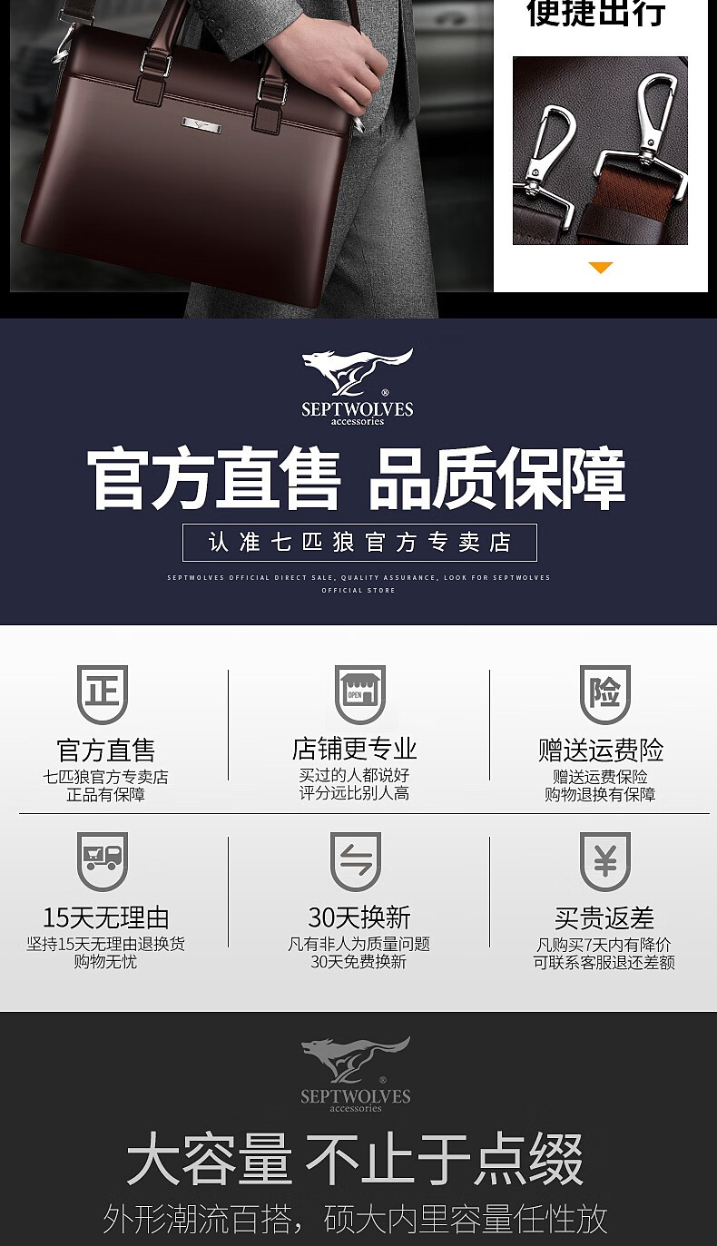Septwolves Briefcase Men's Genuine Leather Handbag Business Casual First Layer Cowhide Crossbody Bag Chinese Valentine's Day Gift for Boyfriend Black