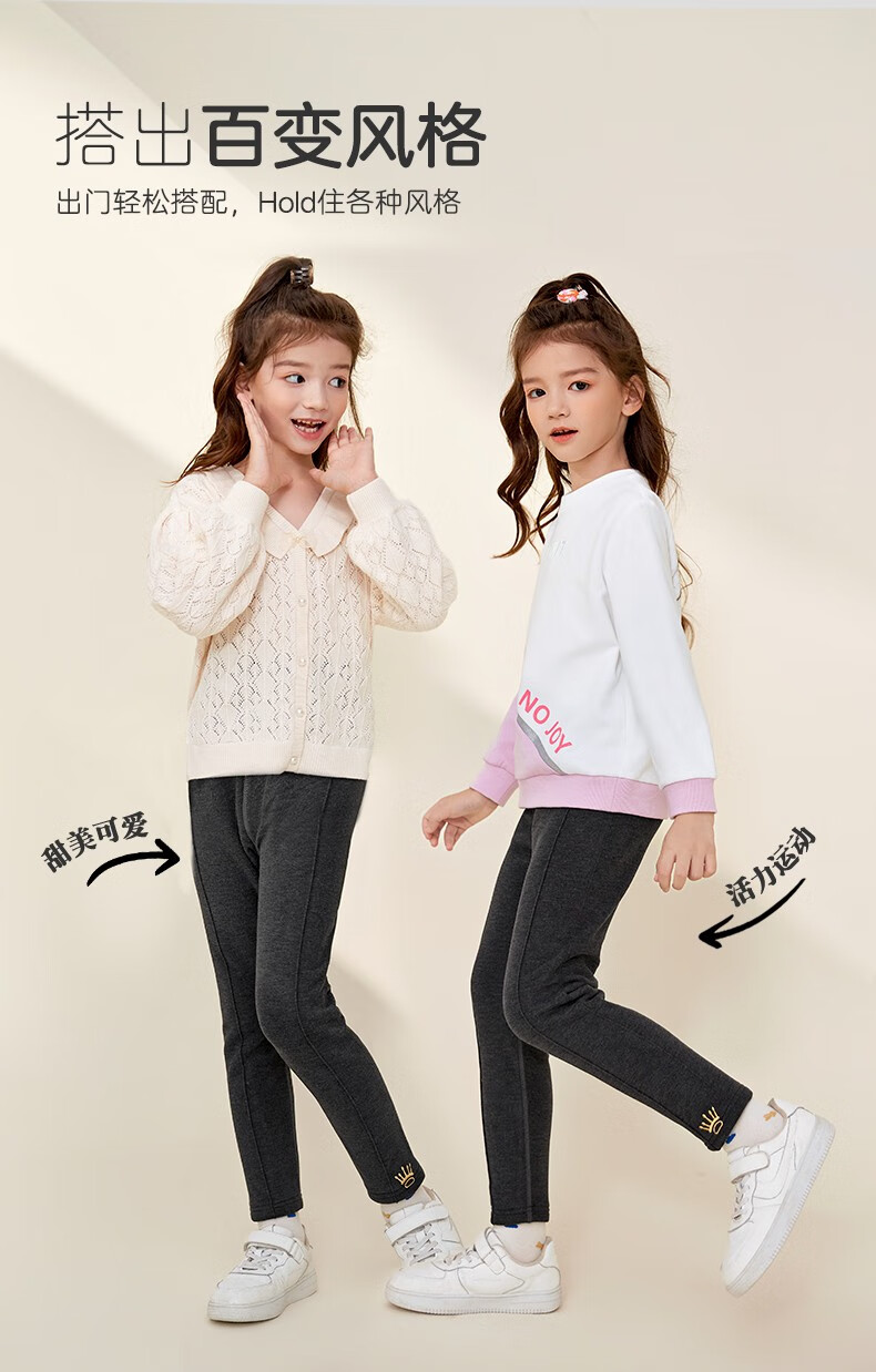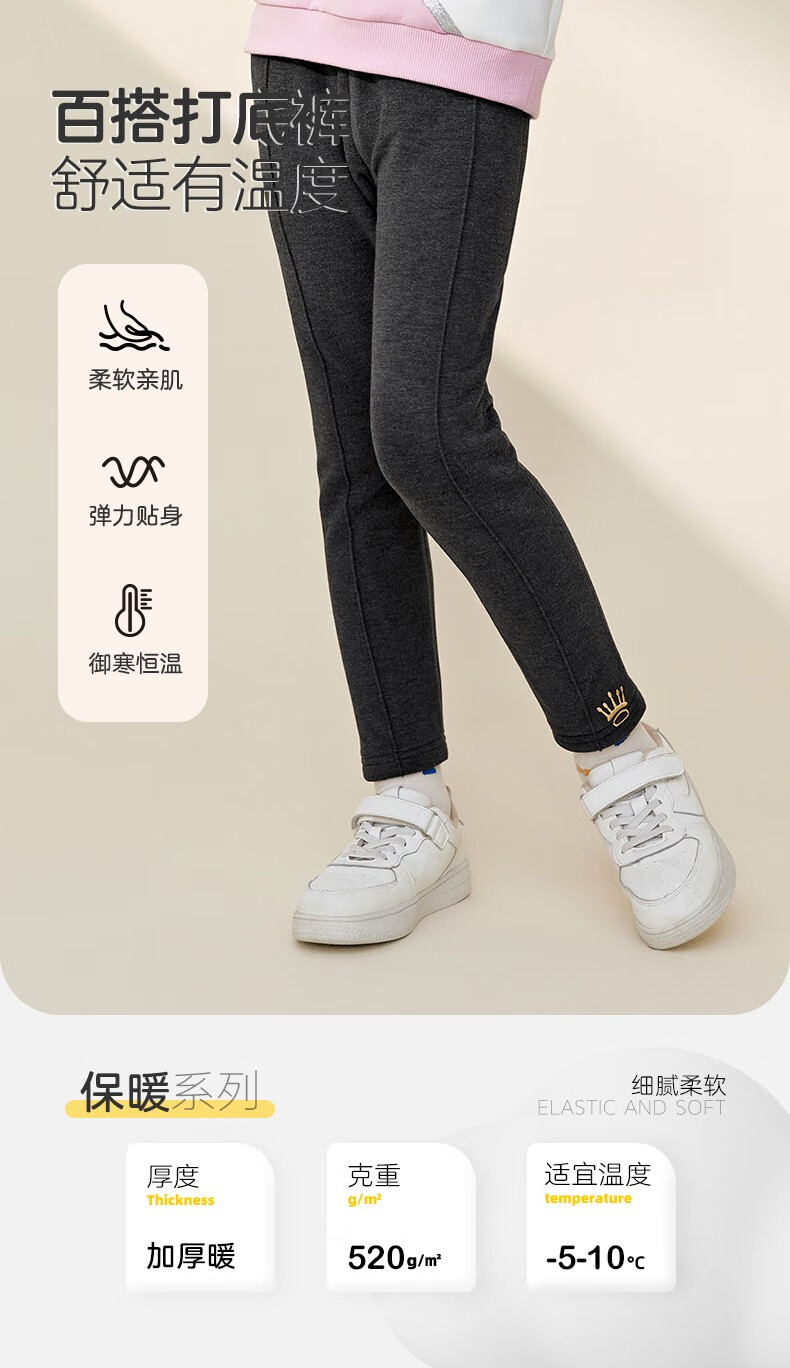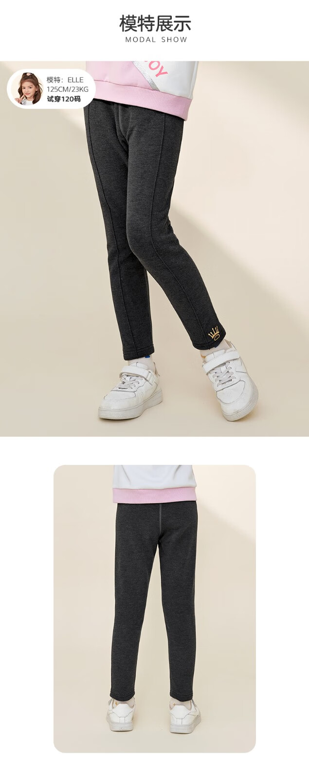 Inbolen's new children's velvet thermal pants for girls in autumn and winter little girls thickened slim trousers cotton pants 85450 black 130