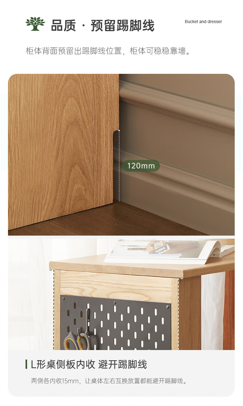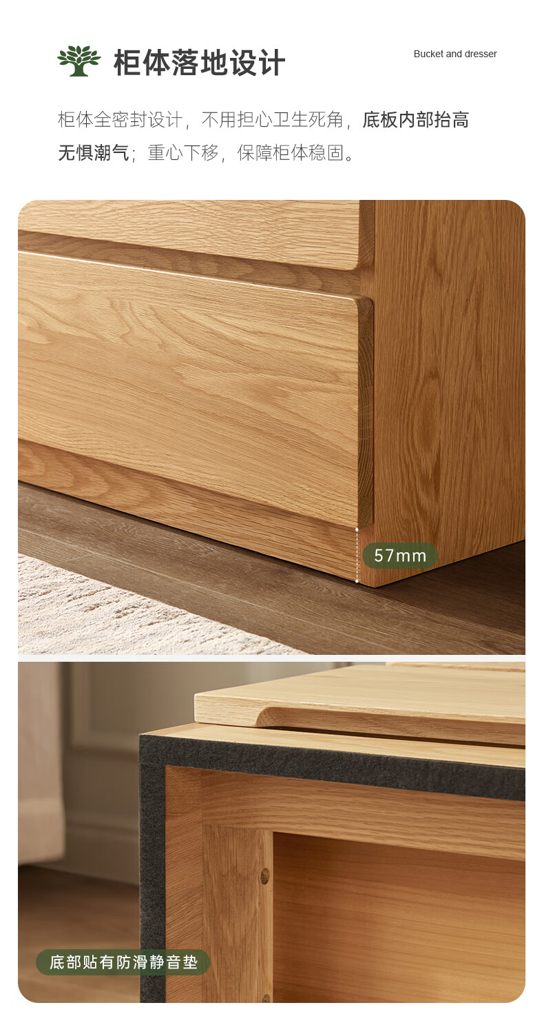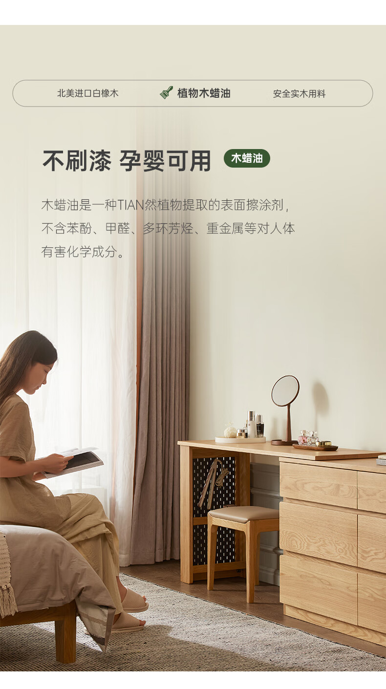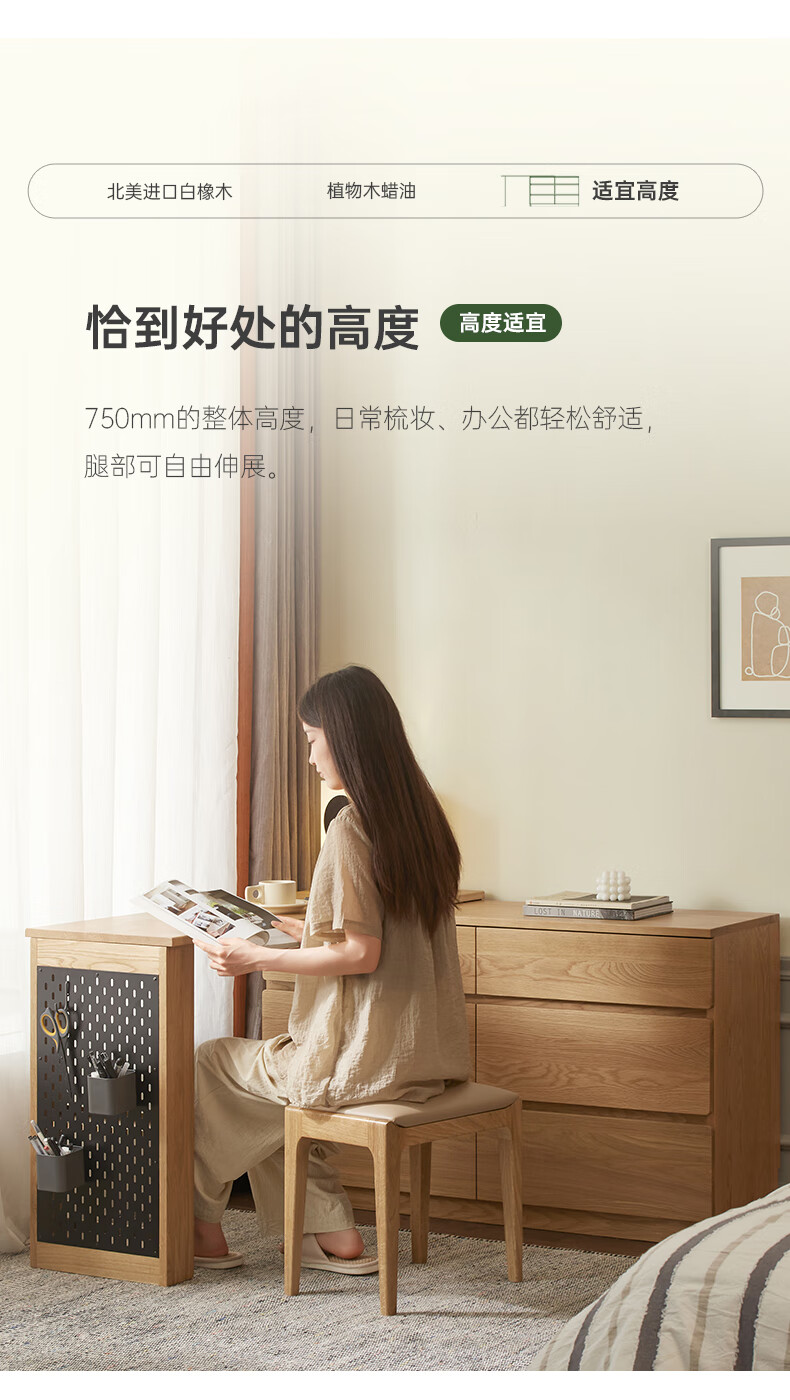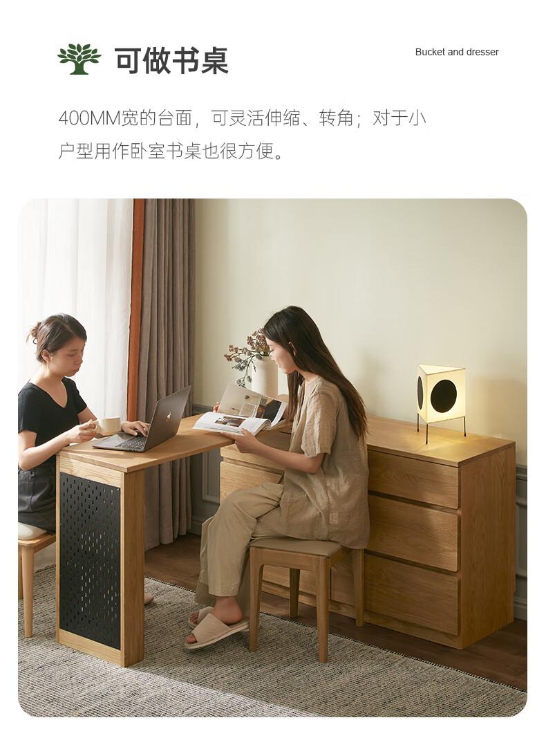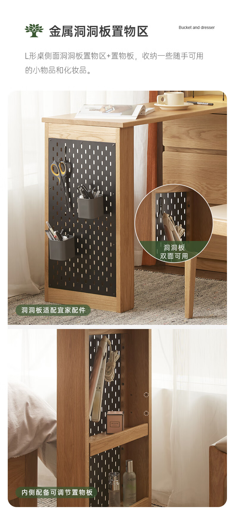 Original elements all solid wood drawer cabinet dresser white oak one-piece multifunctional floor-standing storage cabinet dressing table M2031 wide six drawers + L table without stool - white oak