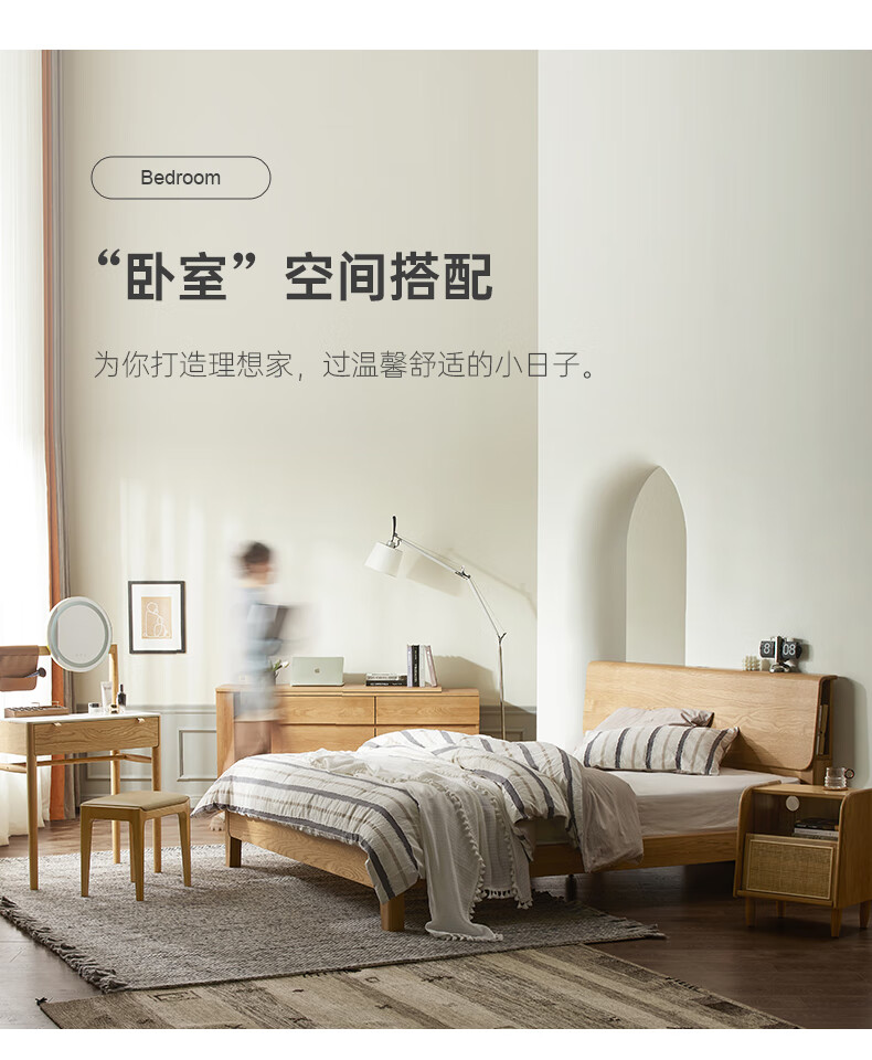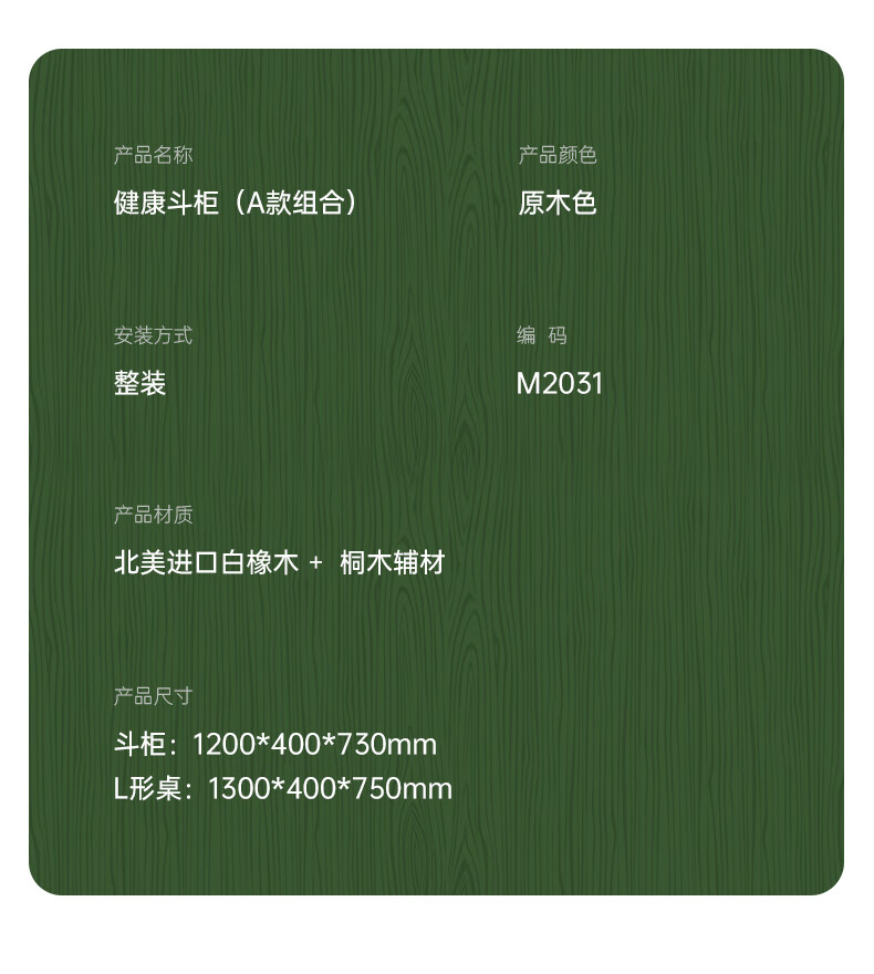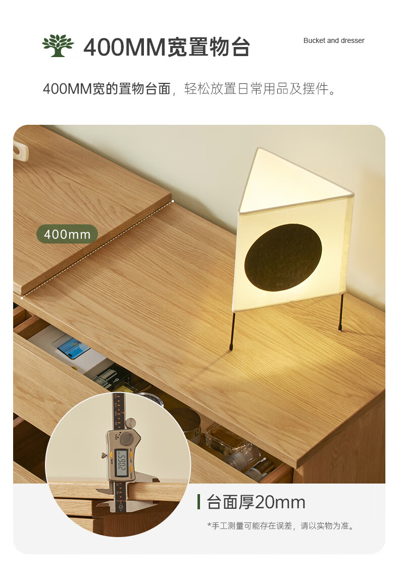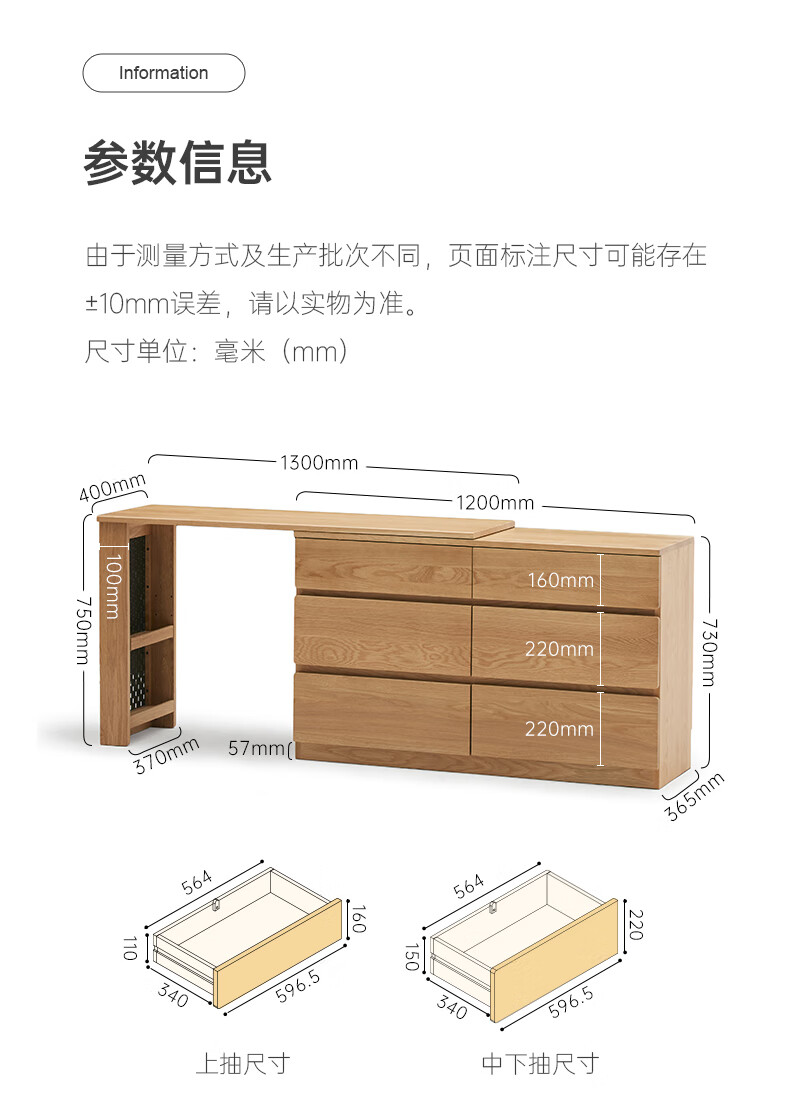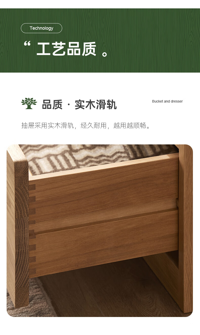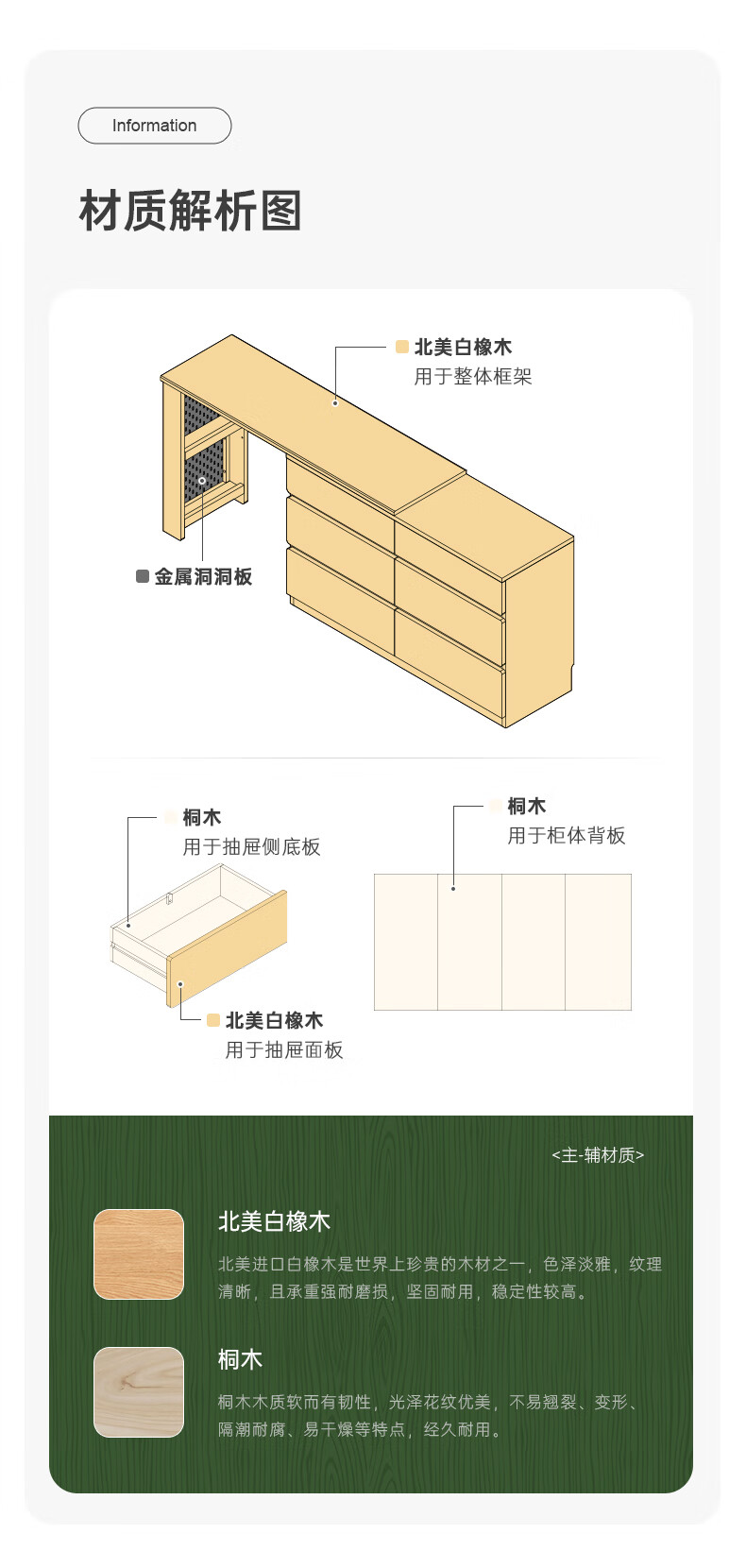 Original elements all solid wood drawer cabinet dresser white oak one-piece multifunctional floor-standing storage cabinet dressing table M2031 wide six drawers + L table without stool - white oak