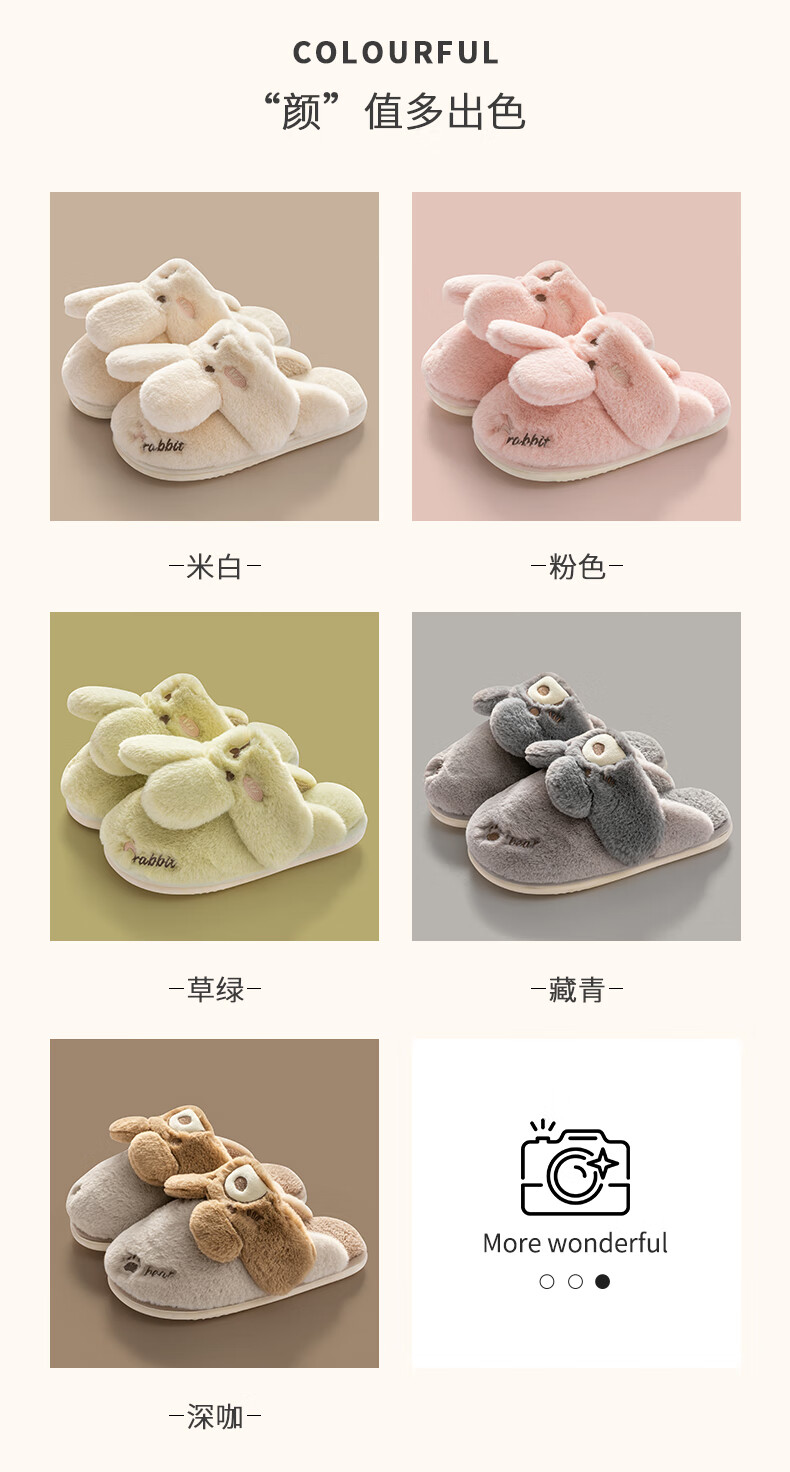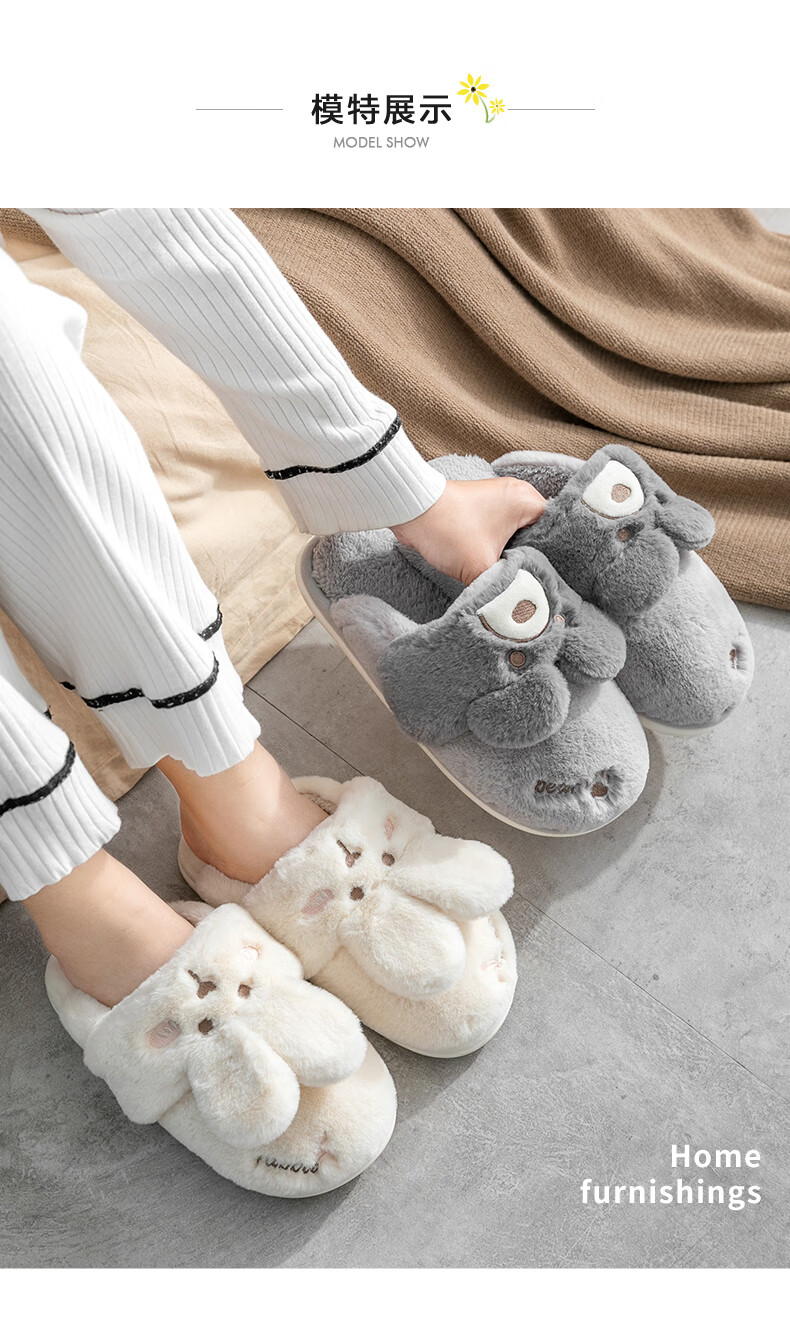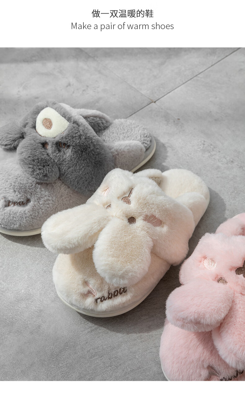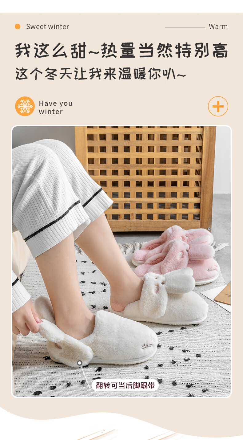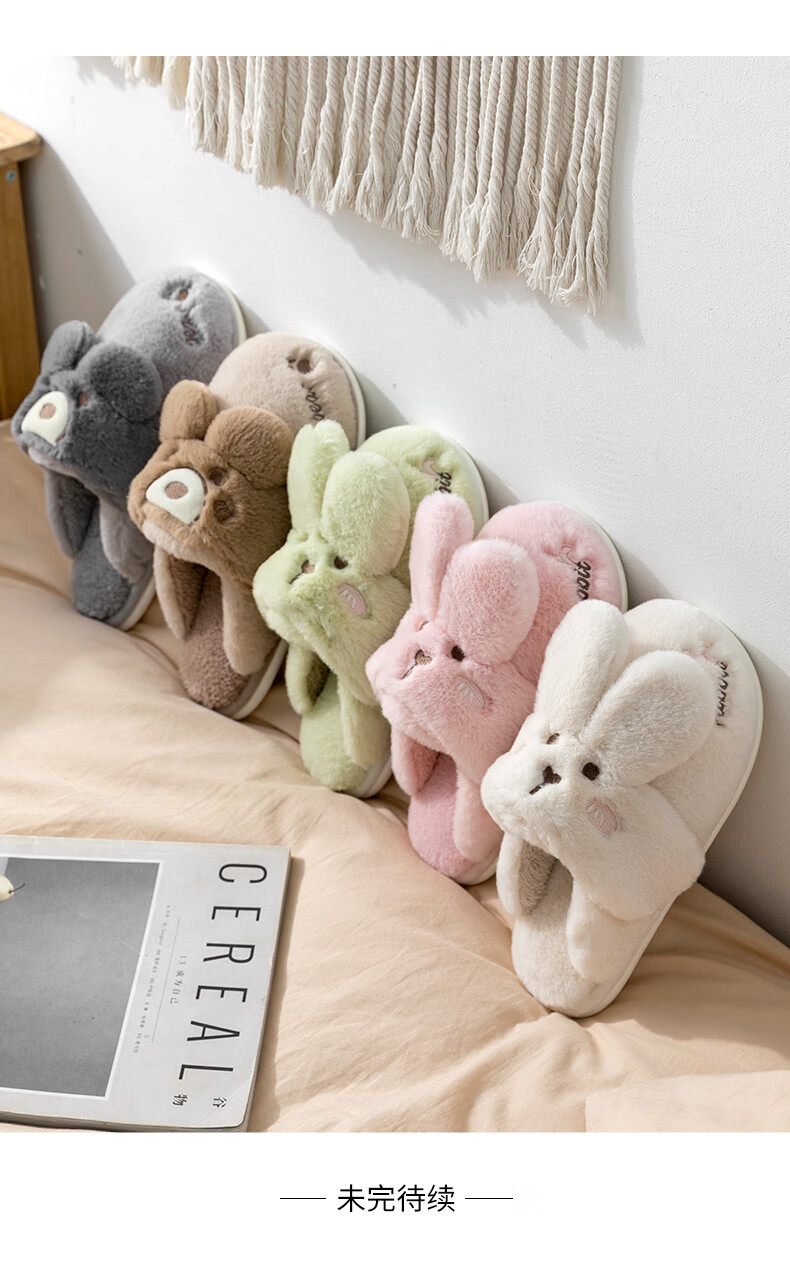 Weiji big children's cotton slippers for girls in autumn and winter, warm and cute rabbit indoor parent-child plush bag and cotton slippers for children and girls, off-white 36-37, suitable for sizes 35-36