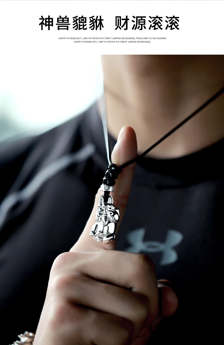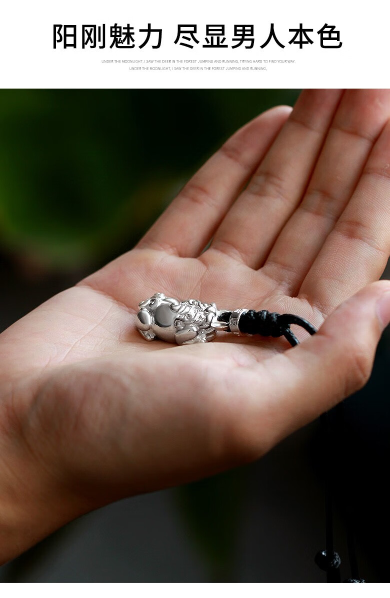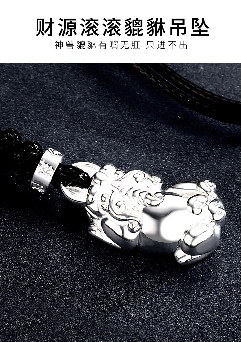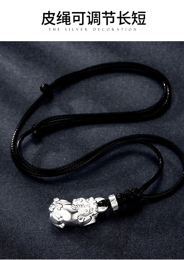 Love pure silver pendant for men solid Pixiu 990 pure silver necklace Chinese style birthday gift for husband Wealth Pixiu pendant + wax rope