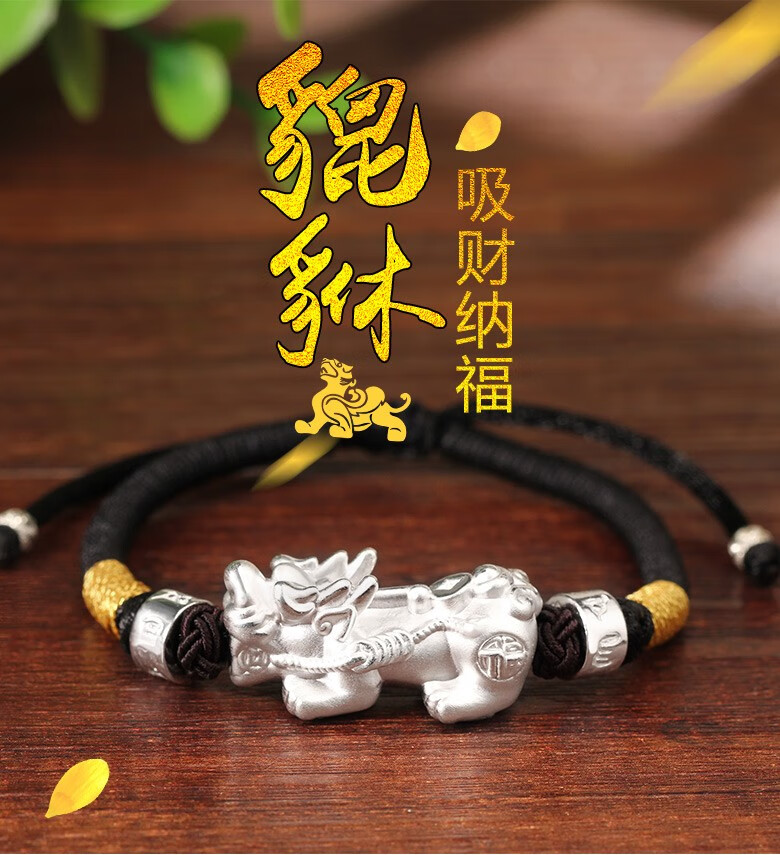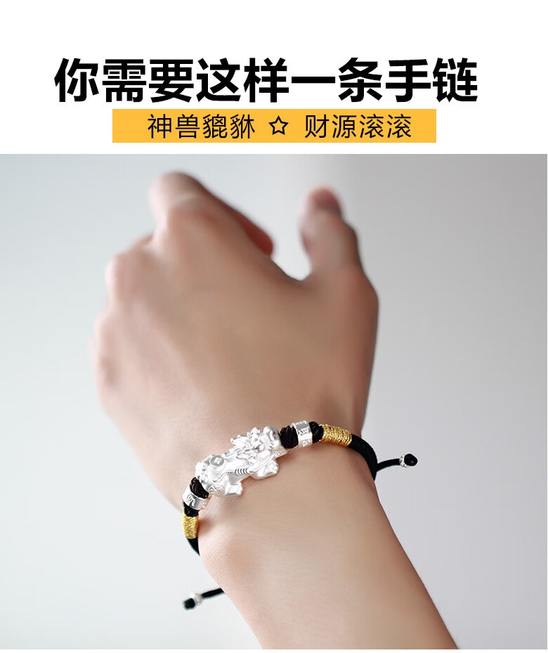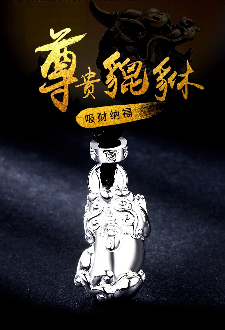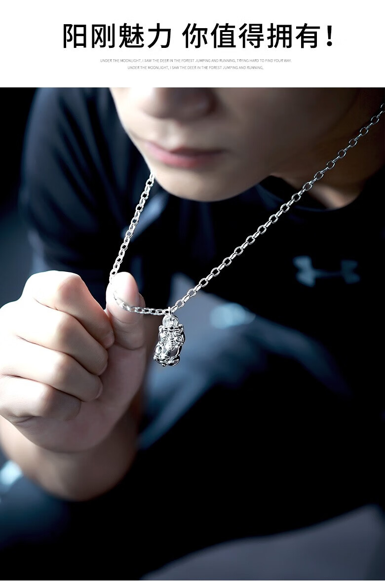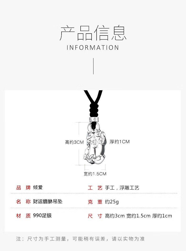 Love pure silver pendant for men solid Pixiu 990 pure silver necklace Chinese style birthday gift for husband Wealth Pixiu pendant + wax rope