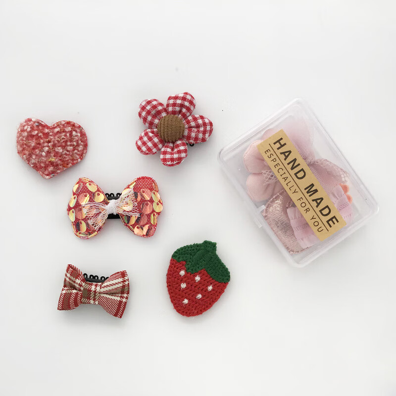 Duti baby hair clip, hair clip for small hair, baby hair clip, fetal hair clip for girls, cute all-inclusive cloth baby 16# flat clip, red strawberry