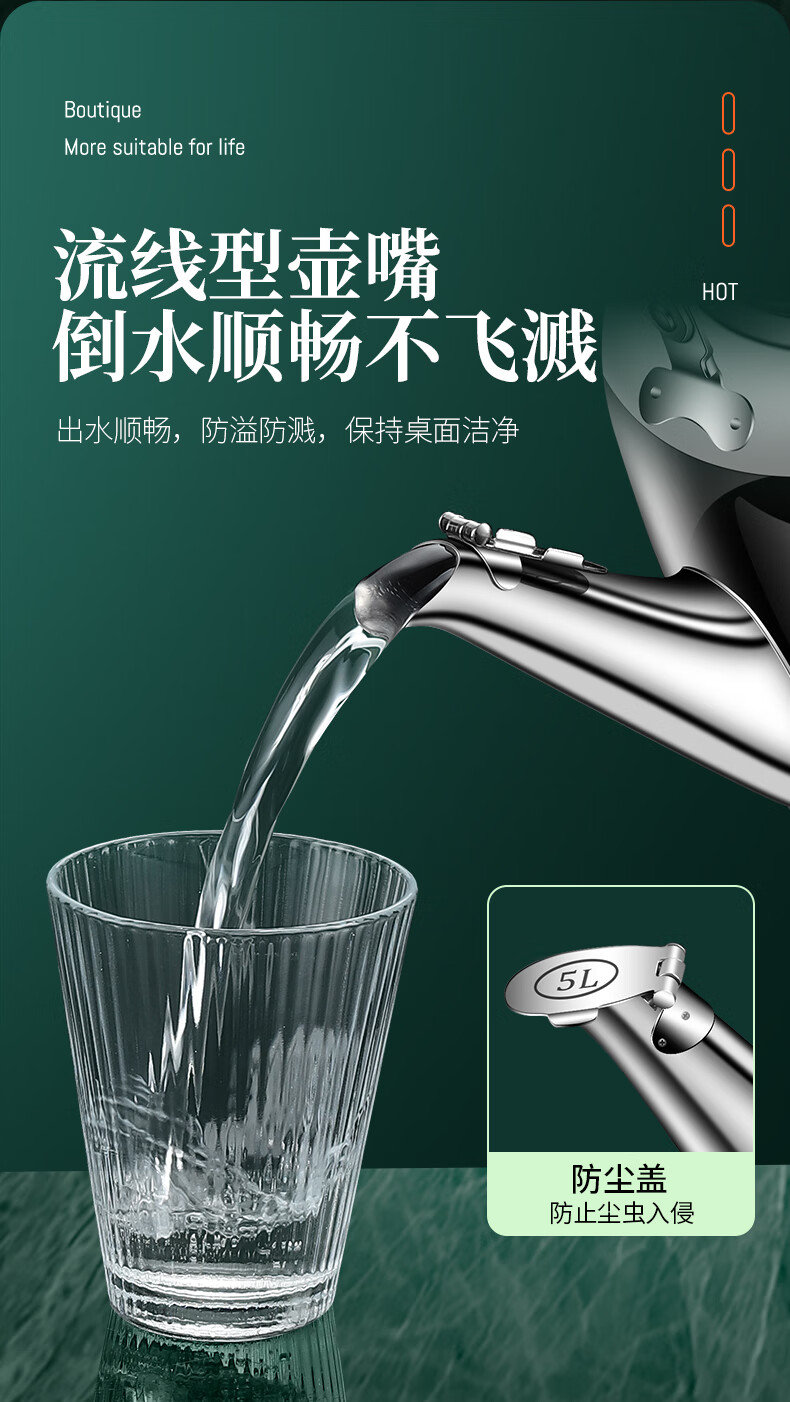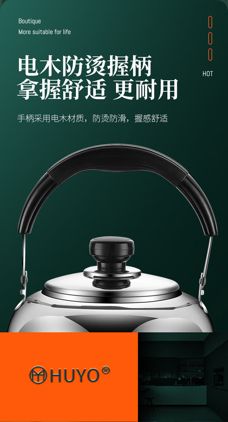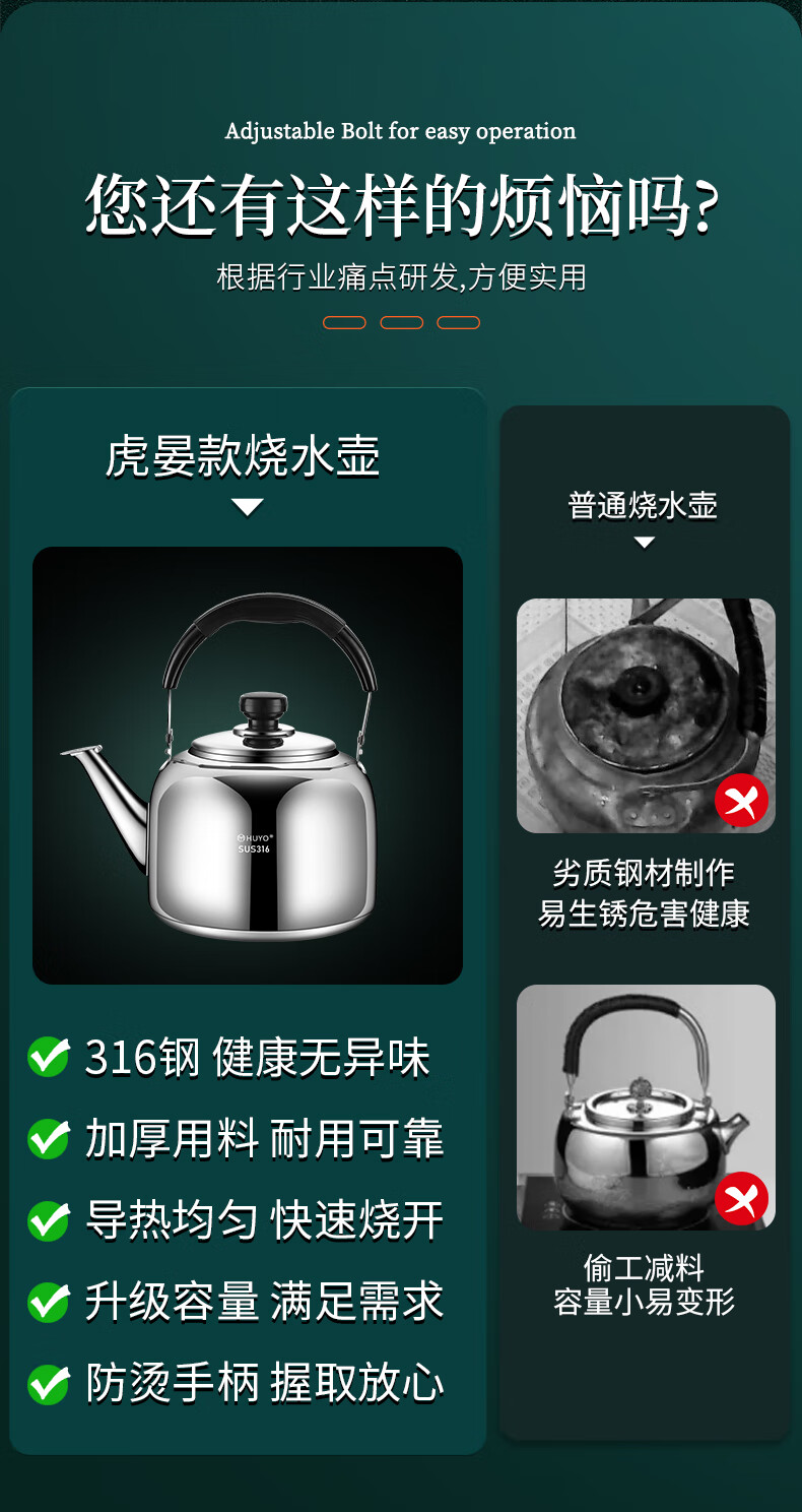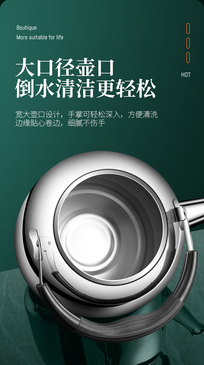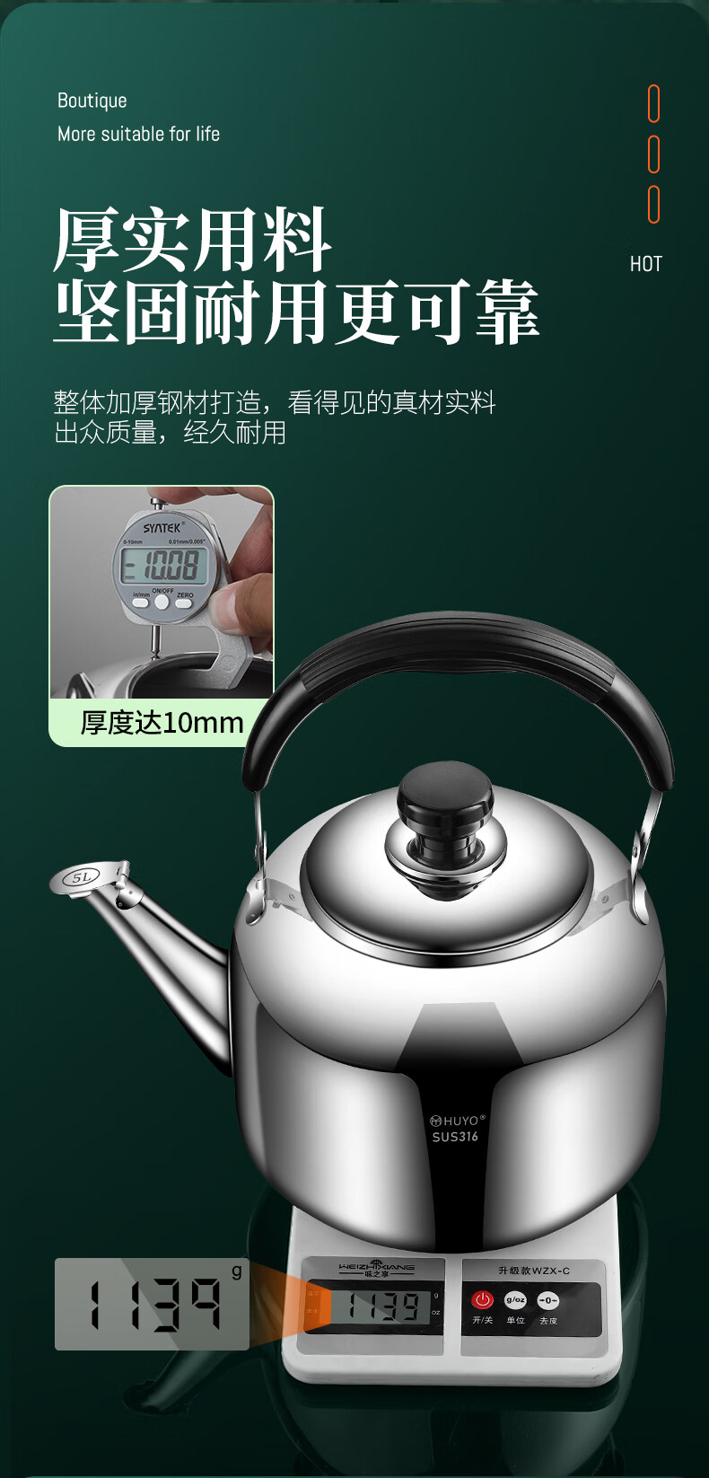HUYO food grade 316 stainless steel kettle large capacity household open flame hot water kettle gas induction cooker old-fashioned tea kettle antibacterial 316 steel kettle water boiling sound 5L