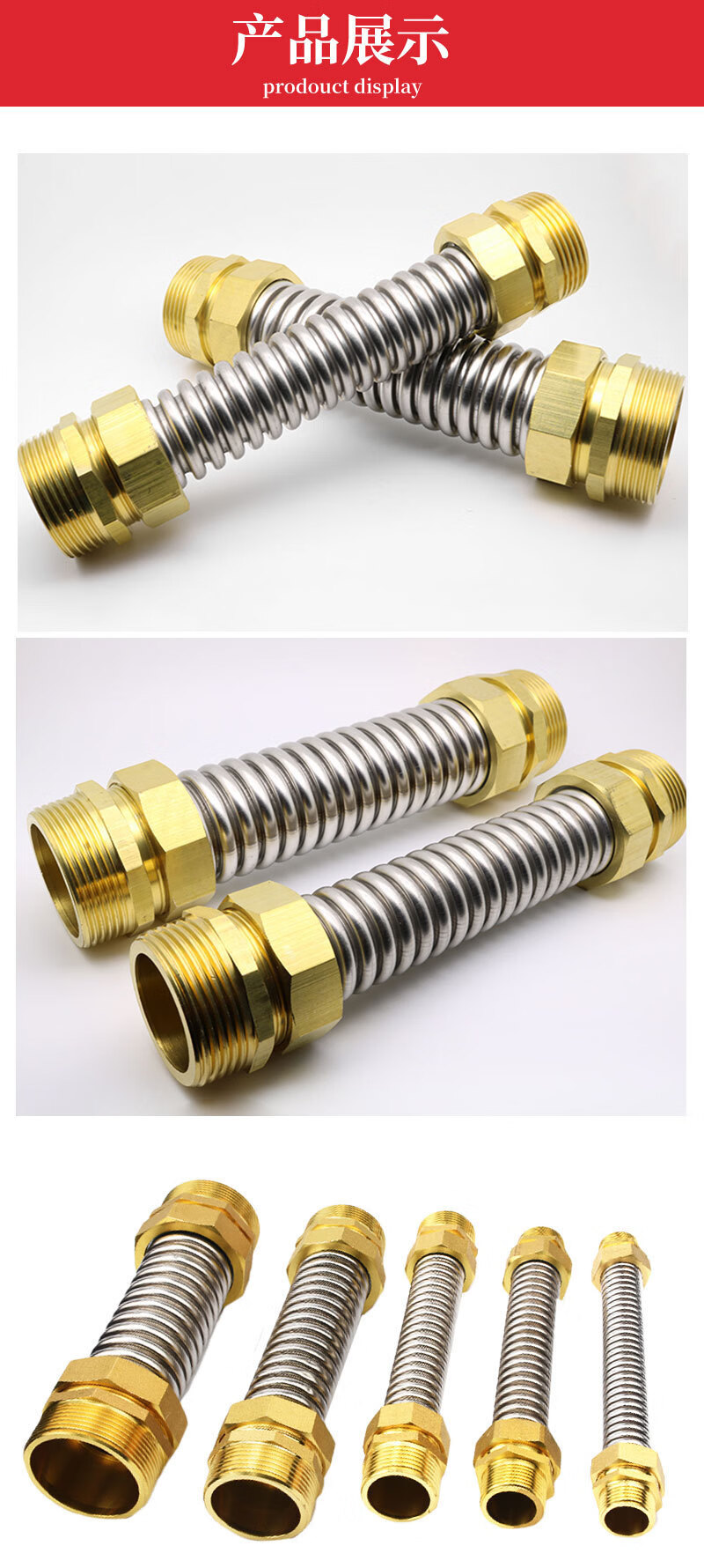 SEHFM direct selling 304 stainless steel corrugated pipe soft joint iron head copper head air conditioning metal soft joint corrugated soft joint copper head DN40*200mm