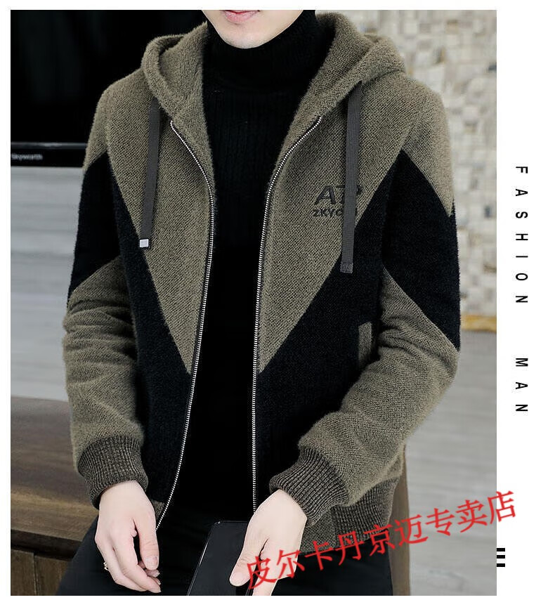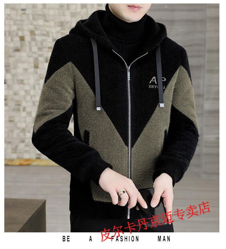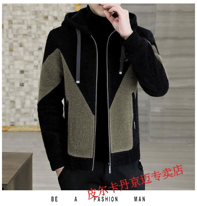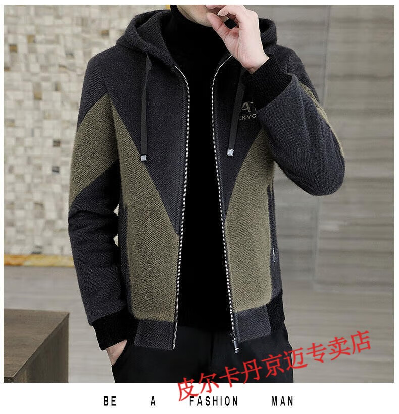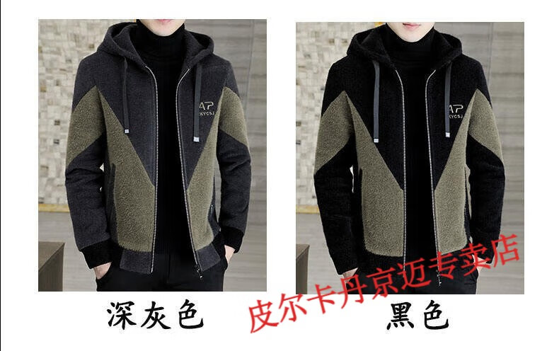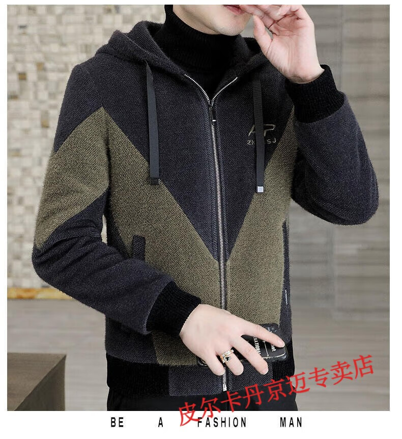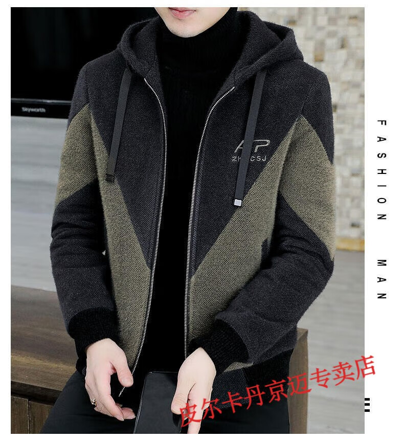 Pierre Cardin brand men's autumn and winter woolen coat men's hooded jacket men's tops plus velvet thickened woolen jacket for men black XL