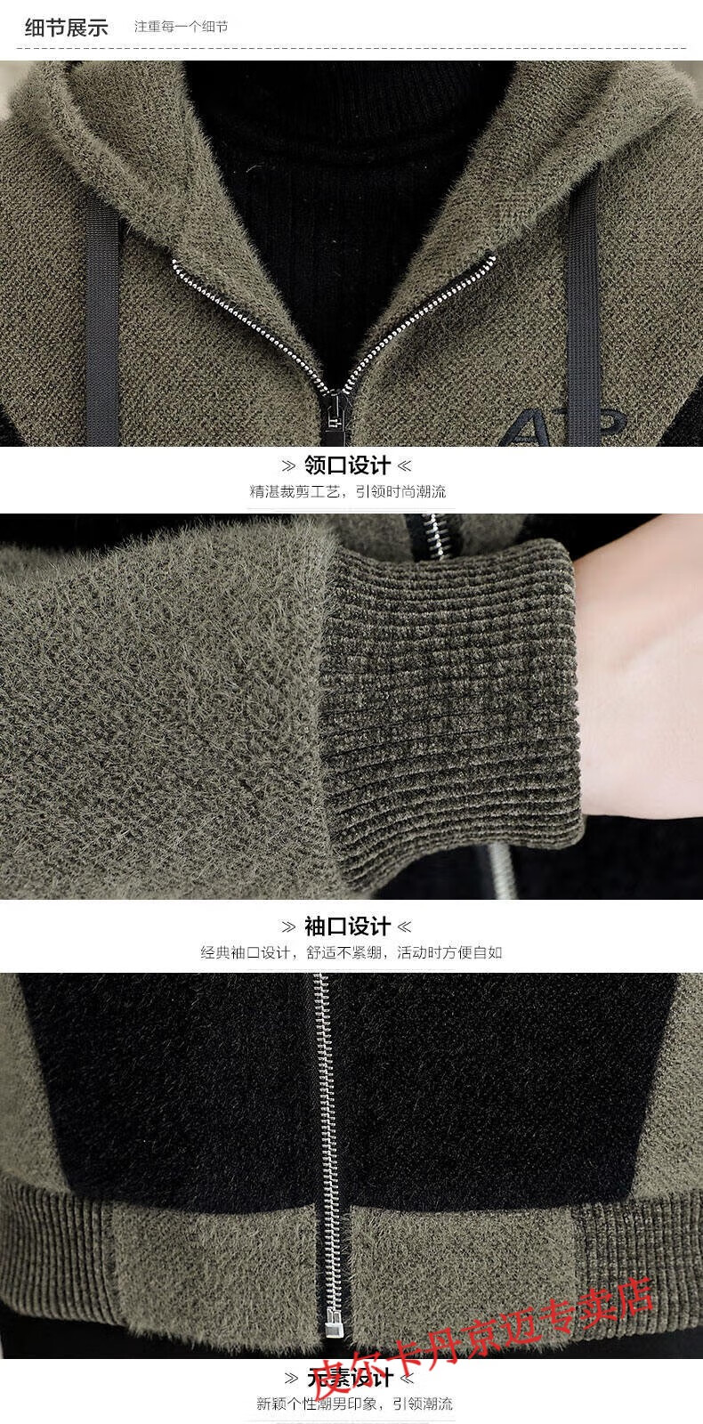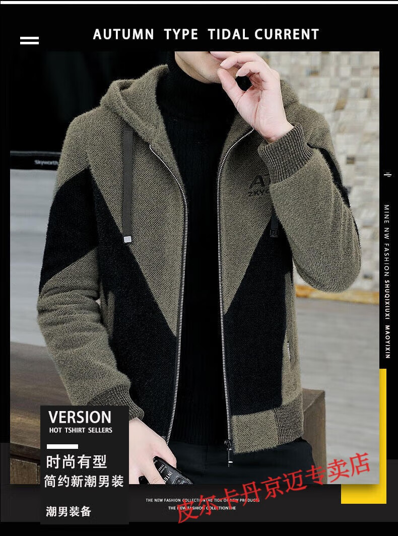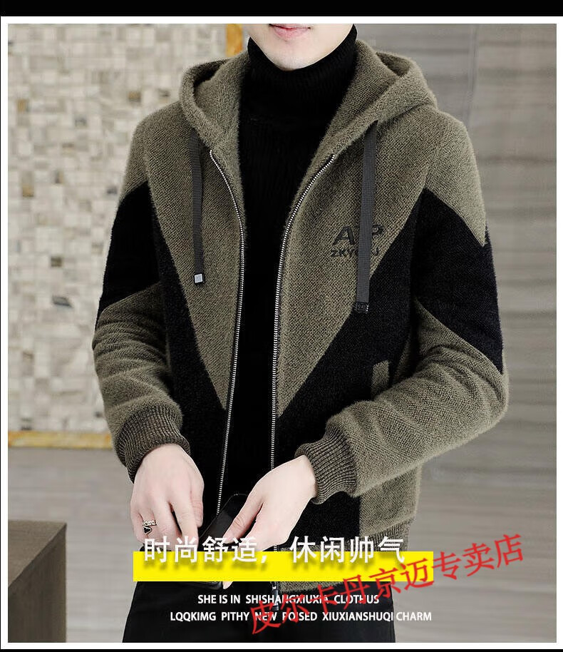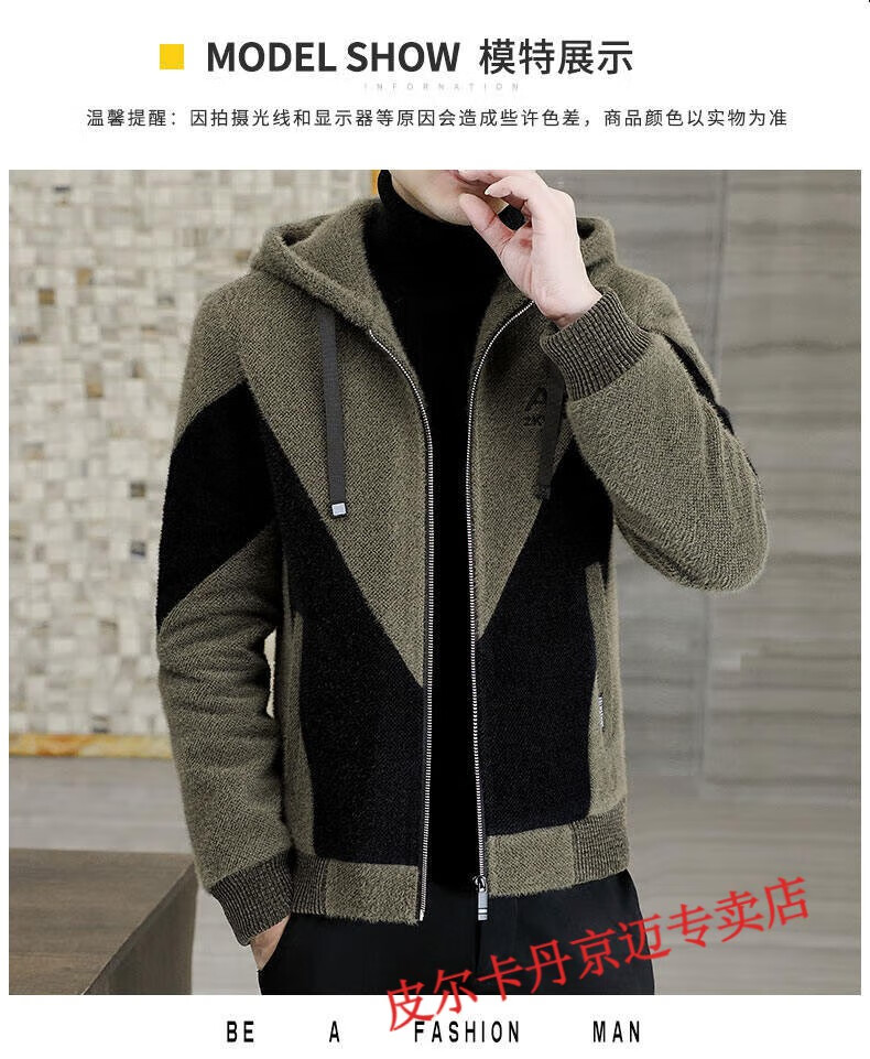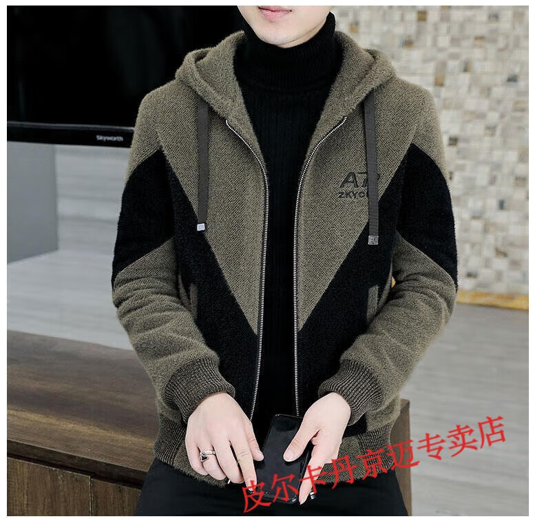Pierre Cardin brand men's autumn and winter woolen coat men's hooded jacket men's tops plus velvet thickened woolen jacket for men black XL