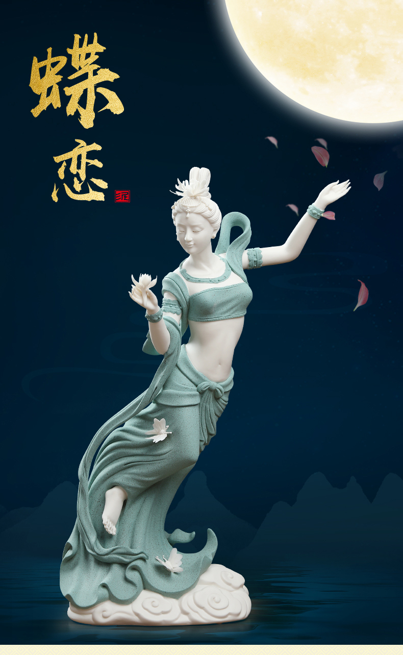 Oriental Clay <Die Lian> Ornaments Ceramic Figures and Beauty Sculptures Crafts Living Room Wine Cabinet Decorations D52-302F Die Lian (Small Size) Colored Sand Red