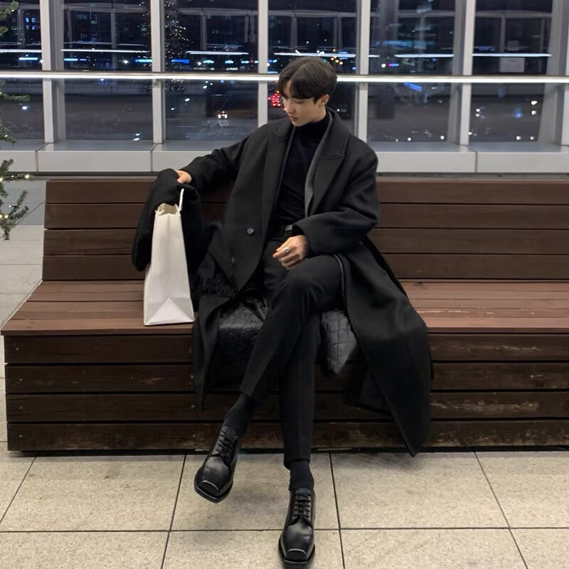 Yisichen Black Warrior cityboy Cthulhu windbreaker men's German-style coat winter thickened Korean long woolen coat black L