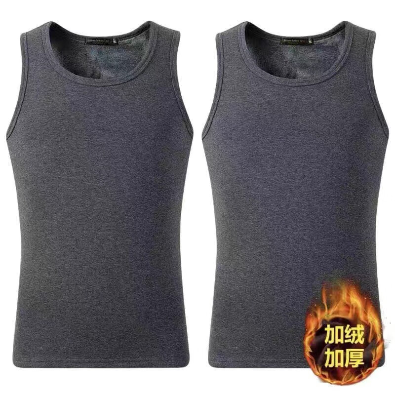 Cexi thermal vest men's underwear vest solid color plus velvet thickened winter vest base sleeveless underwear to keep warm black + dark gray XL - recommended 110-130Jin Jin is equal to about 0.5 kg