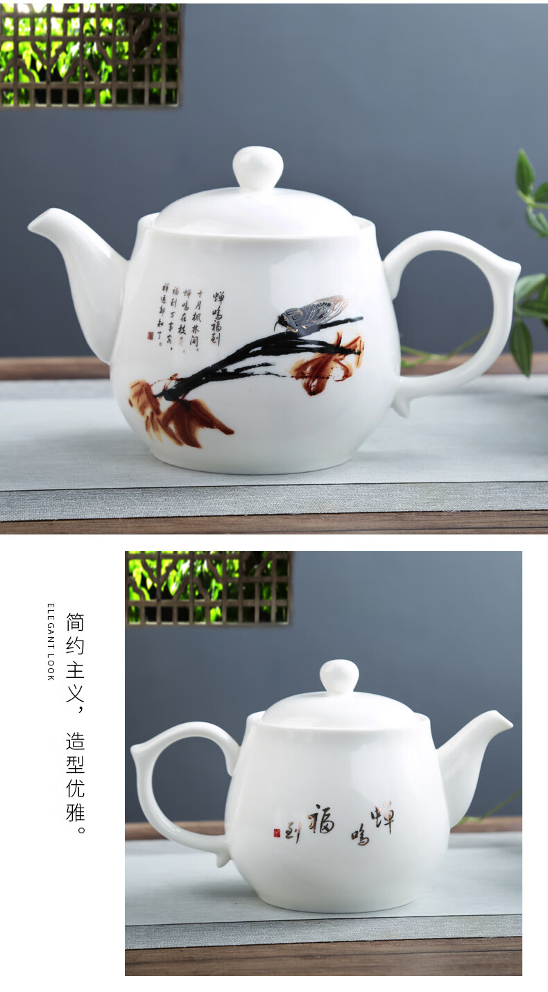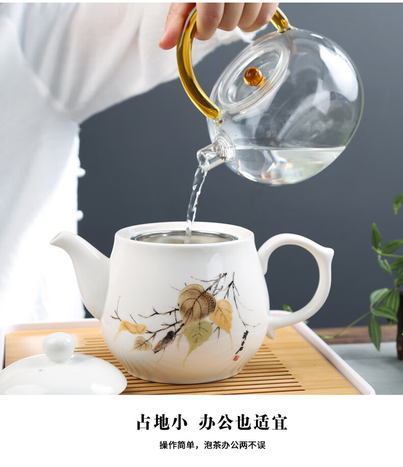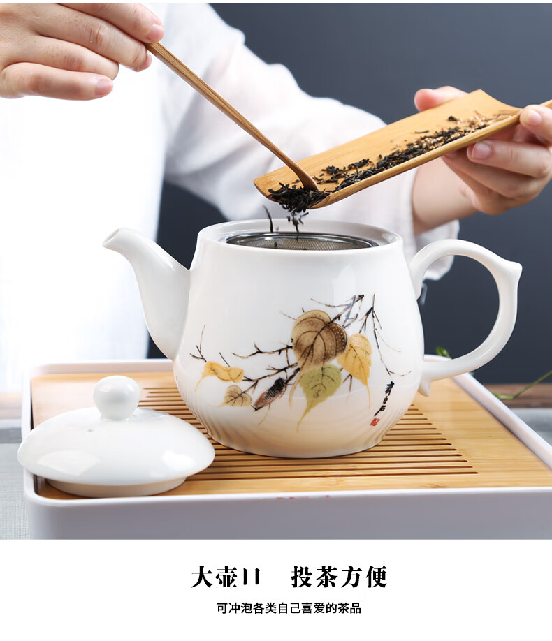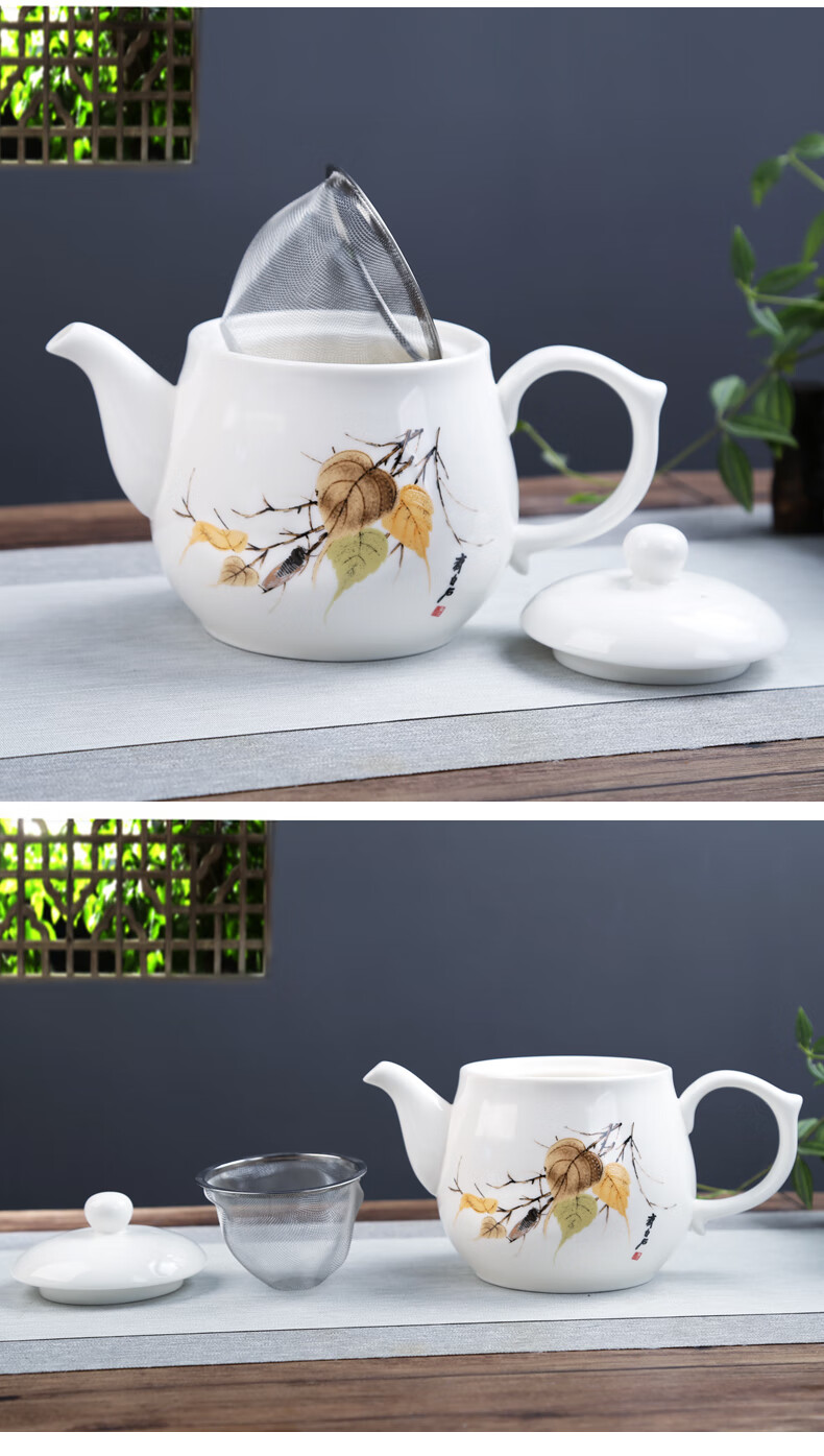 Xiangyan (xiangyan) large-capacity household teapot with filter 1000ml office tea kettle large teapot white porcelain cold kettle Lanxiang