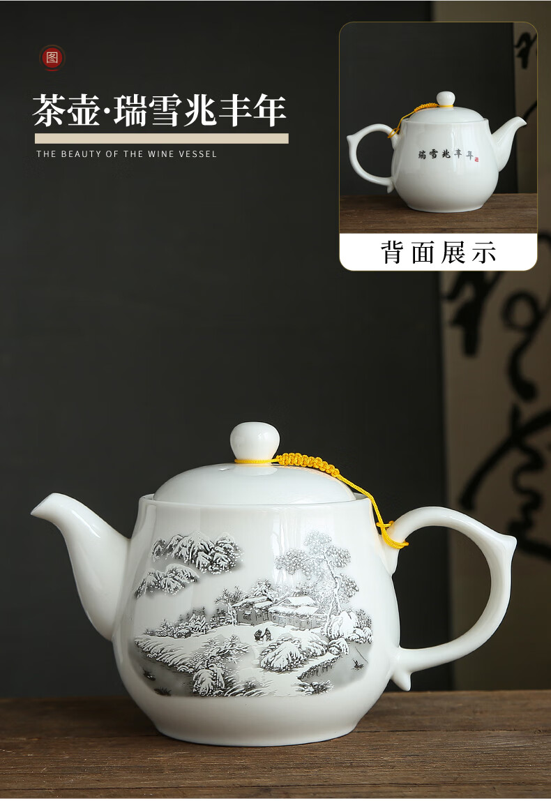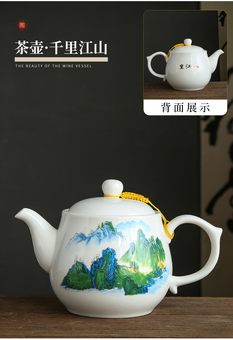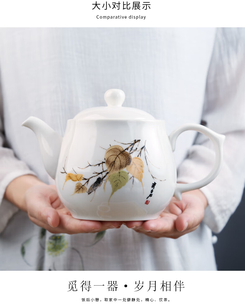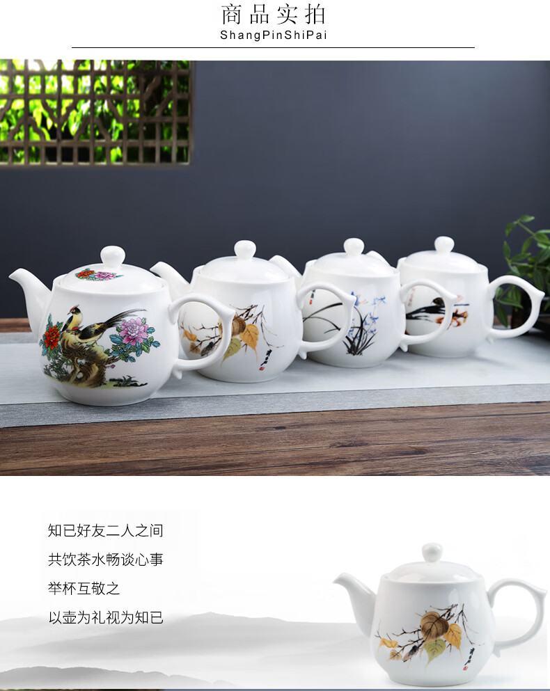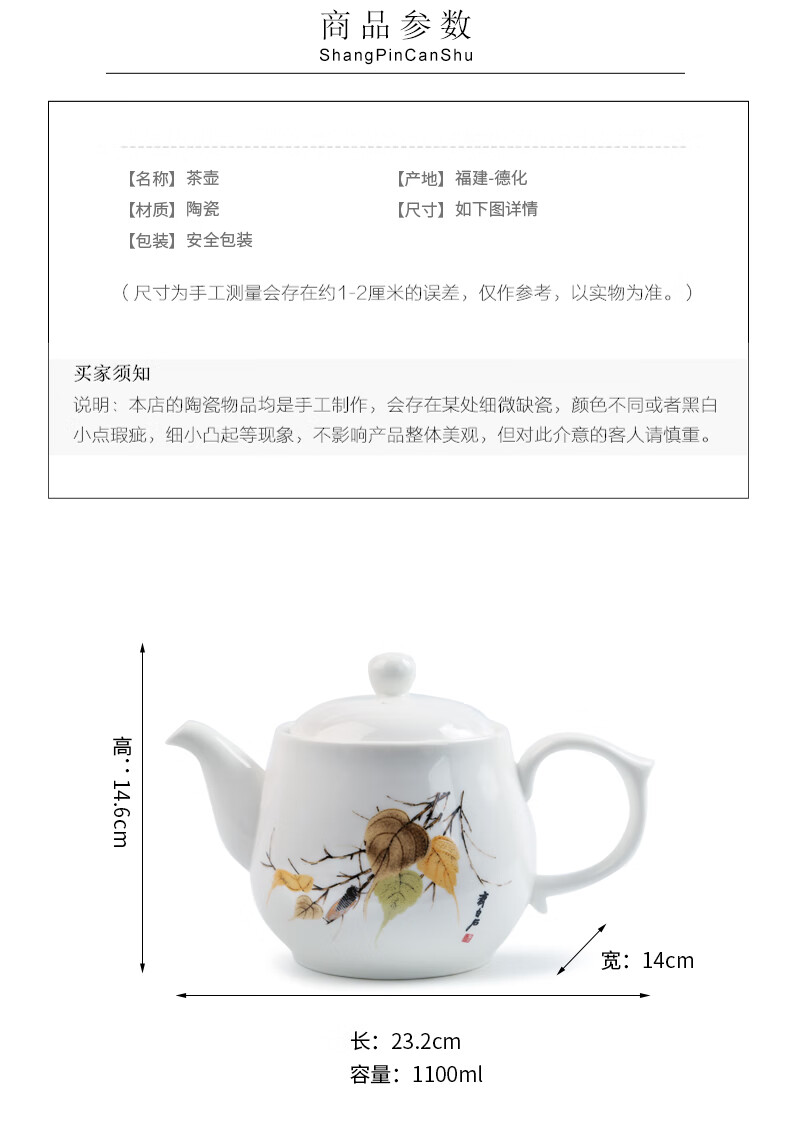 Xiangyan (xiangyan) large-capacity household teapot with filter 1000ml office tea kettle large teapot white porcelain cold kettle Lanxiang