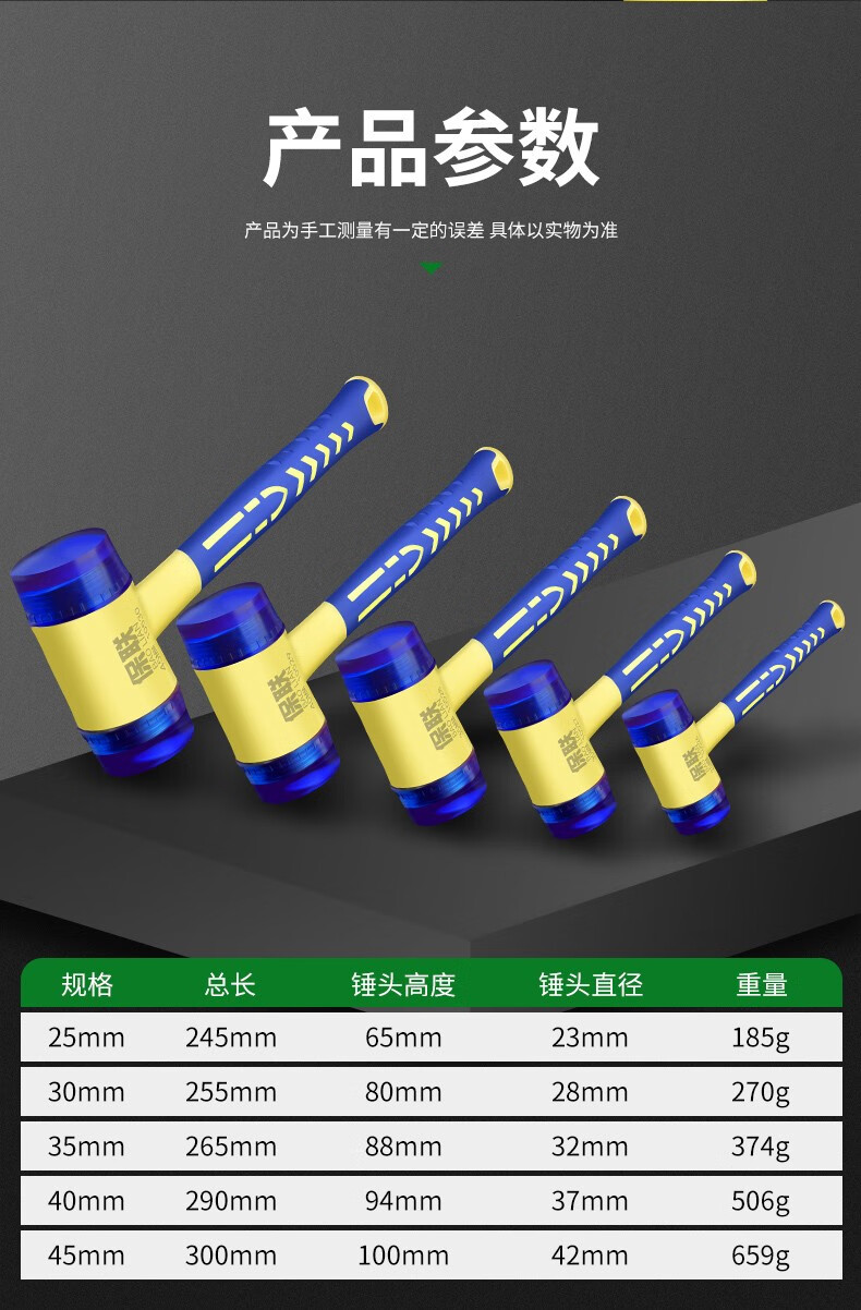 Baolian Rubber Hammer Installation Hammer Elastic Integrated Rubber Hammer Door and Window Woodworking Leather Hammer Elastic Super Hard Multifunctional 30mm Integrated Installation Hammer