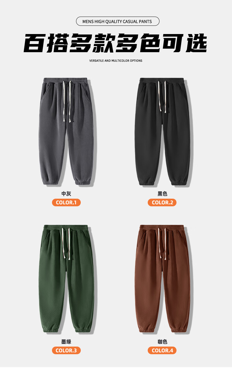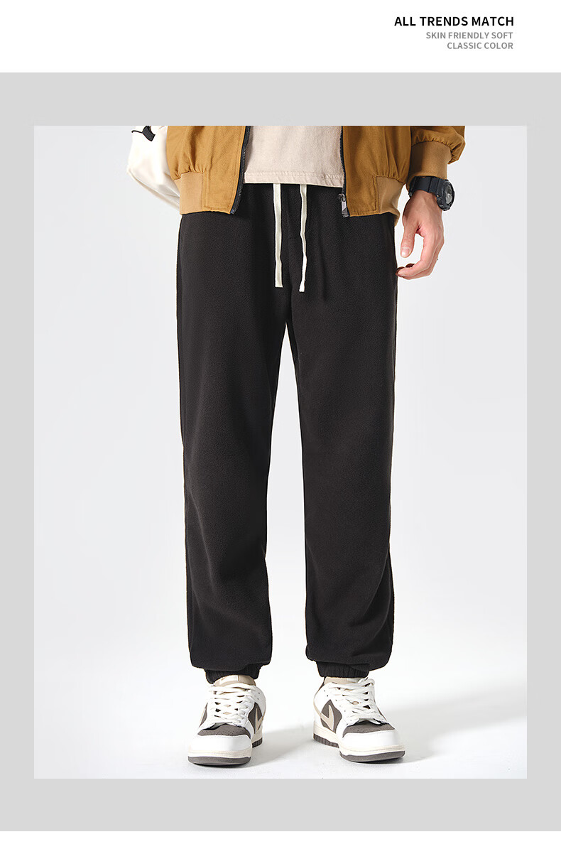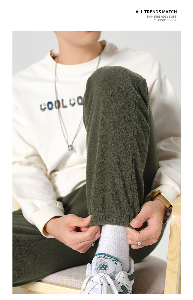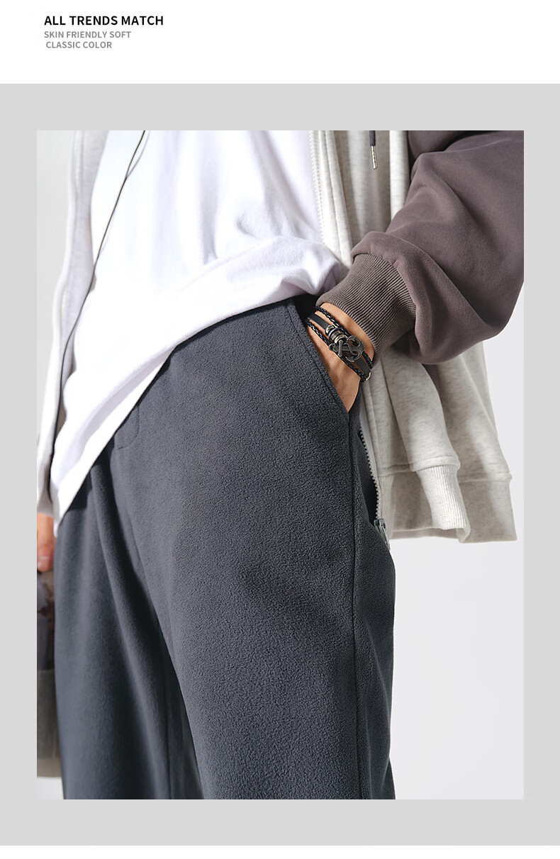 Warrior pants men's loose-fitting double-sided polar fleece men's casual pants trendy brand sports ins trend autumn and winter trousers double-sided fleece 22PK30 medium gray XL