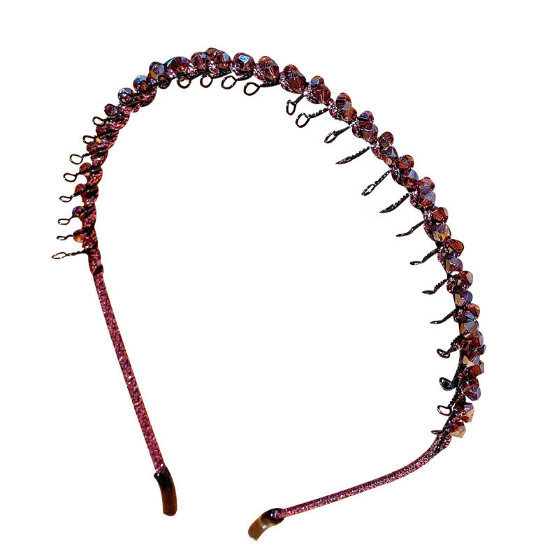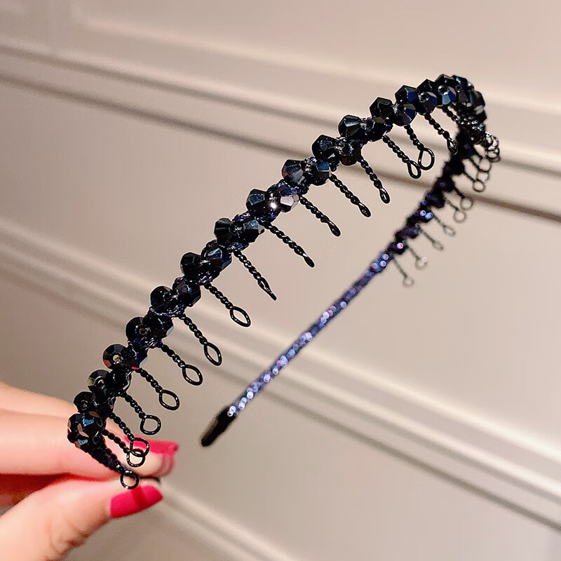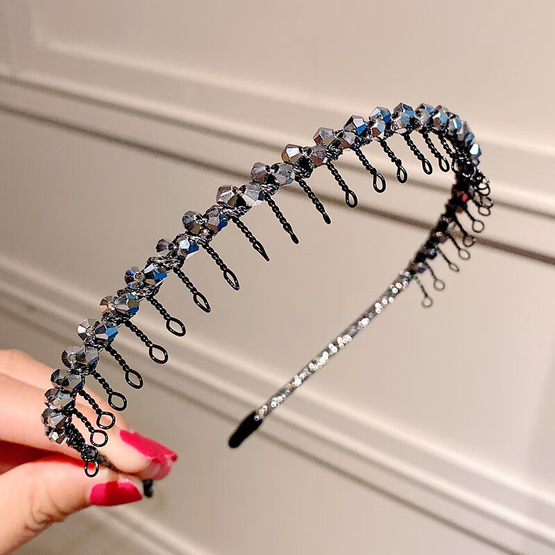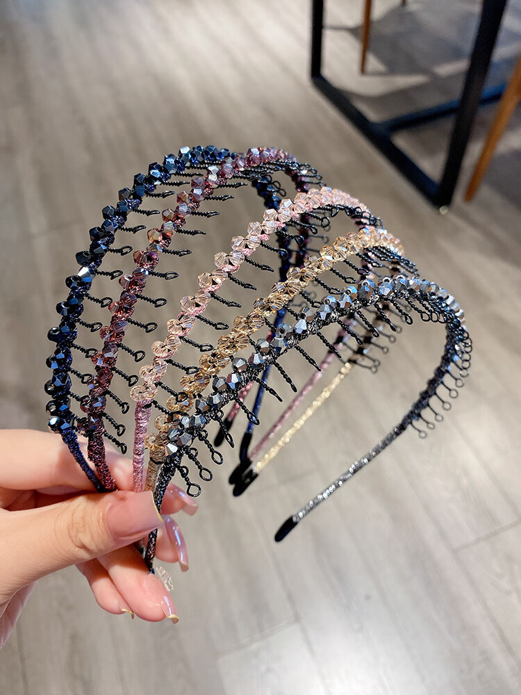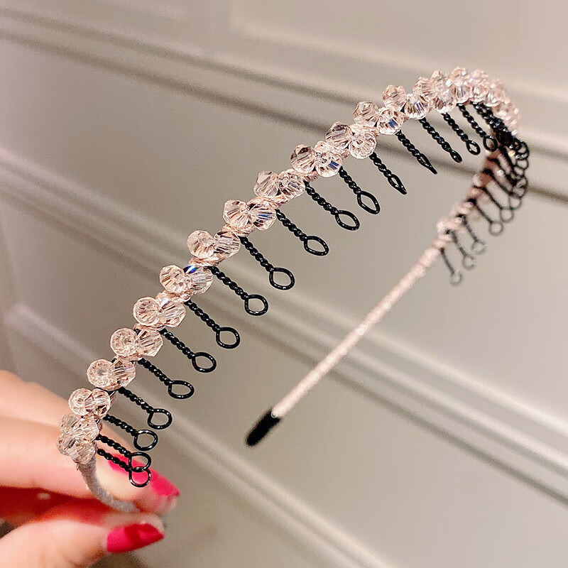 LEMIAO LEMIAO Light luxury rhinestone toothed anti-slip hairband bangs broken hair artifact versatile headband hairpin princess style champagne color A05-302