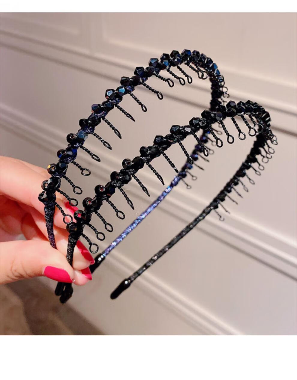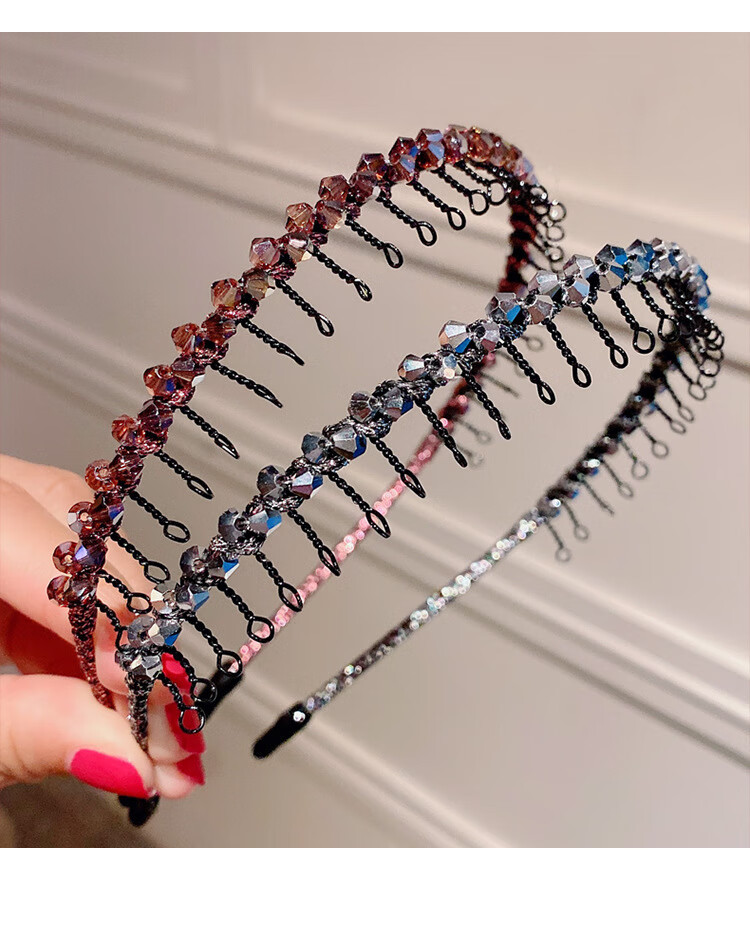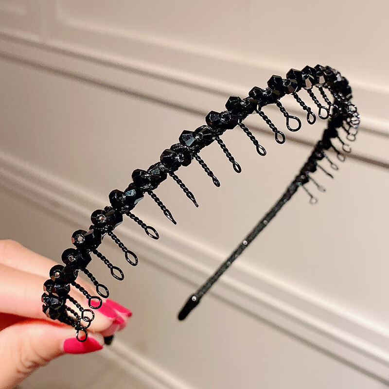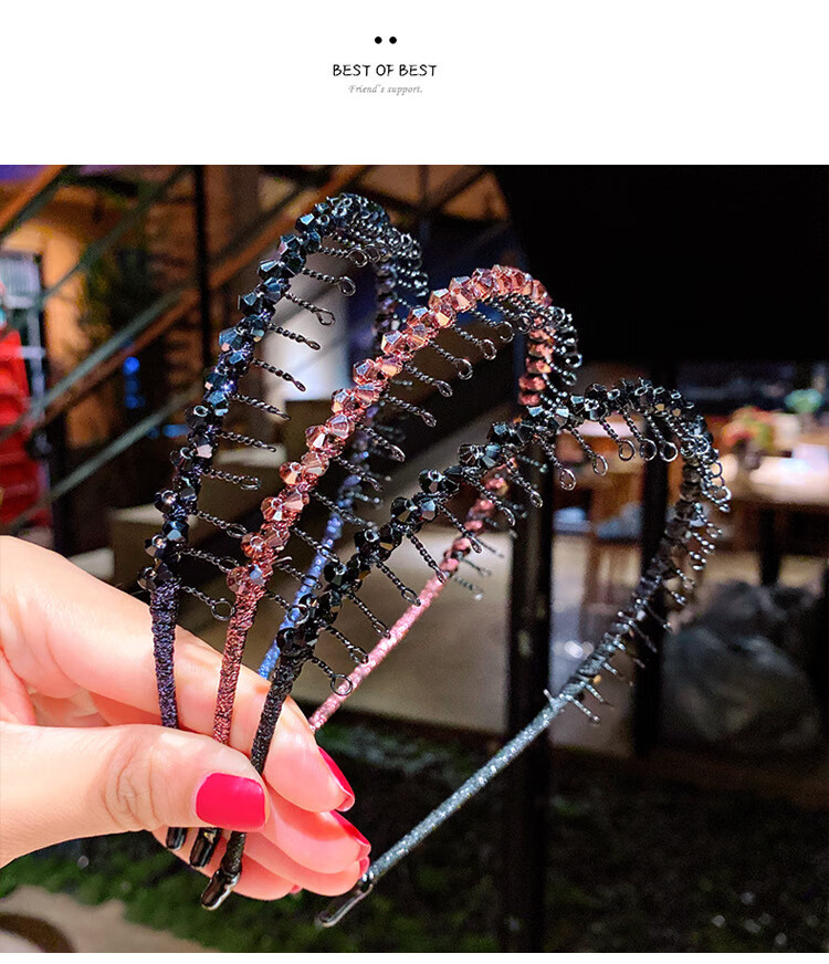 LEMIAO LEMIAO Light luxury rhinestone toothed anti-slip hairband bangs broken hair artifact versatile headband hairpin princess style champagne color A05-302