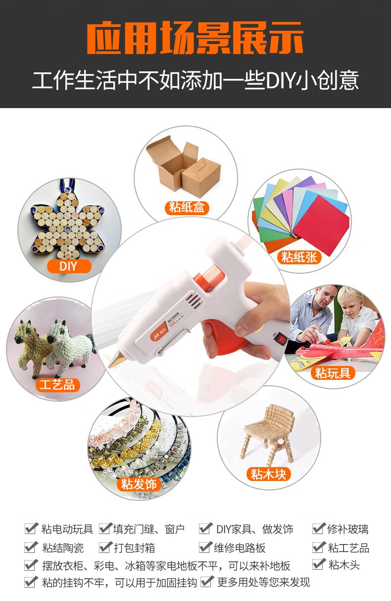 Meike (MYTEC) hot melt glue gun, household handmade children's DIY glue stick, industrial grade copper mouth, high viscosity, small hot melt glue gun, premium model (100w) glue gun
