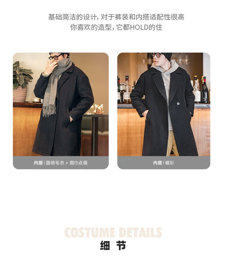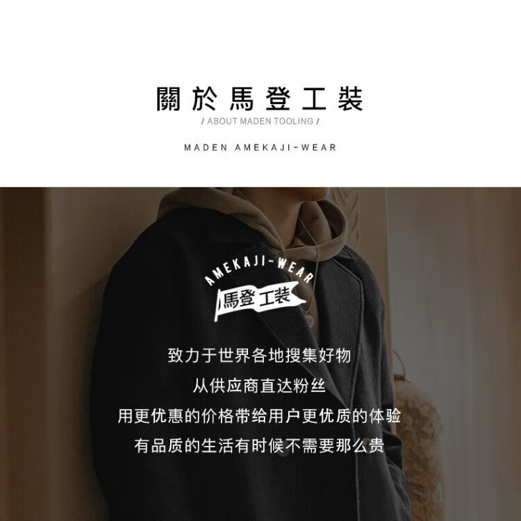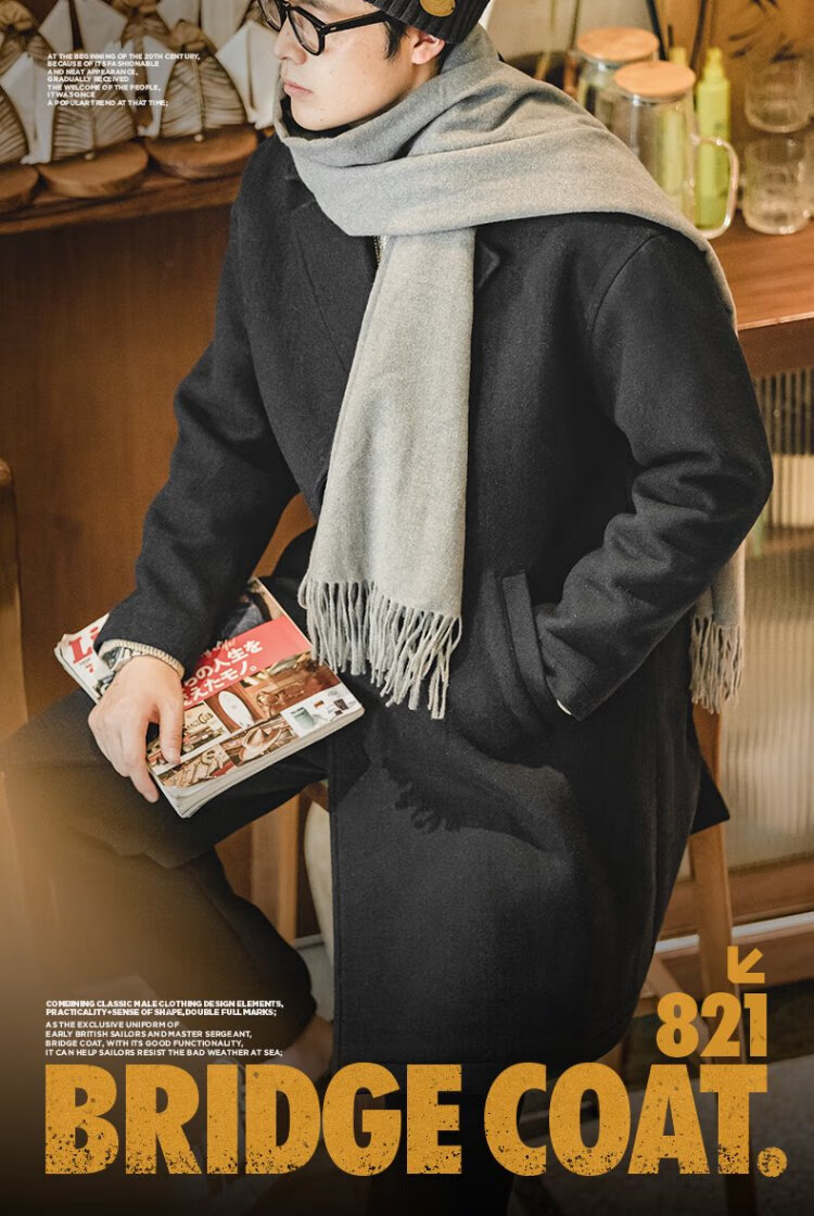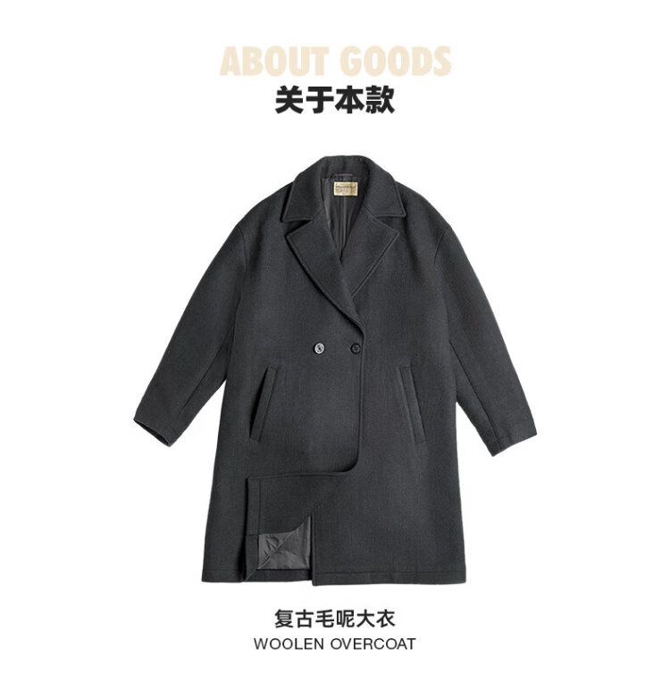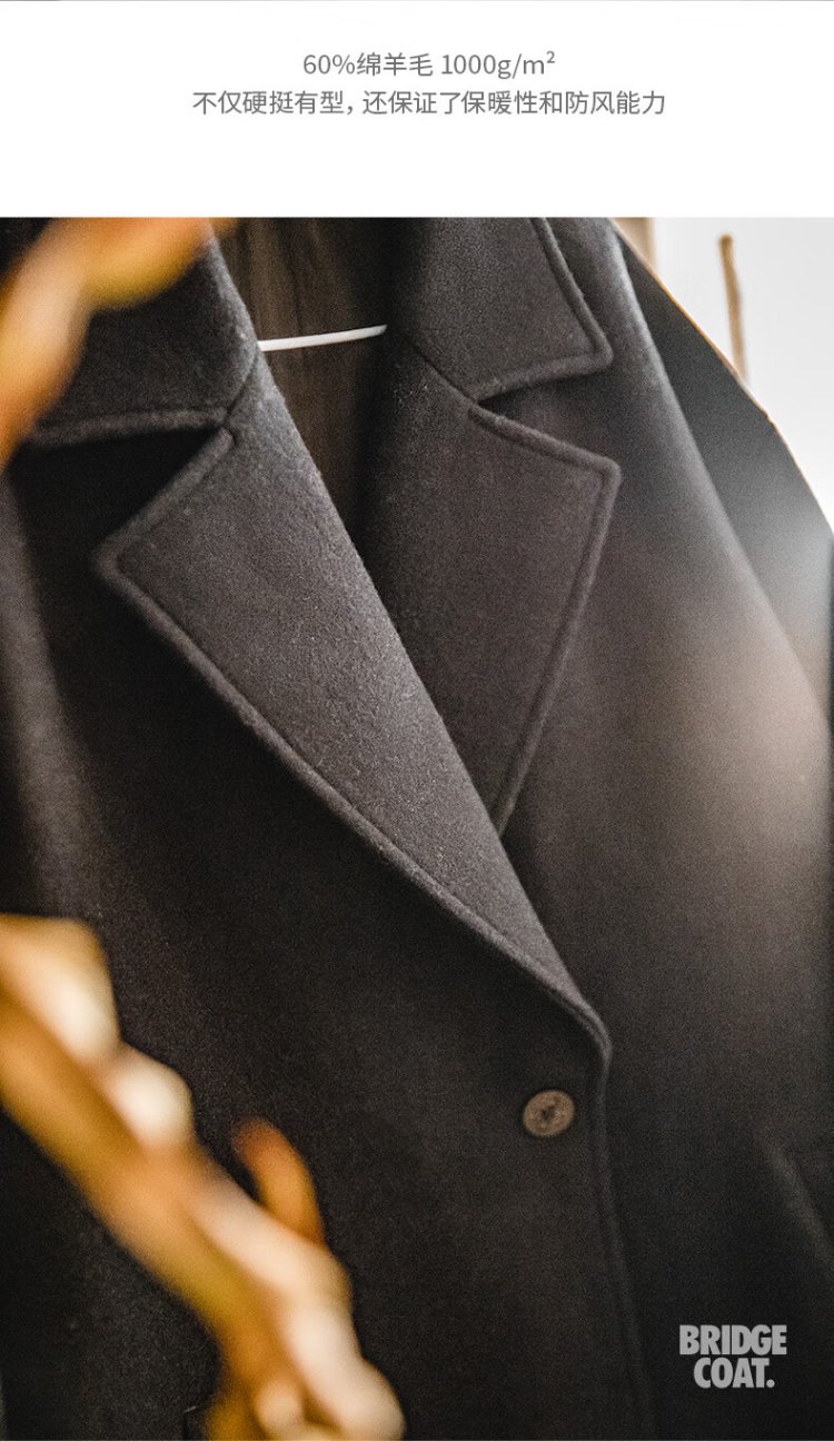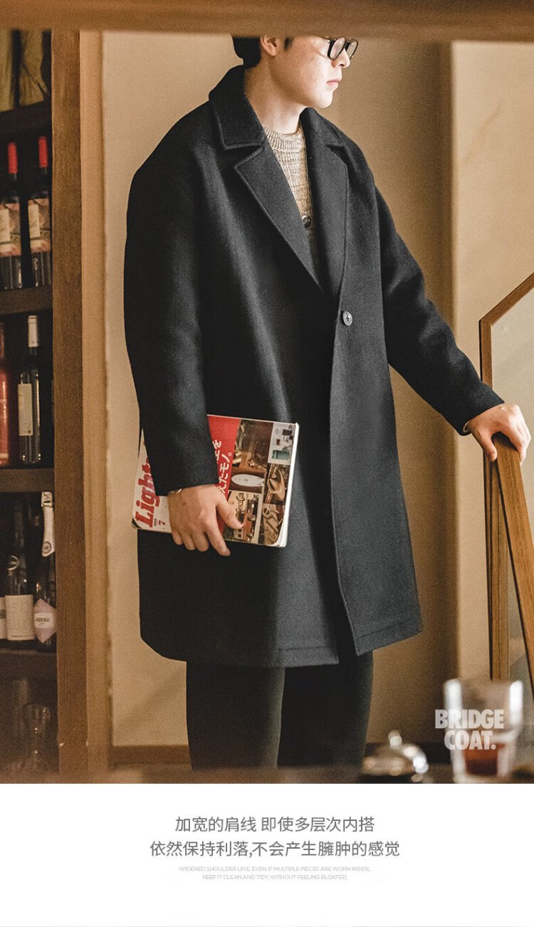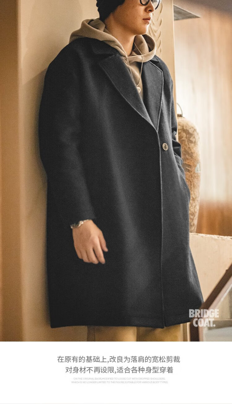 Madden Workwear American Retro Heavy Wool Woolen Coat Mid-Length Thickened Windproof Warm Casual Jacket Men's Winter Charcoal Black L (175)