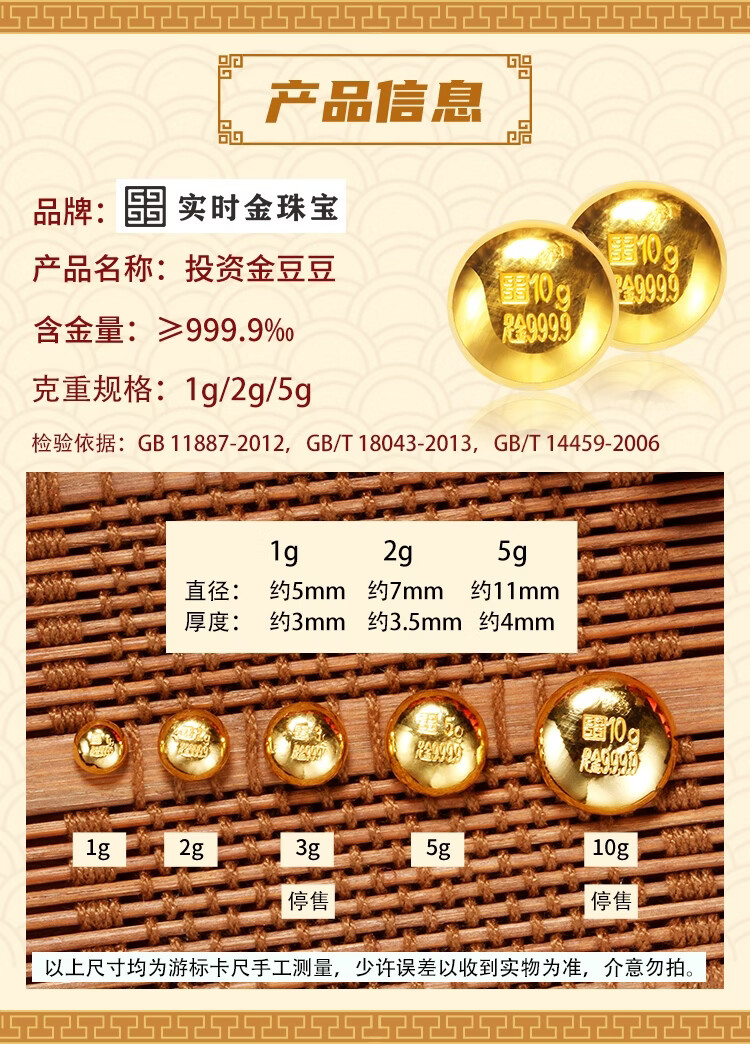 Real-time Gold Pure Gold 9999 Pure Gold Dou Shui Bei Gold Small Golden Dou Zi as a holiday gift for girlfriend investment collection Gold Dou Dou*1 piece (Pure Gold 999.9) 1g/piece
