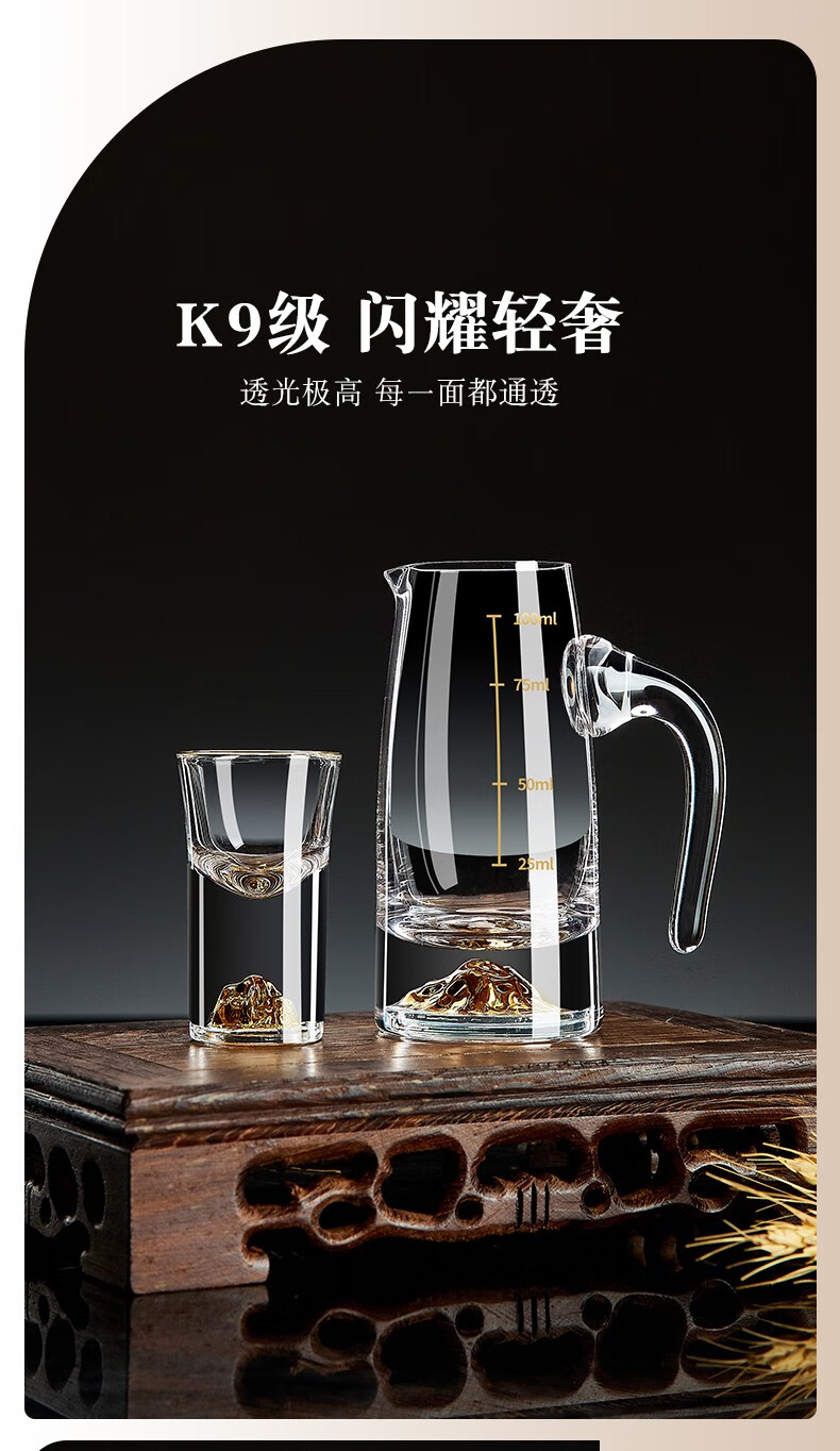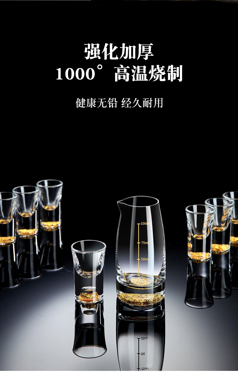 Green Apple (QINGPINGGUO) 12-piece white wine glass set home glass wine gold foil Jinshan small one-cup wine cup Chinese-style spirit cup one-cup 10ML 12-piece party pack