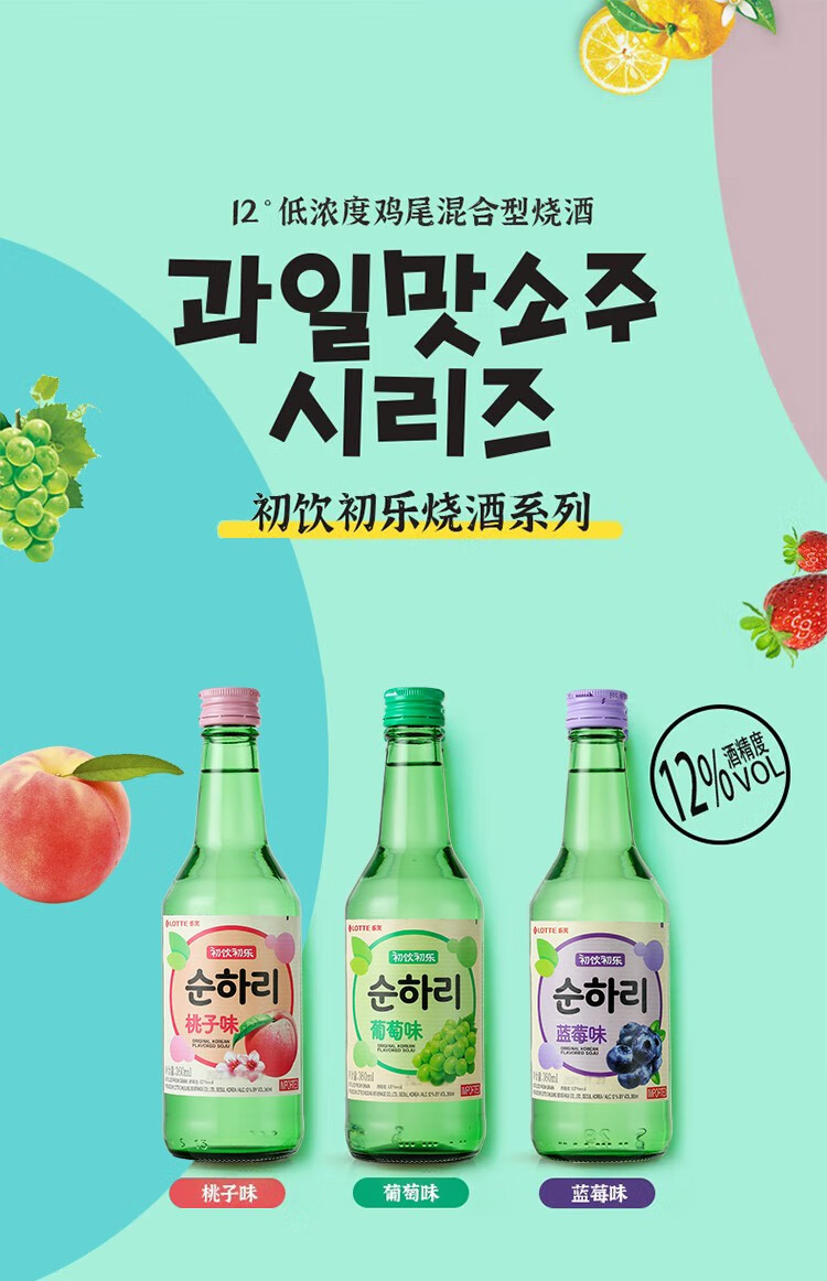 Lotte Chuyin Chule Grape Peach Blueberry Strawberry Grapefruit Apple Flavor Multiple Selection Soju New and Old Packaging Random Delivery Full Box Snowflake 375ml*20 Bottles