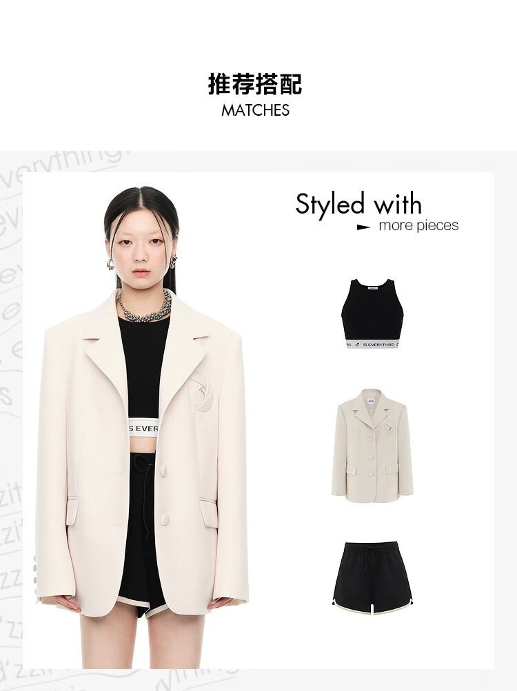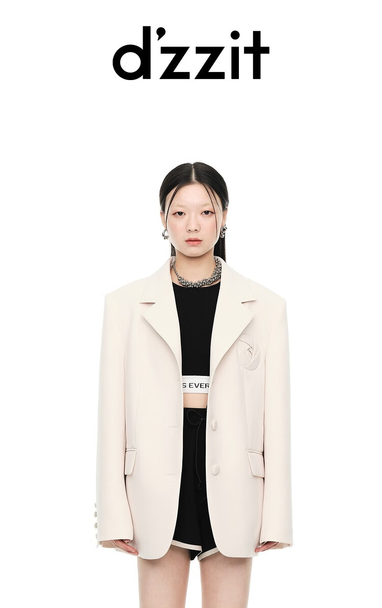 DZZIT地素  春休闲复古垫肩梭织类西装外套女3E1F5051B 粉红色 S