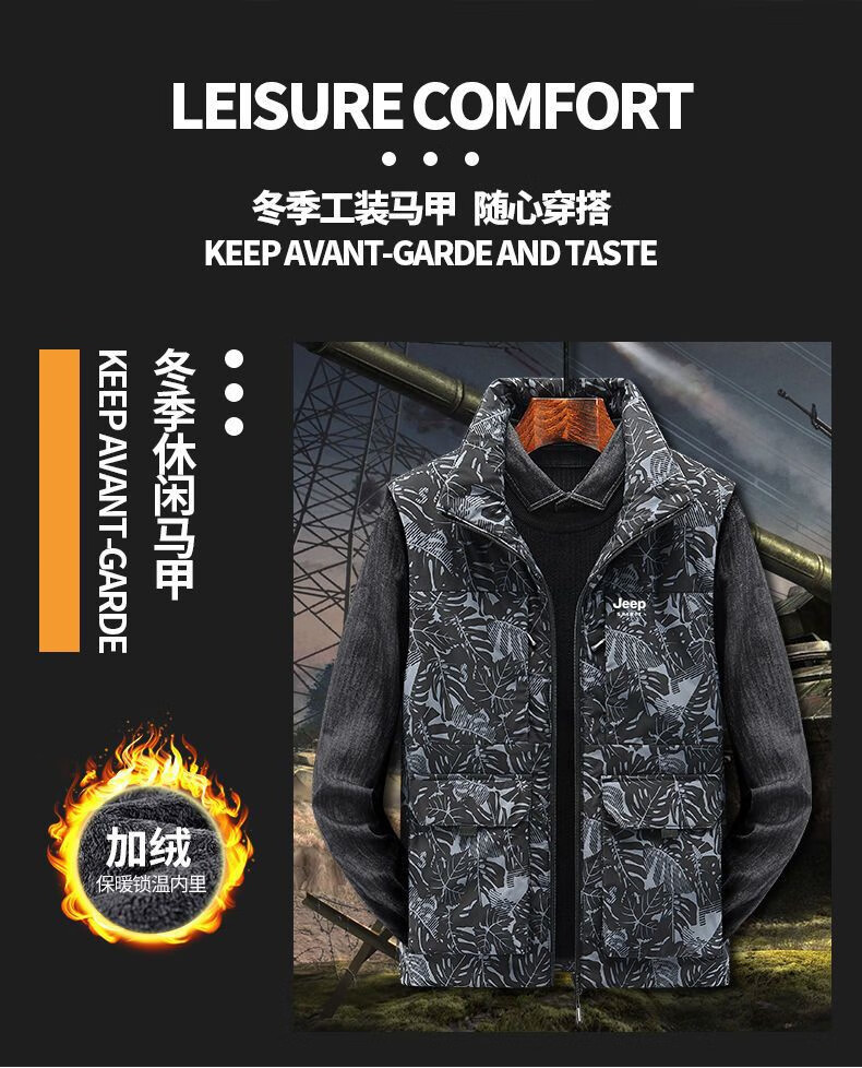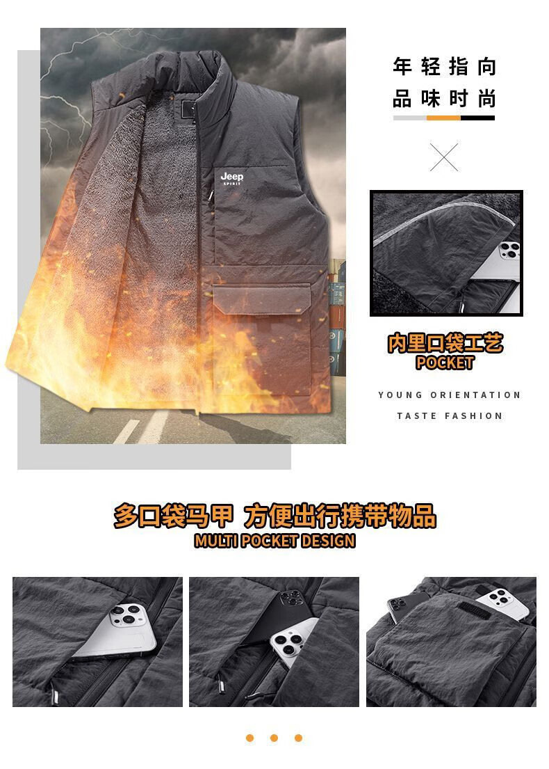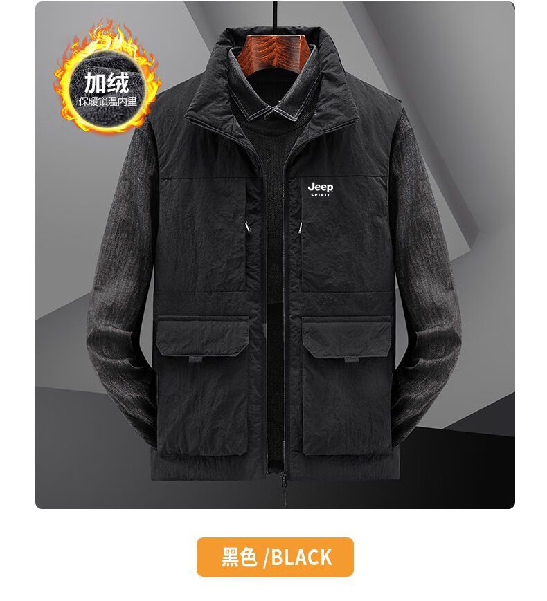 JEEP SPIRIT Outdoor Jeep Vest Men's Autumn and Winter Multi-Pocket Vest Loose Large Size Men's Fishing Vest Men's Jacket Mountaineering Wear Khaki 2XL